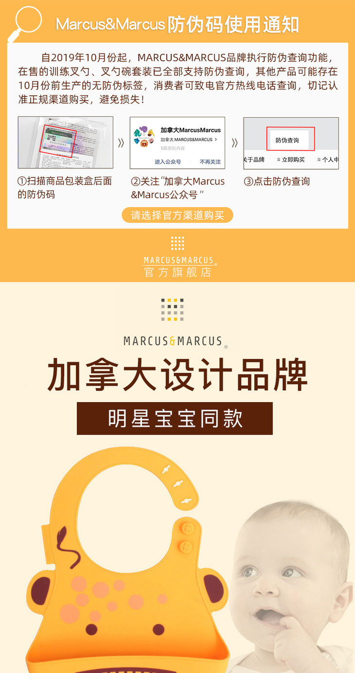 marcus硅胶围兜婴儿吃饭宝宝辅食围嘴防水超软