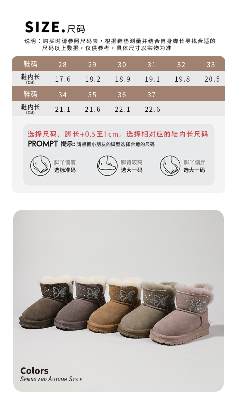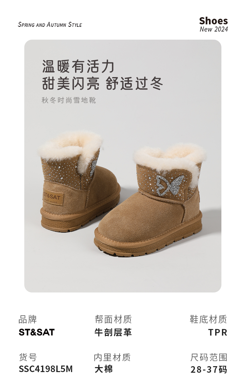 【童鞋】星期六蝴蝶闪钻加绒保暖女童雪地靴SSC4198L5M