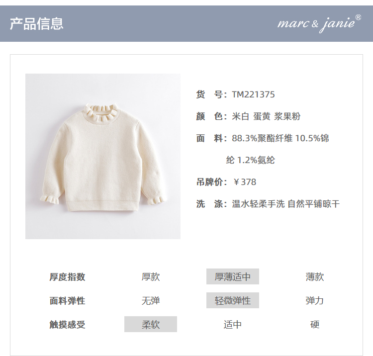 marcjanie马克珍妮秋冬新款 女童雪尼尔花边套头毛衣221375