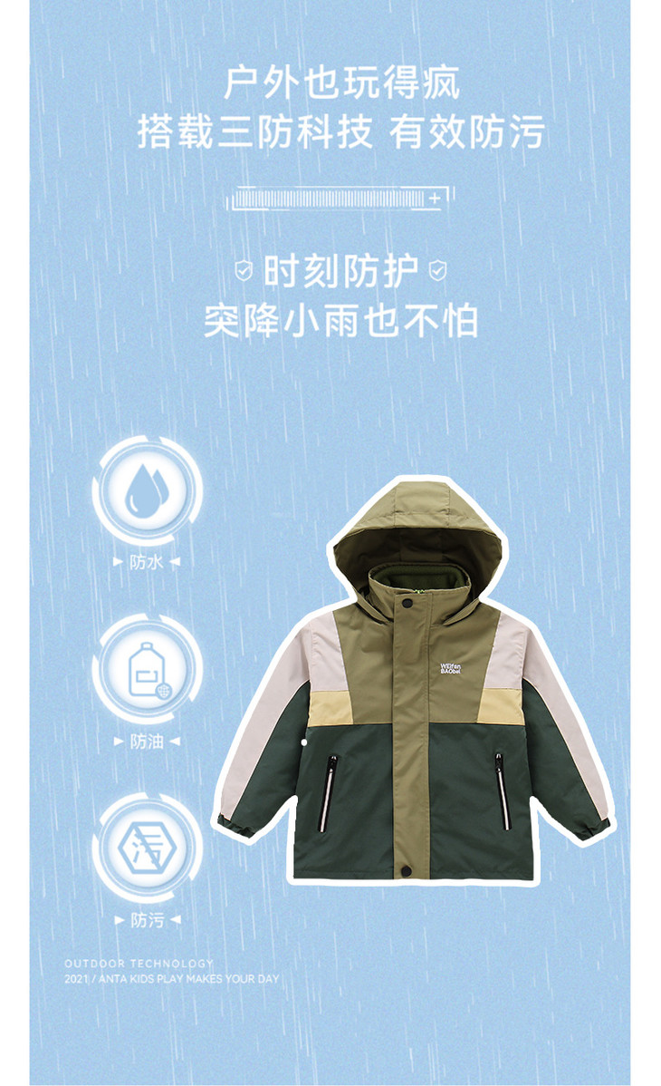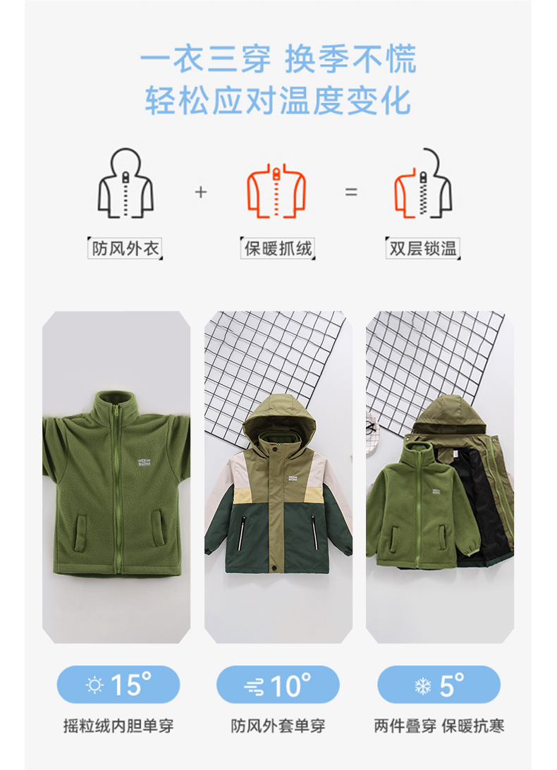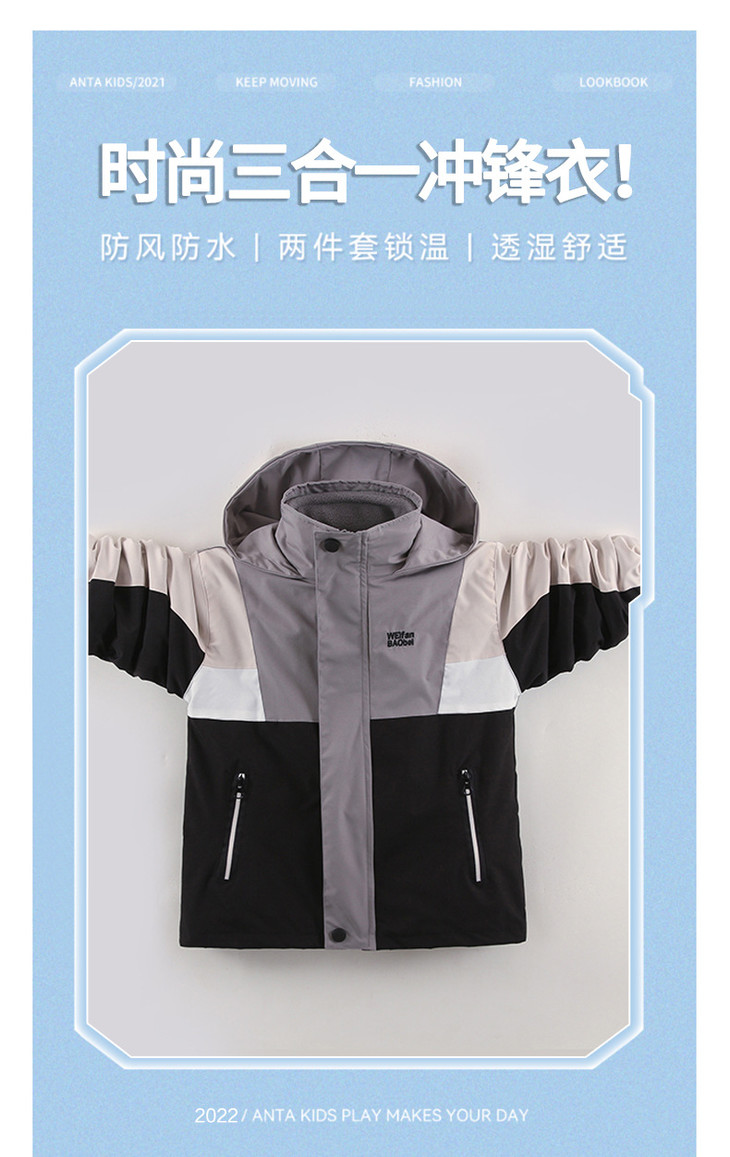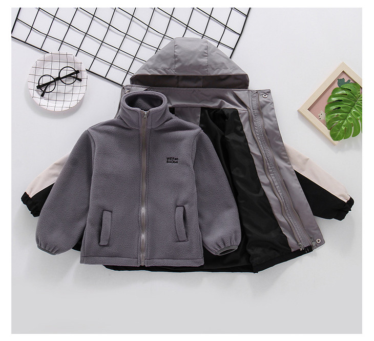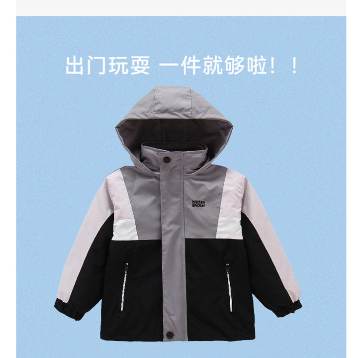 秋冬款男童冲锋衣三合一可拆卸防风加厚保暖中大童休闲连帽外套
