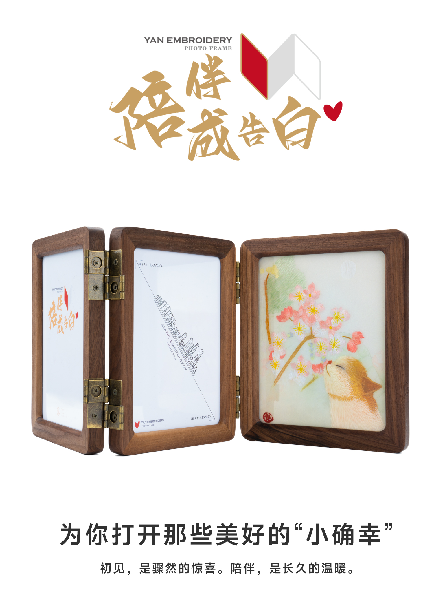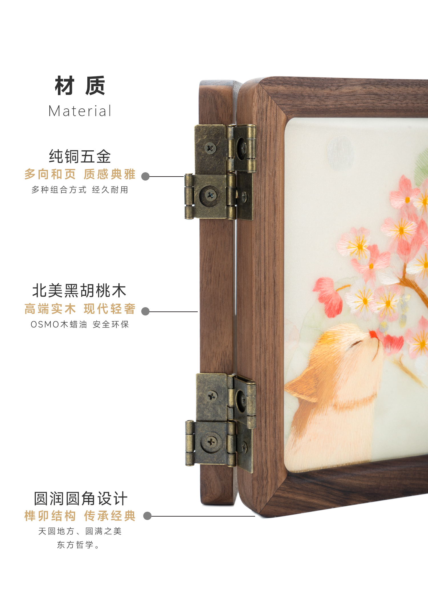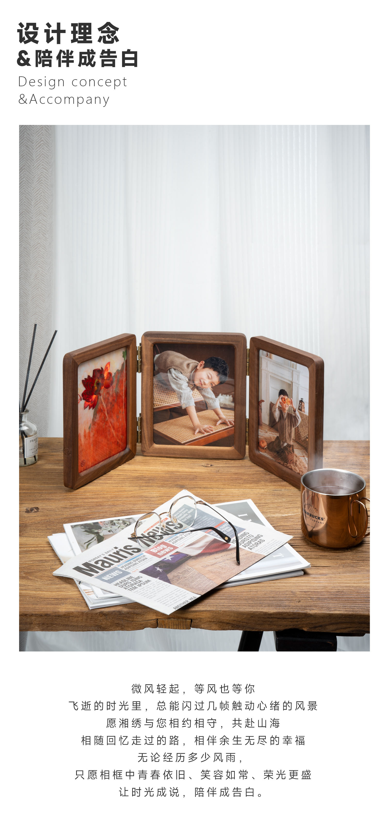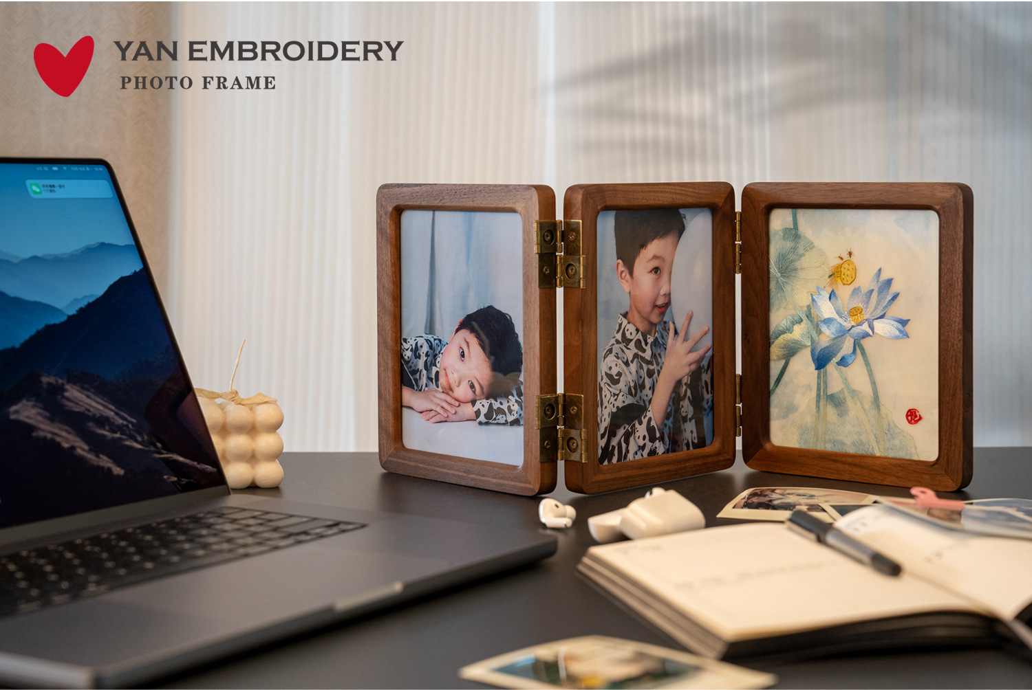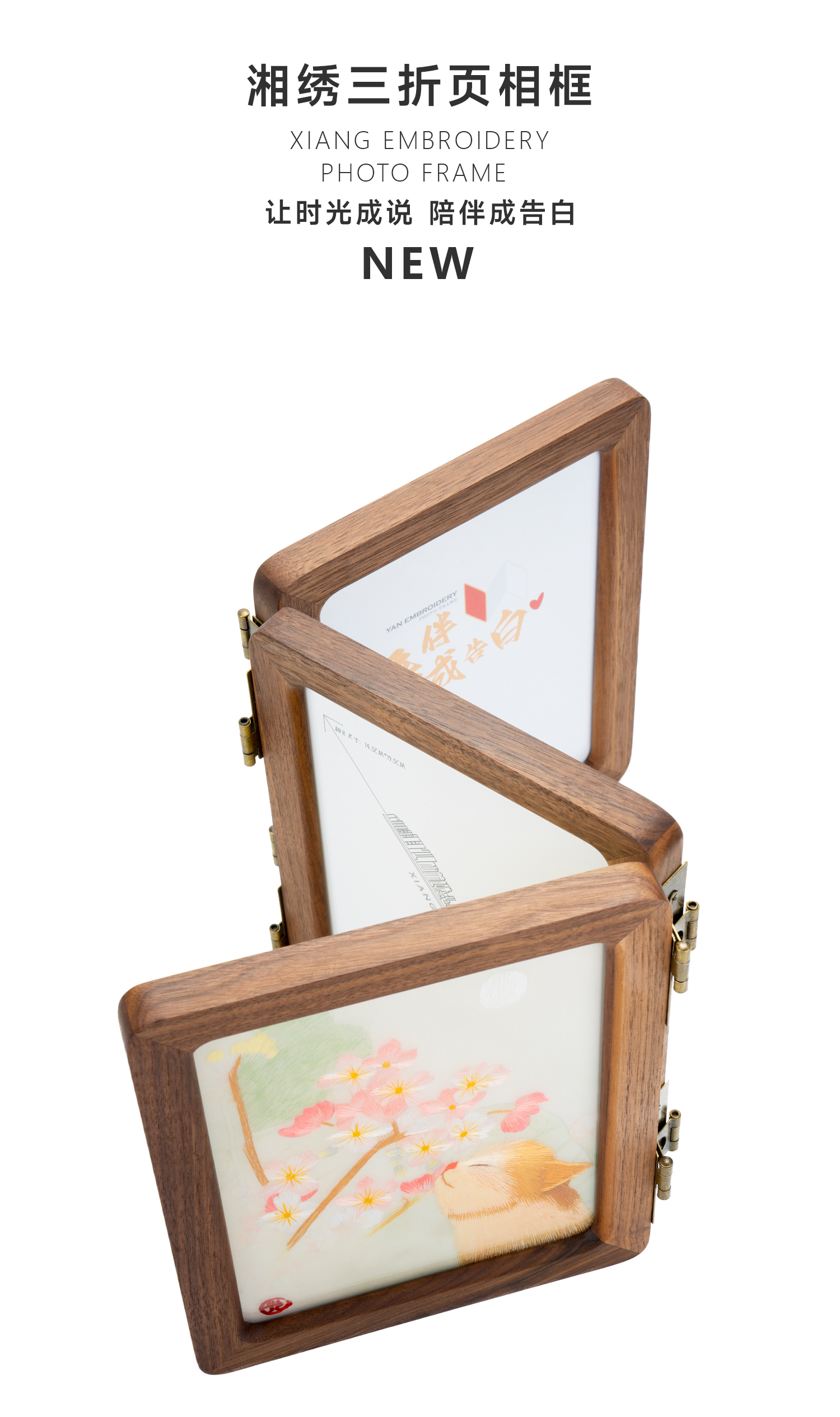艷 湘绣 三折创意组合7寸折叠黑胡桃木相框摆台