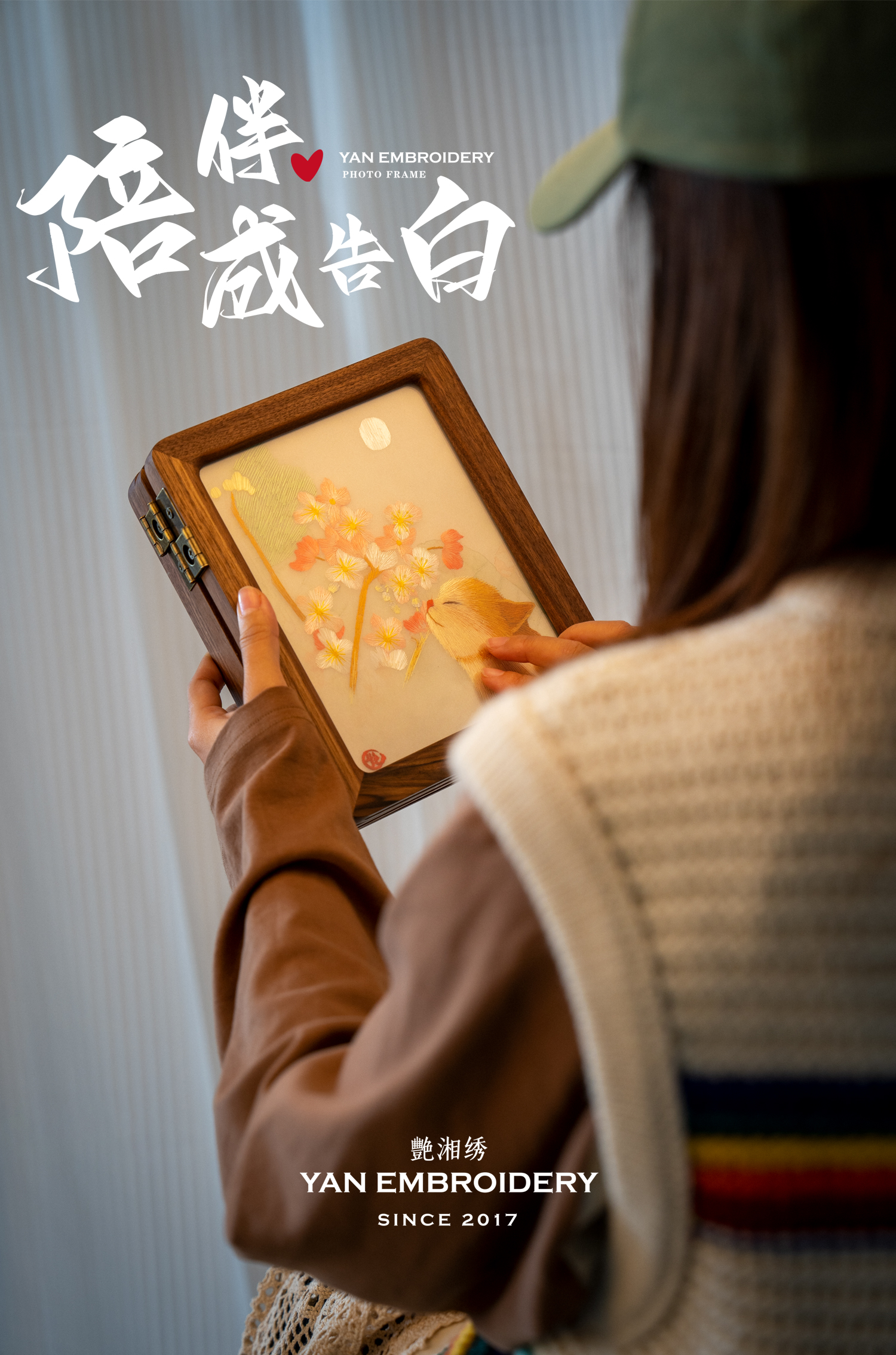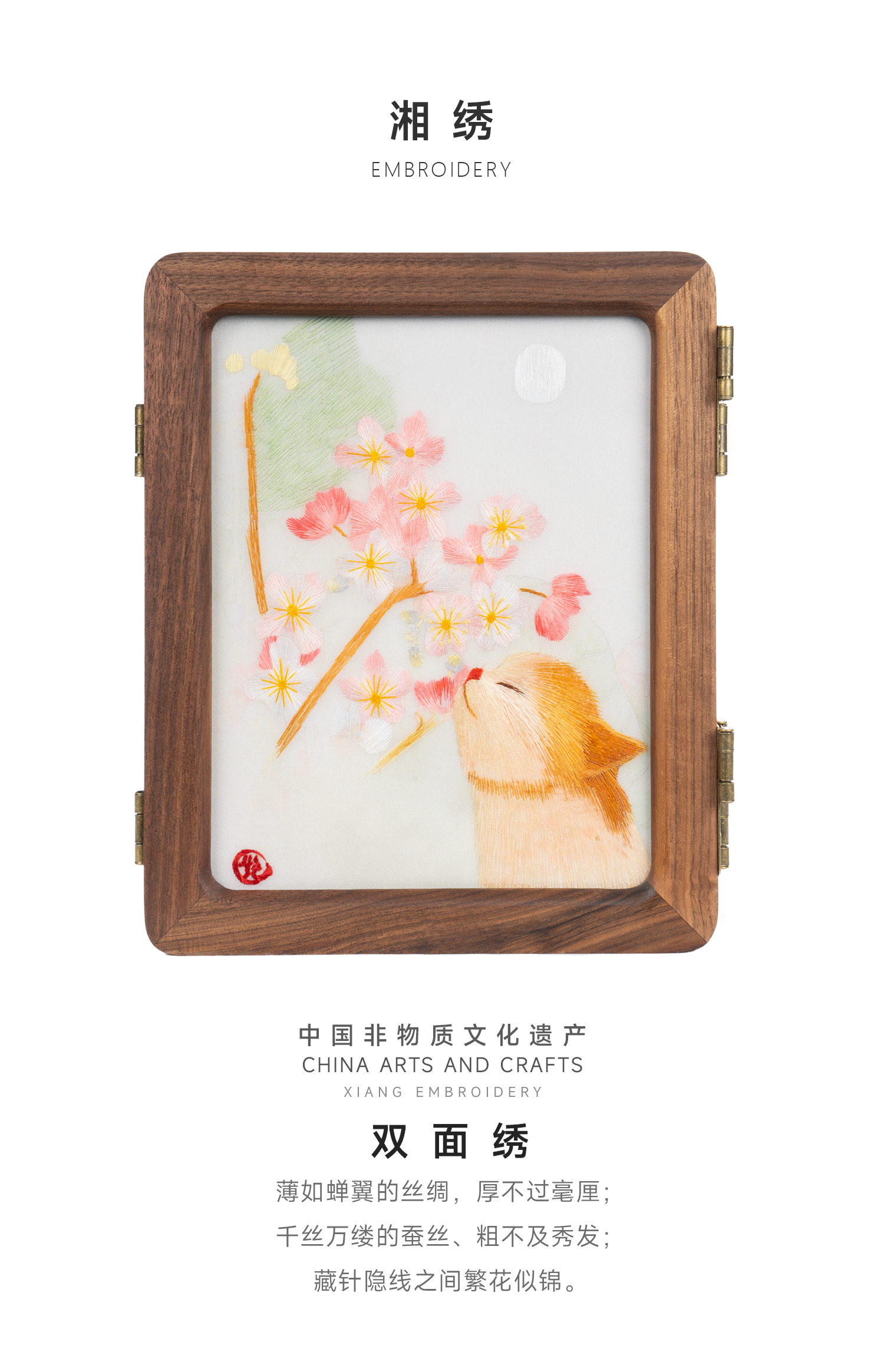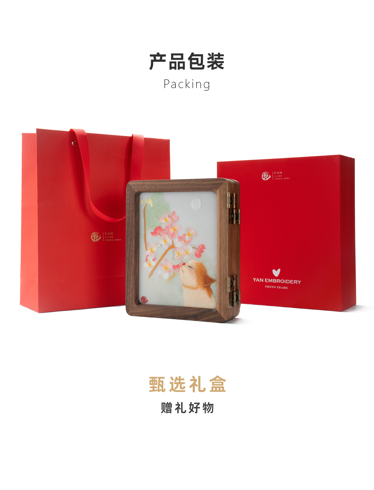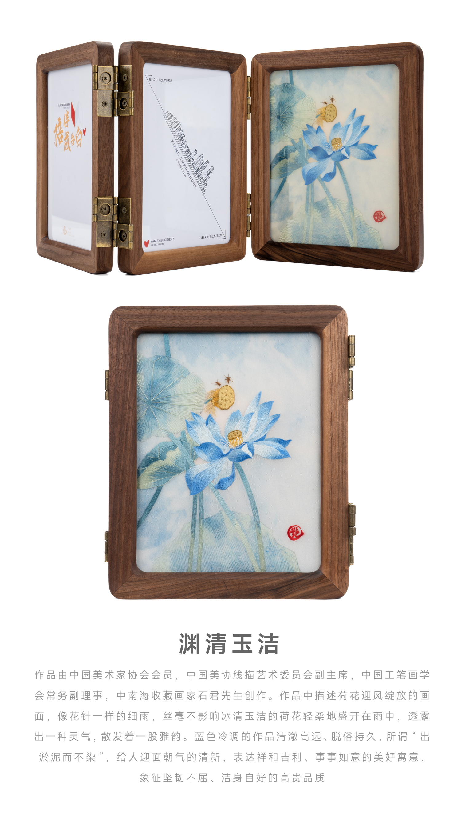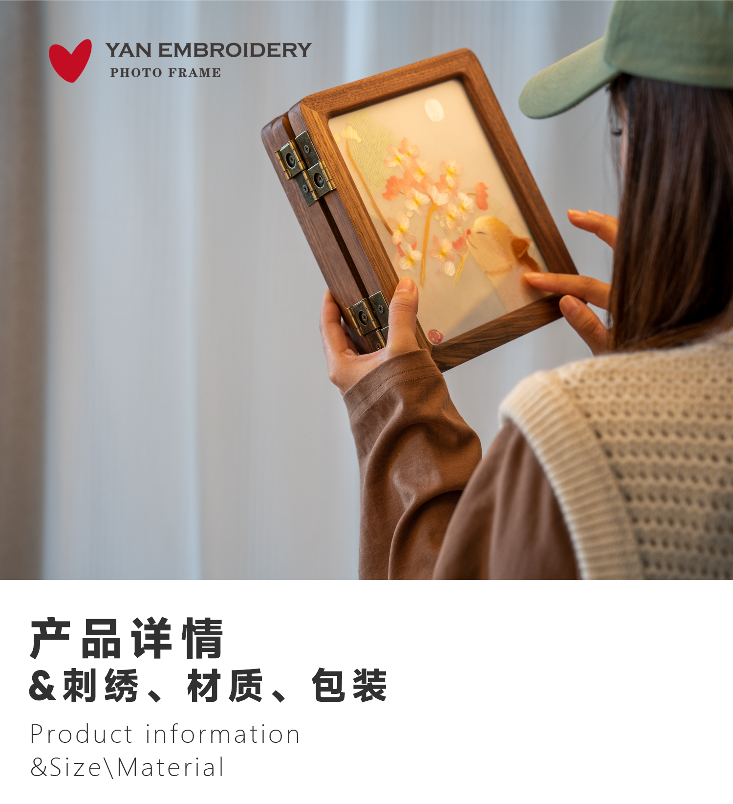 艷 湘绣 三折创意组合7寸折叠黑胡桃木相框摆台