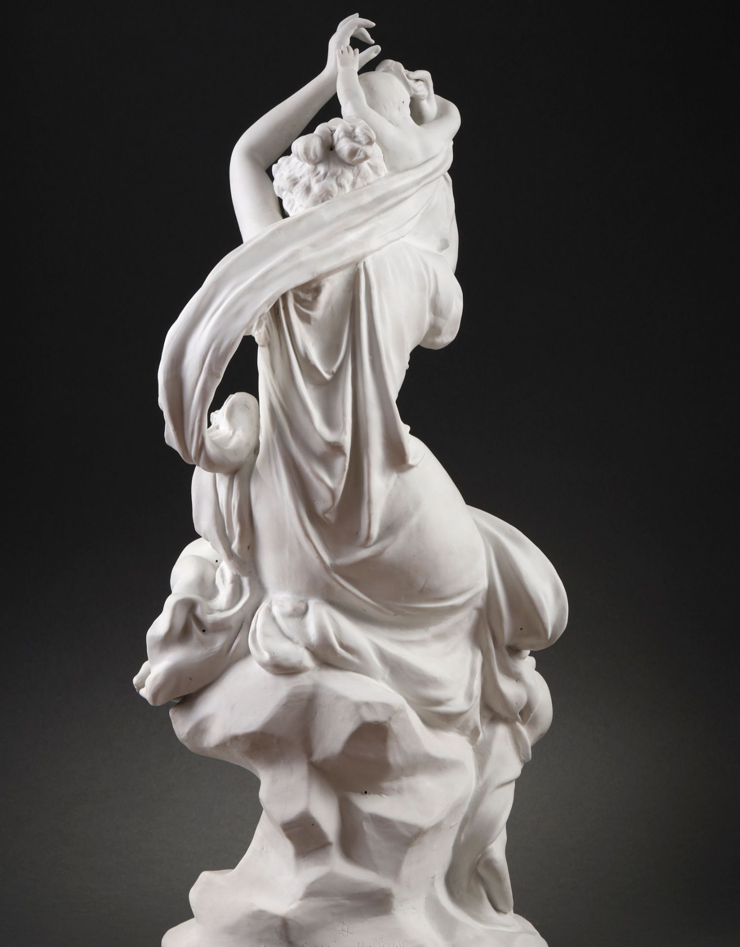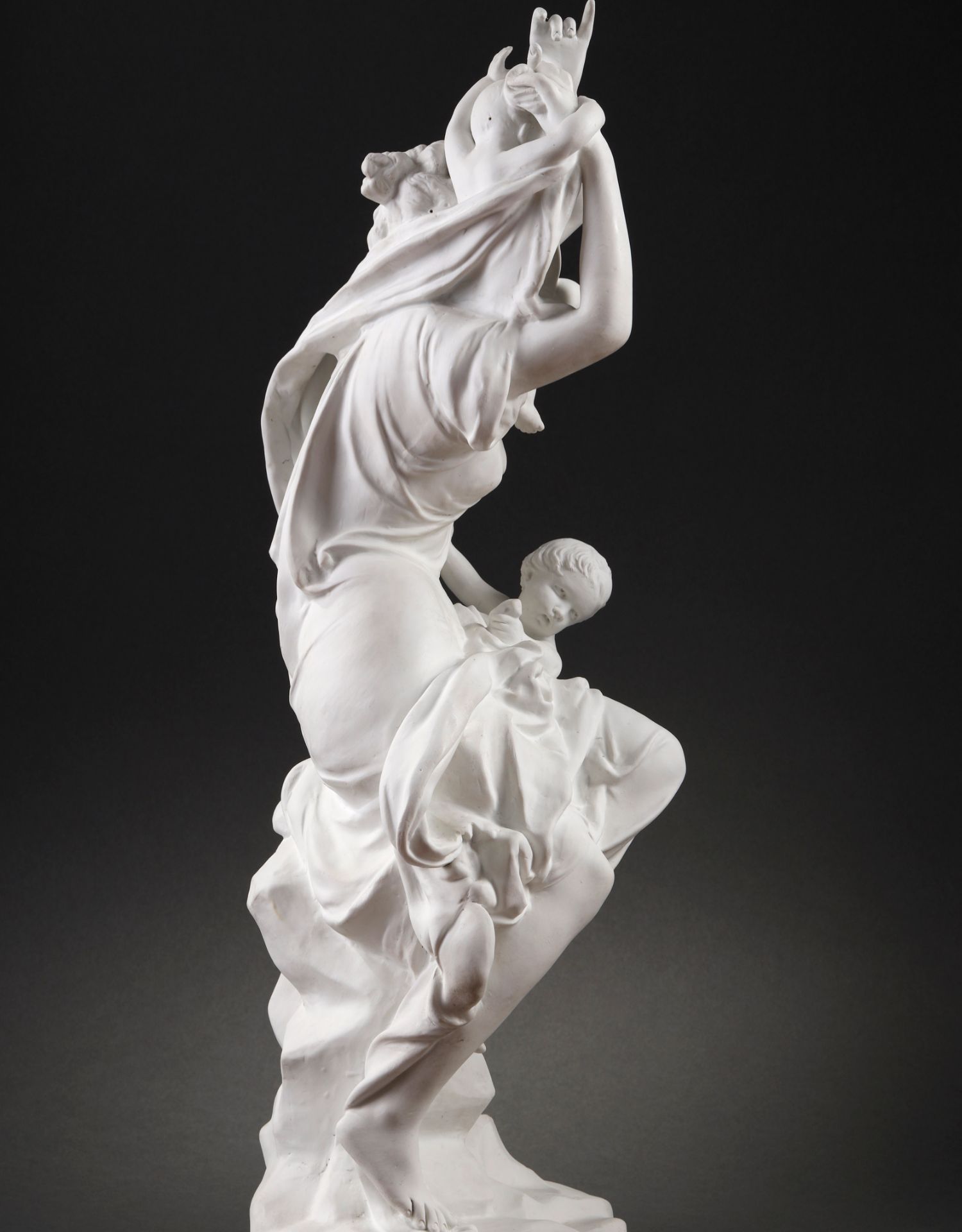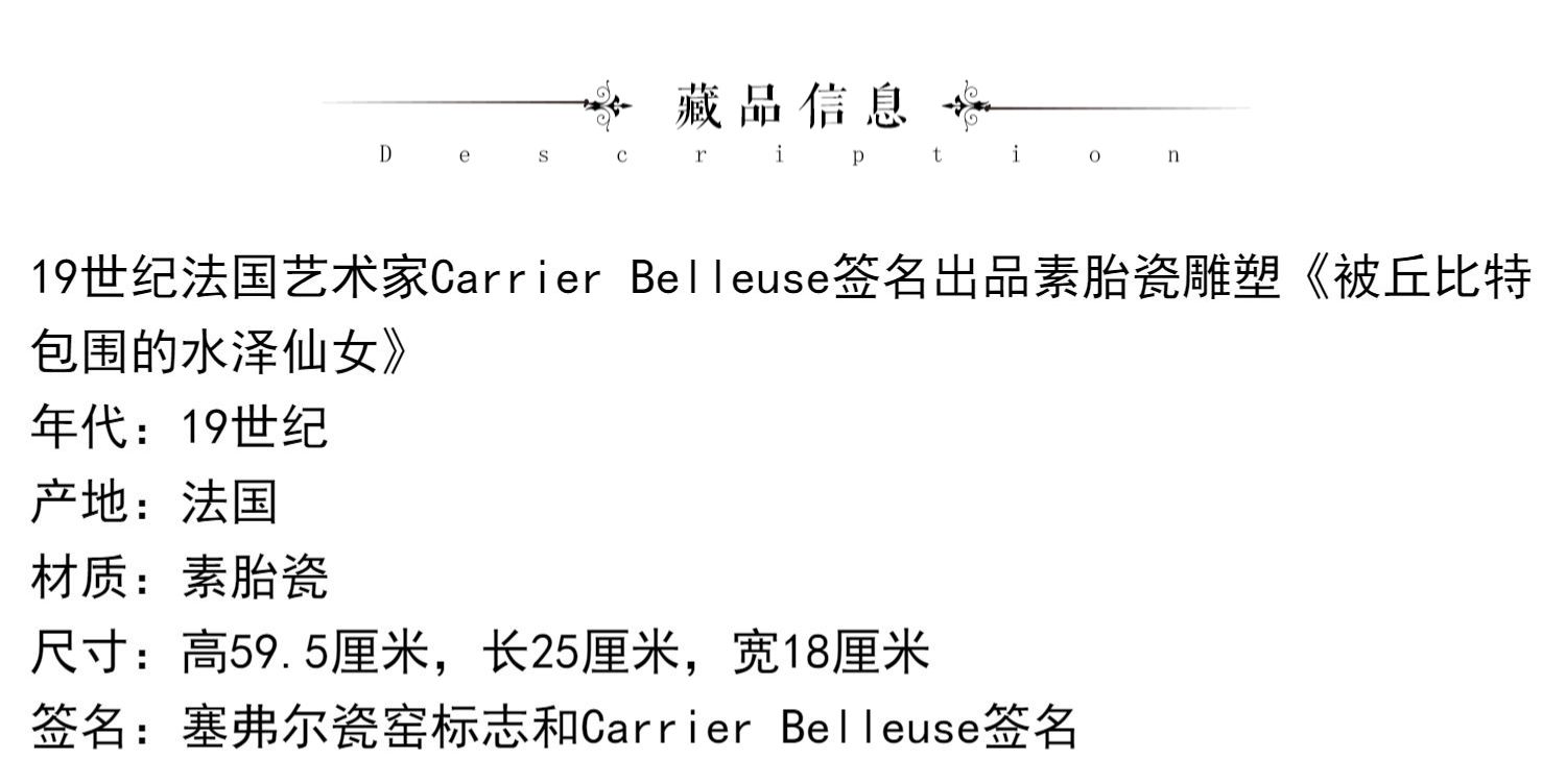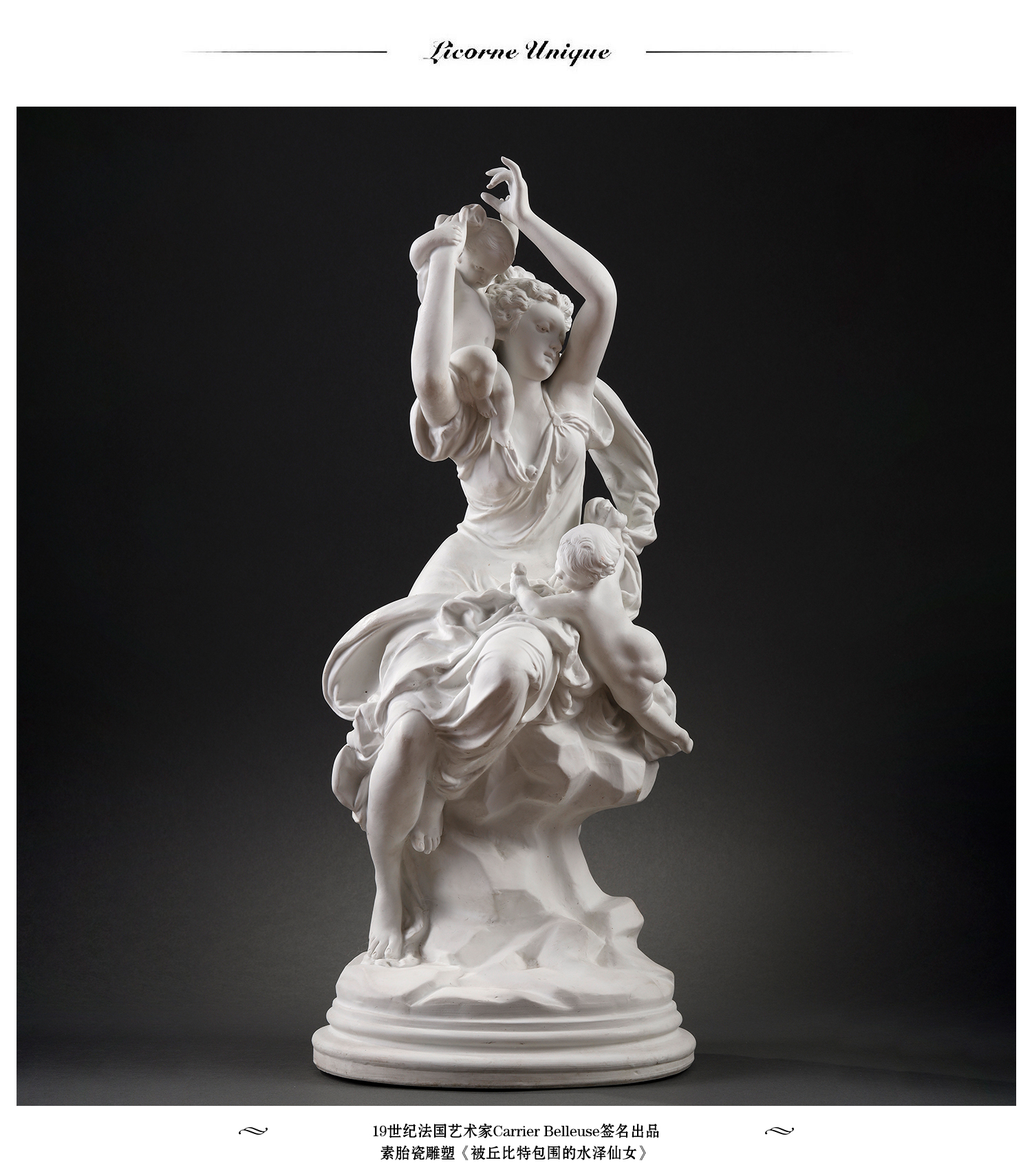 独角鹿西洋古董Carrier Belleuse素胎瓷雕塑被丘比特包围水泽仙女