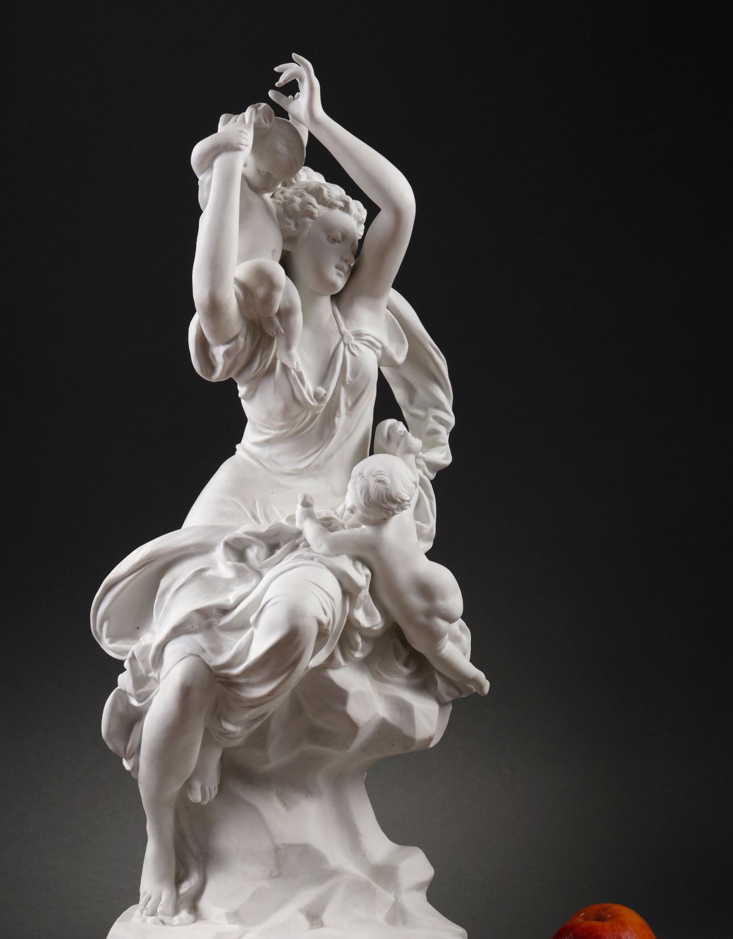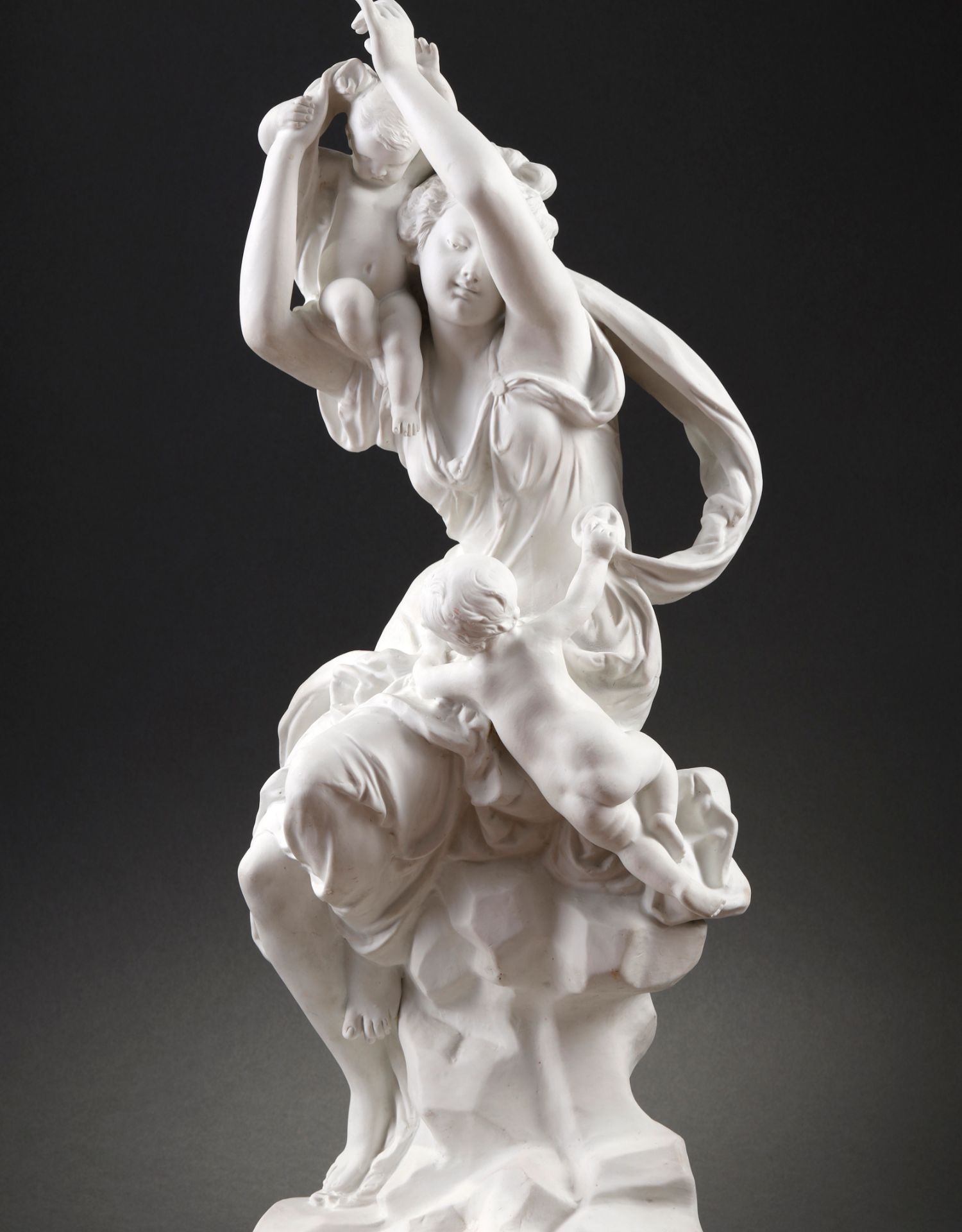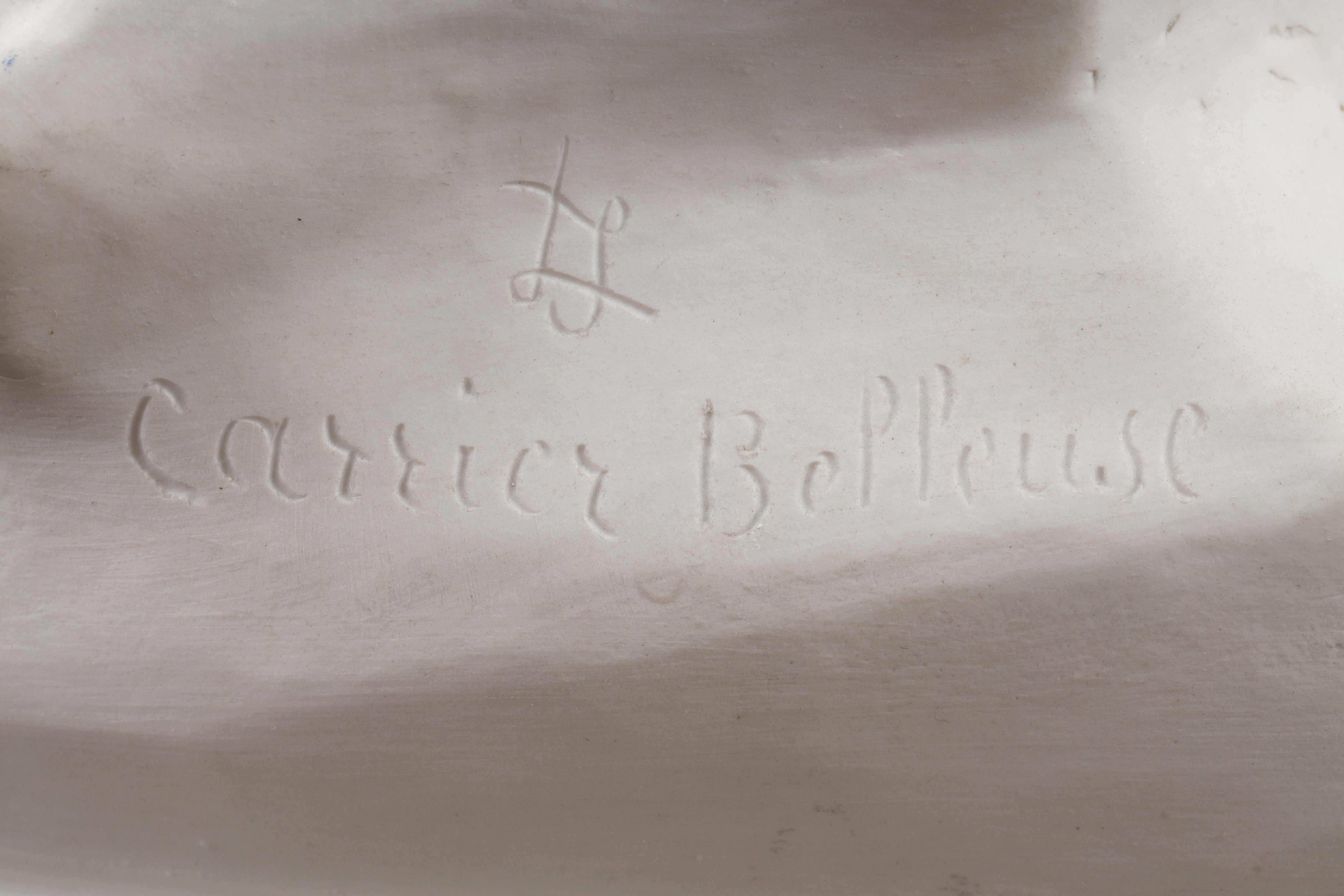 独角鹿西洋古董Carrier Belleuse素胎瓷雕塑被丘比特包围水泽仙女
