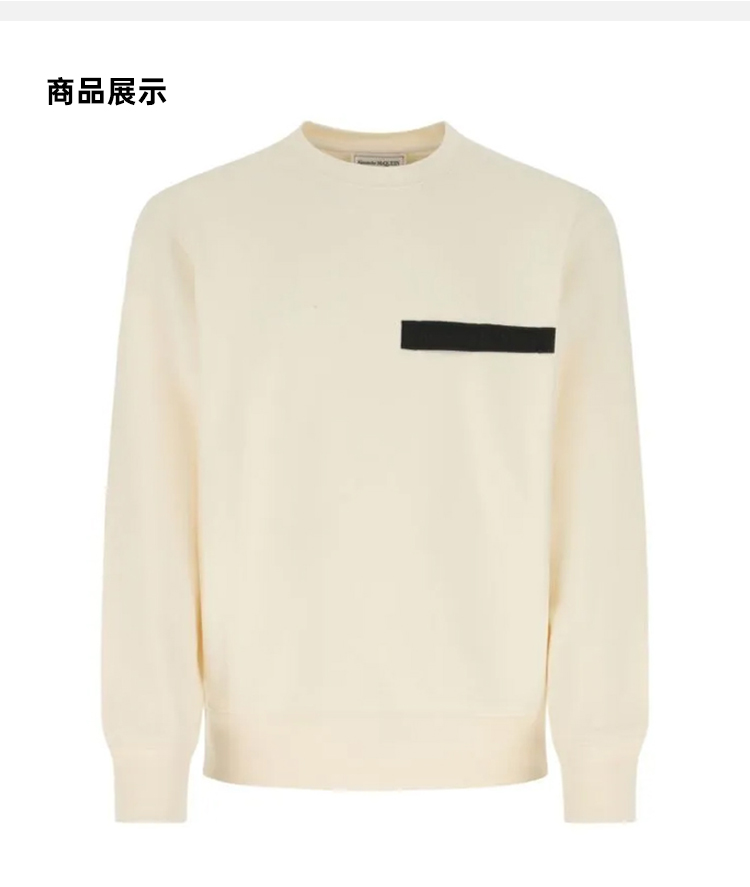 ALEXANDER MCQUEEN 亚历山大.麦昆 男士棉质镶边徽标织带圆领长袖卫衣 浅黄色 642663 QTX75 0916