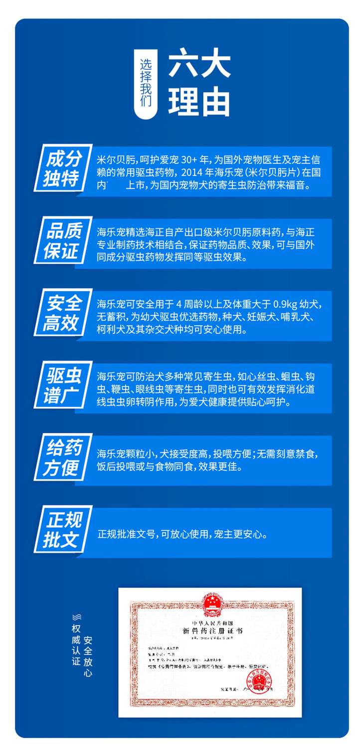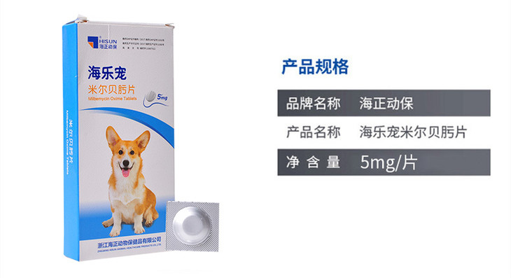 海正海乐宠5mg 米尔贝肟片 6片装 >5-10kg犬 2027年11月15到期,1盒, 预防犬心丝虫,驱除蛔虫、钩虫、鞭虫。