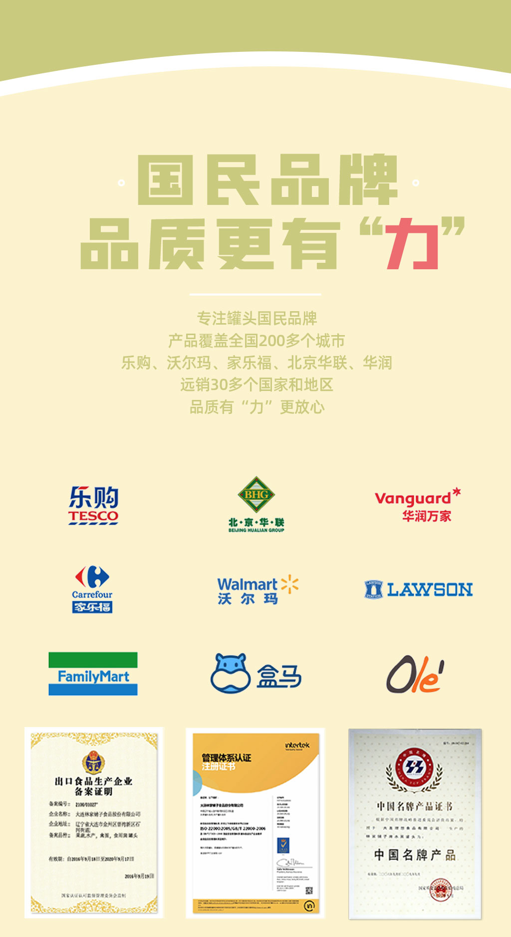 大连林家铺子食品股份有限公司成立于1996年,是中国知名及东北地区最大的罐头生产商、出口商。公司坚持“赋予产品以文化,做世界上最好的罐头”,不断最求高品质打造成年轻人也爱吃的国民零食