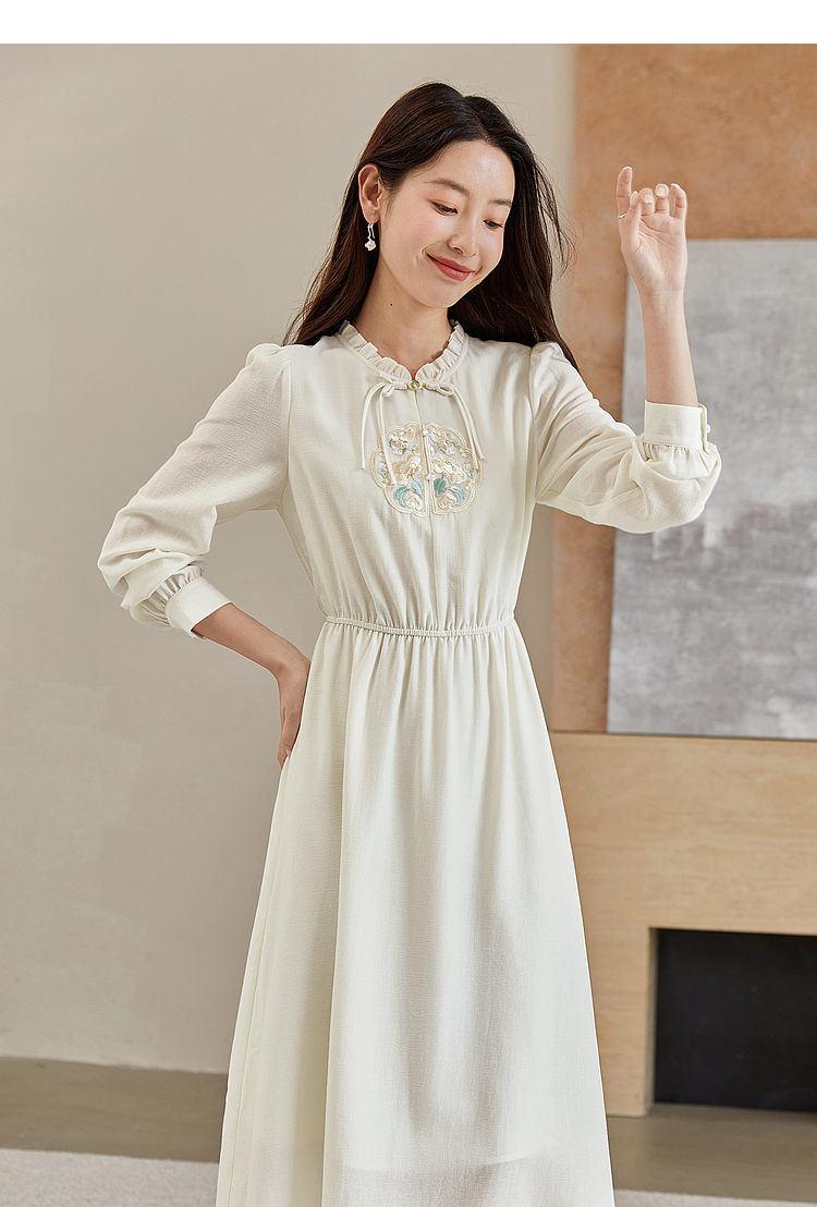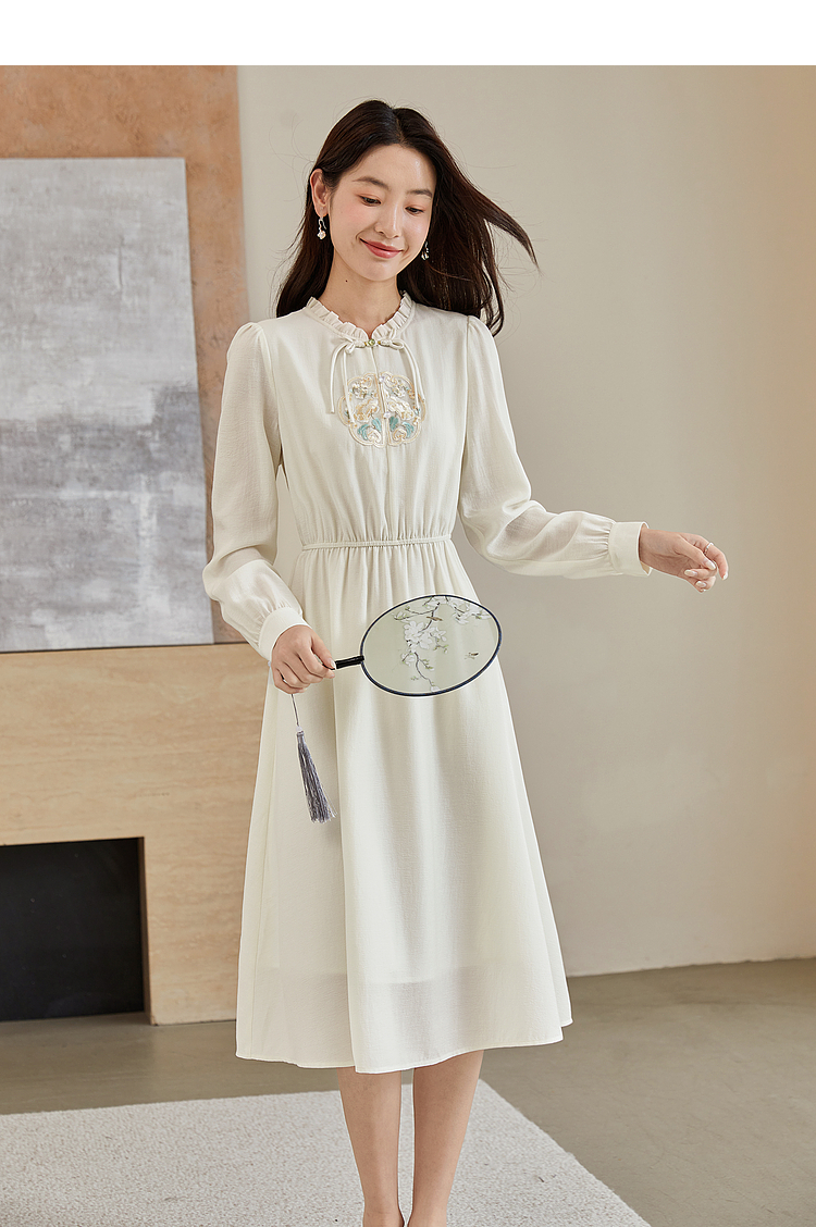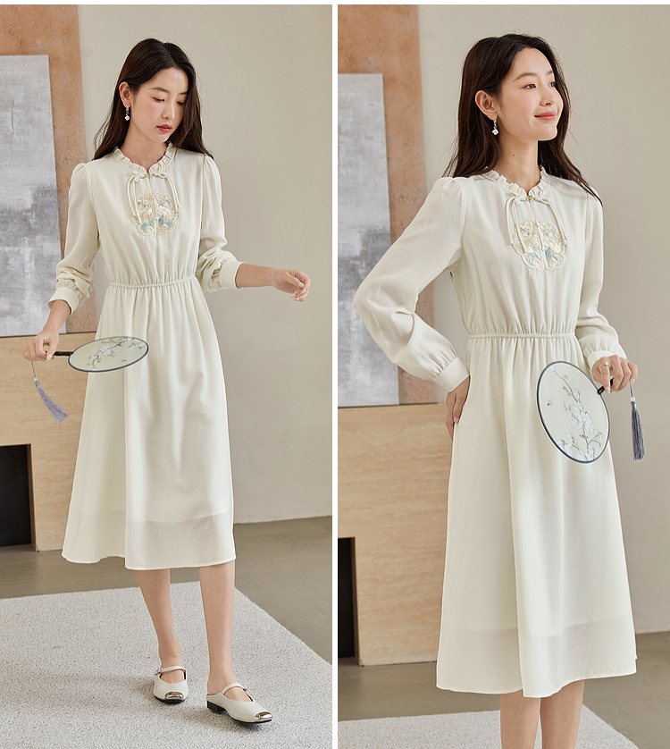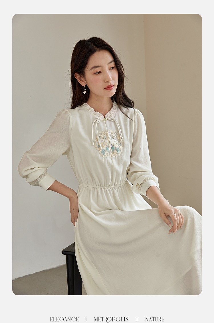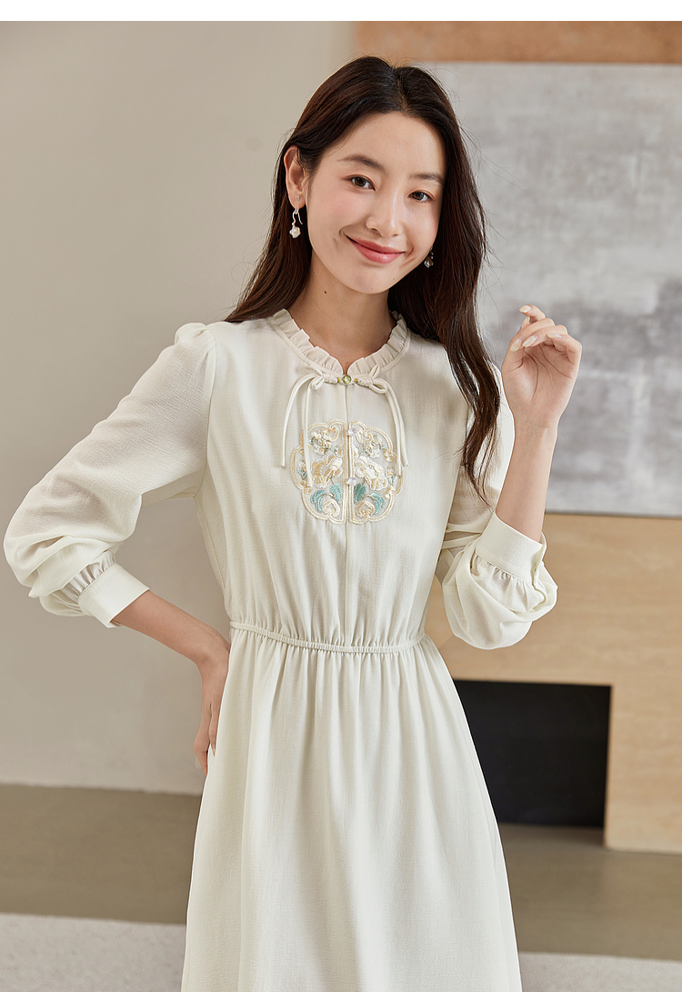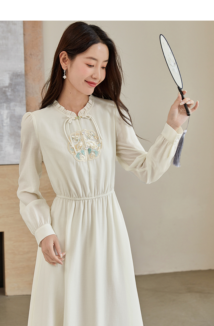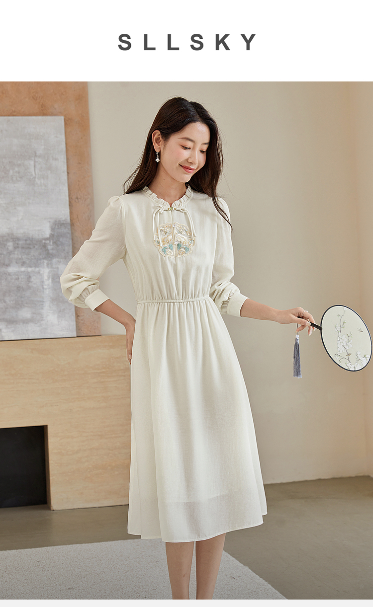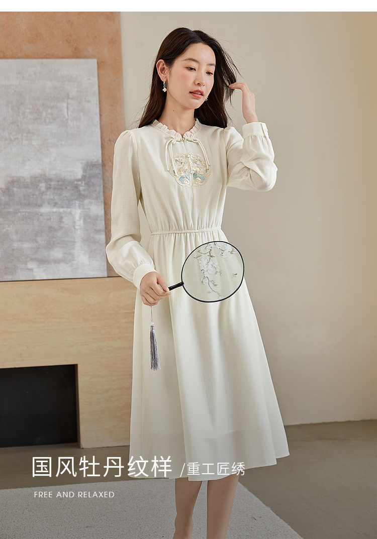 【年终特卖】熙世界国风牡丹纹样刺绣连衣裙新中式醋酸收腰裙子2025秋季新款