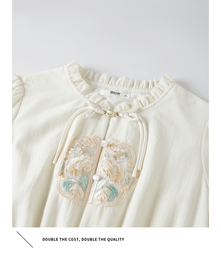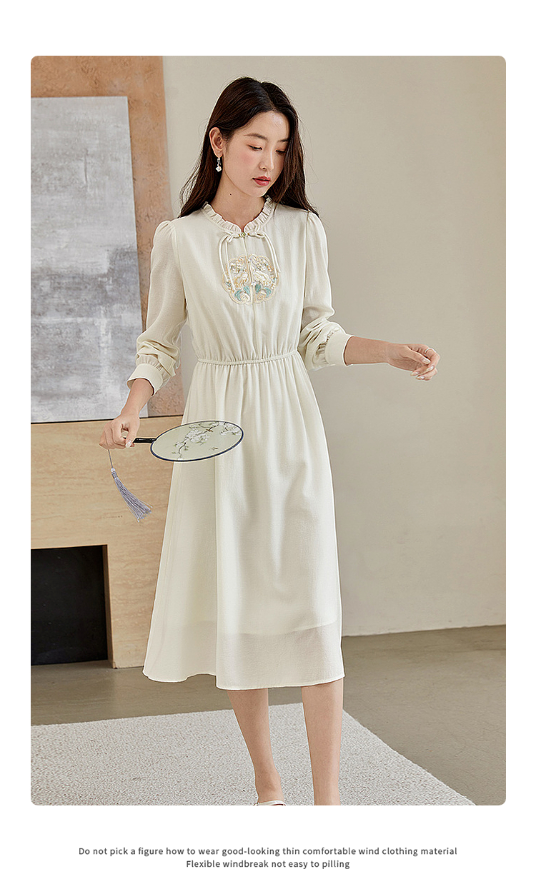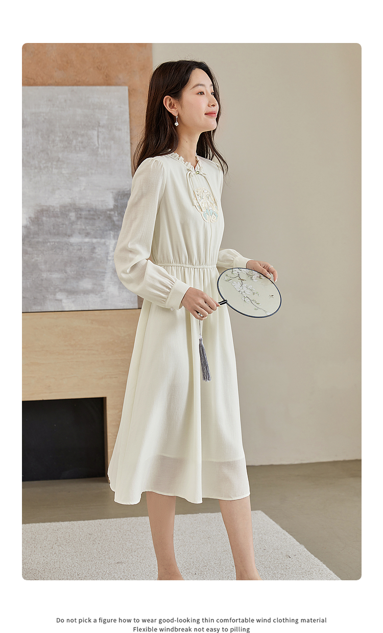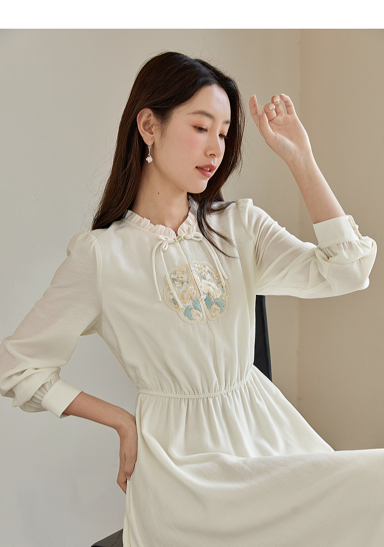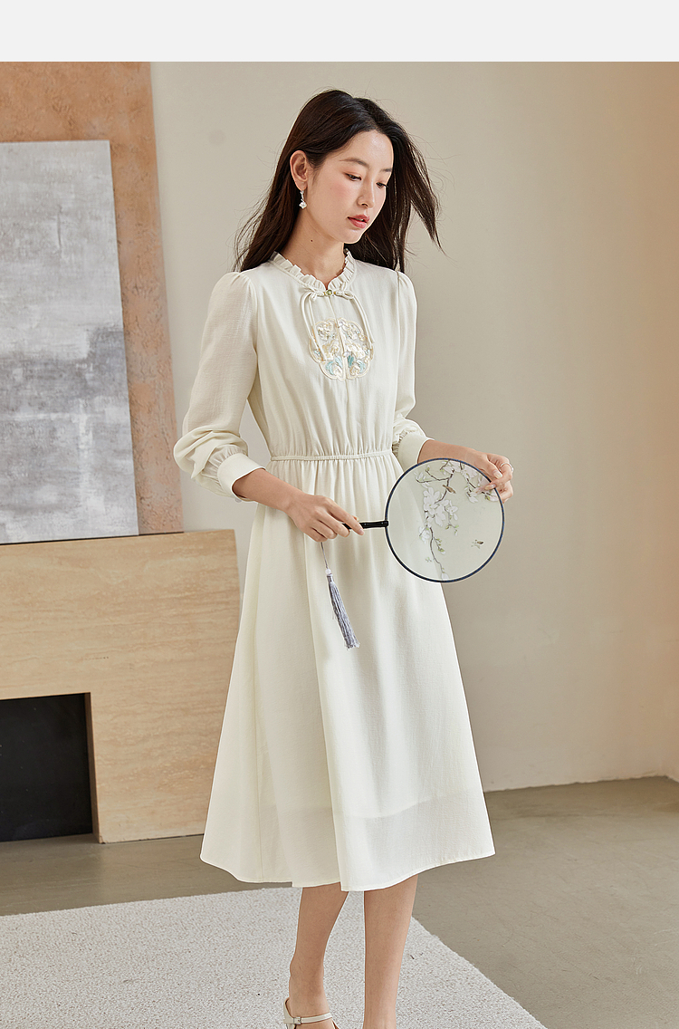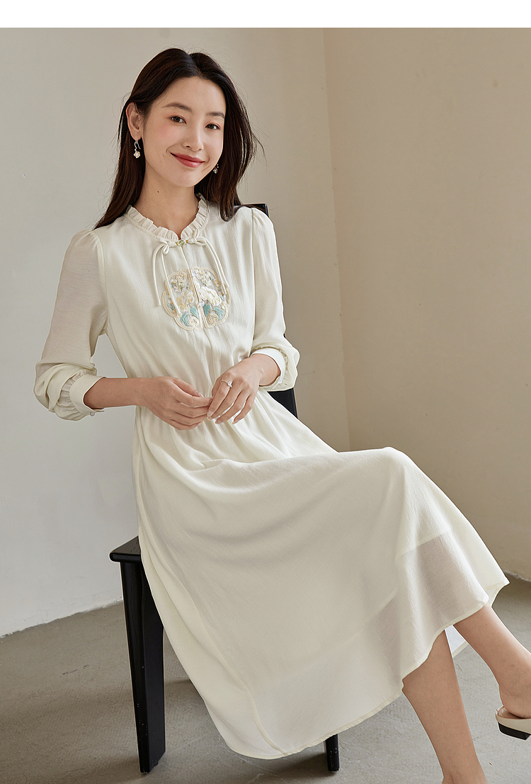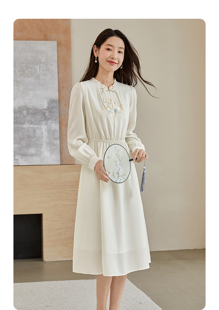【年终特卖】熙世界国风牡丹纹样刺绣连衣裙新中式醋酸收腰裙子2025秋季新款