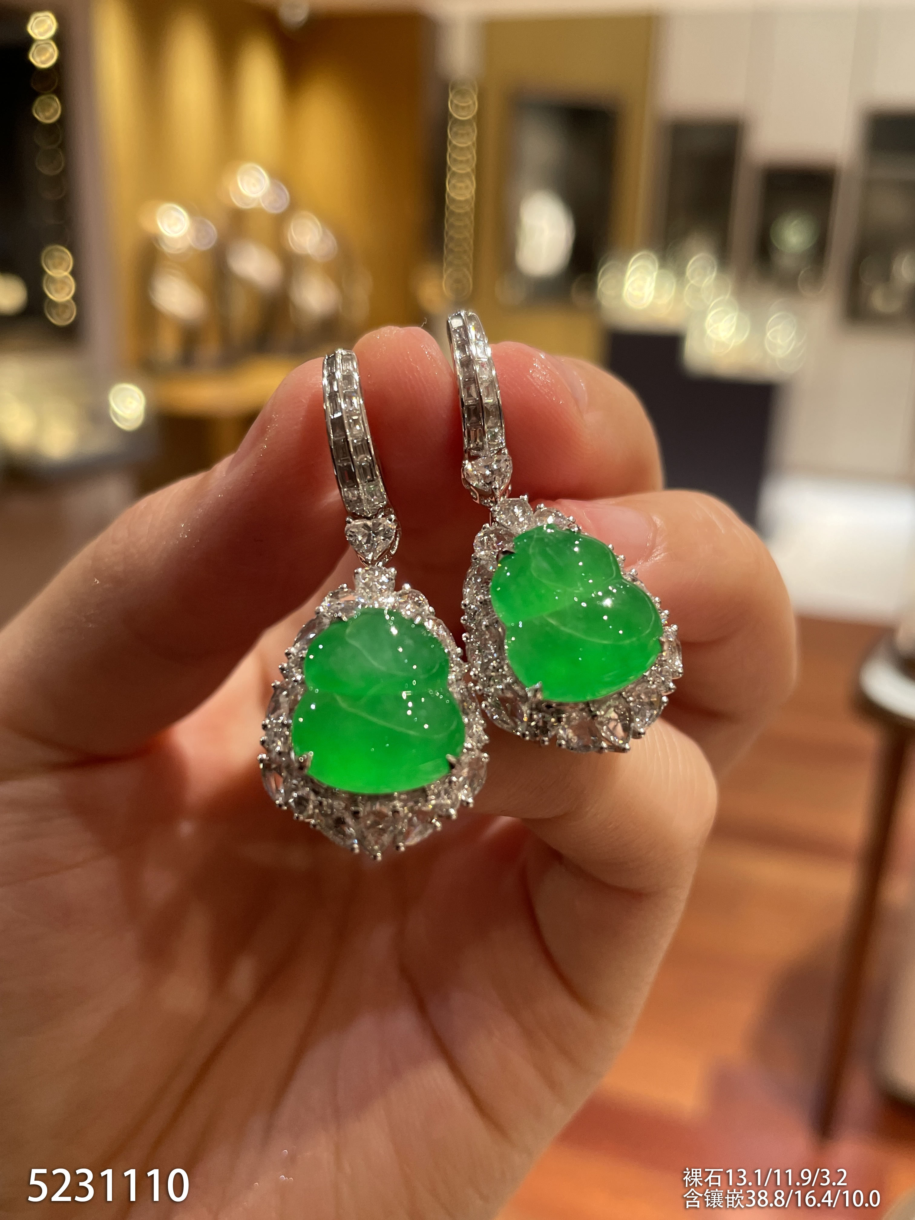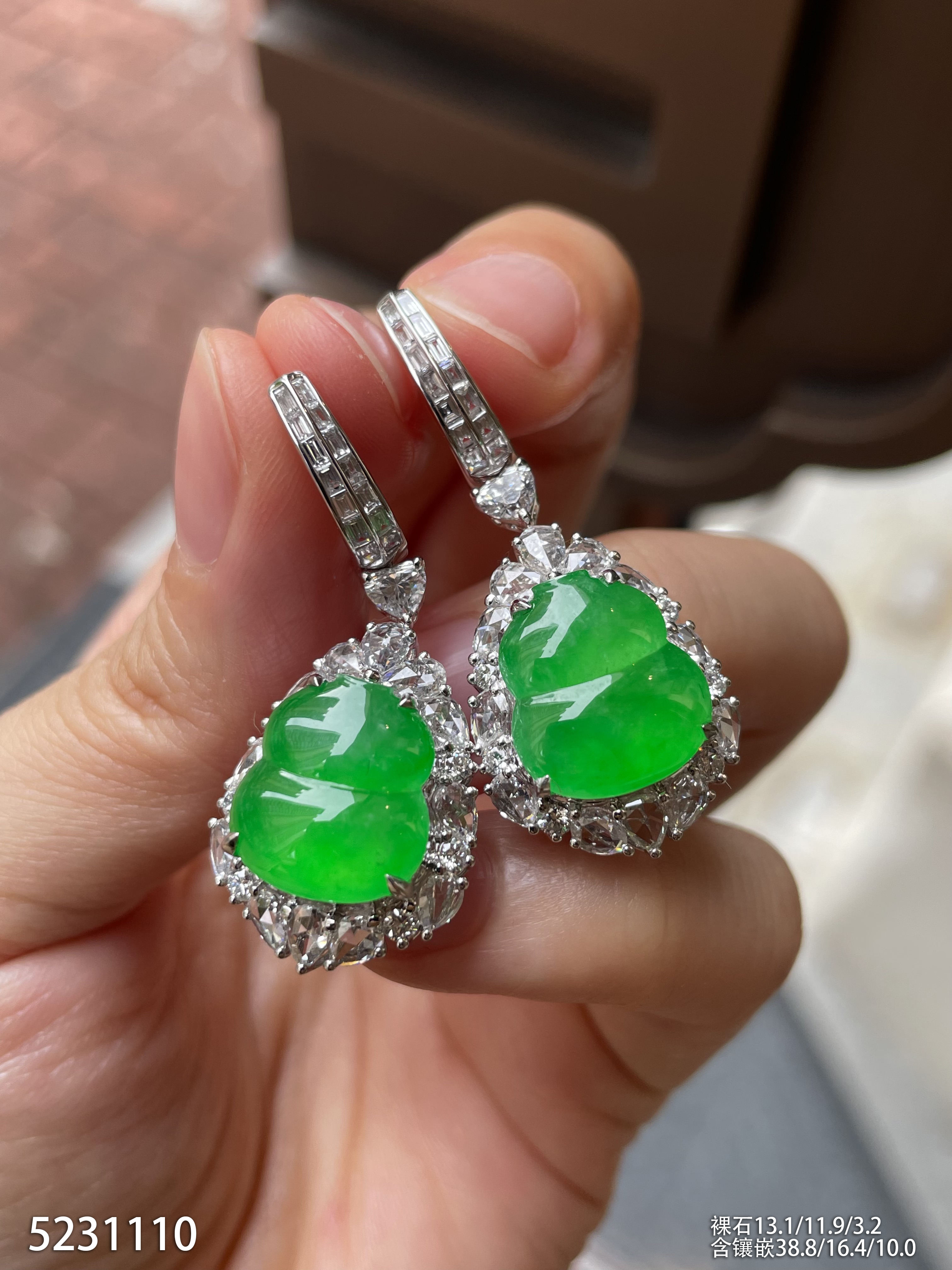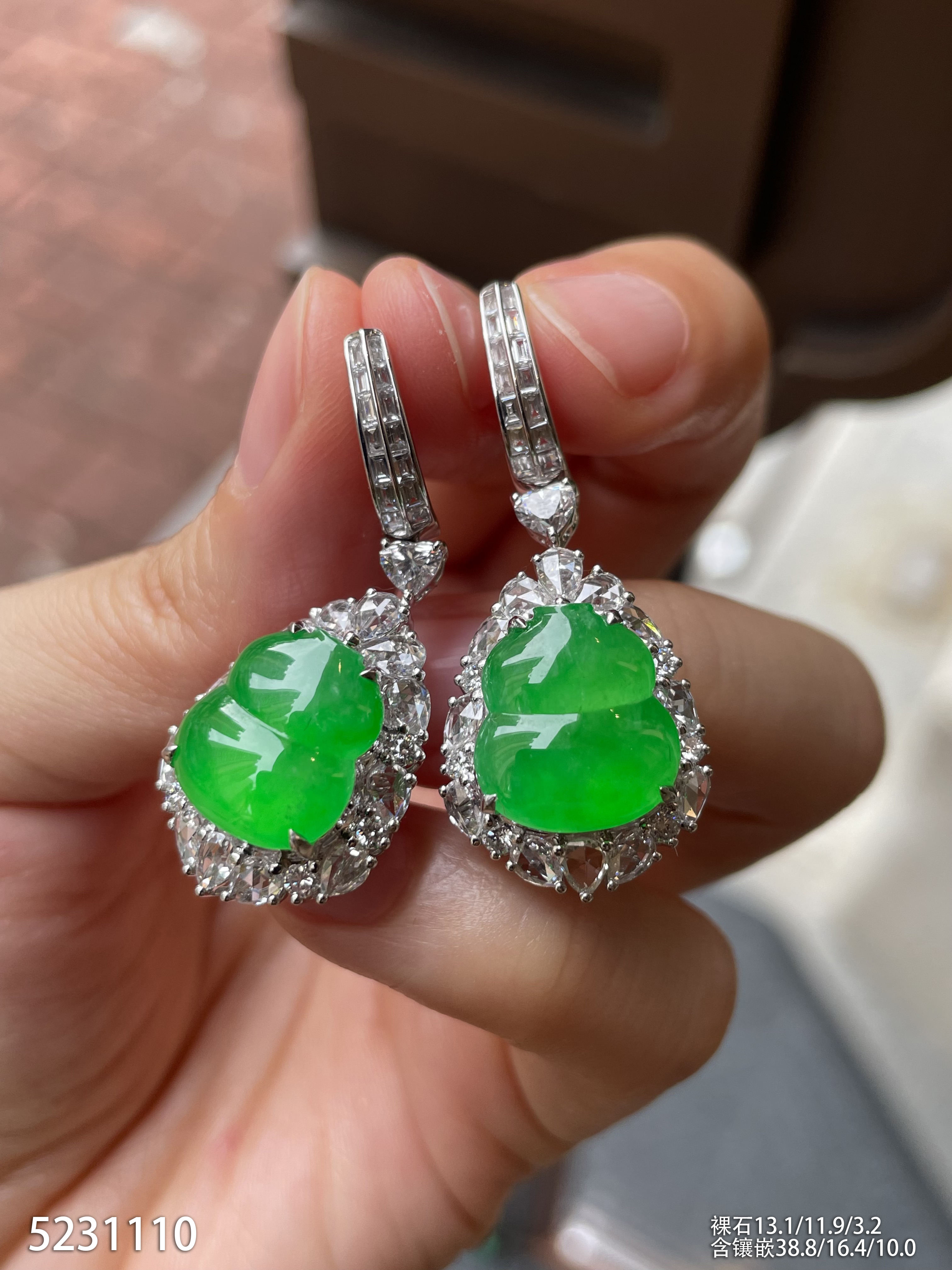 高冰种阳绿葫芦耳坠【5231110】具体价格微信咨询