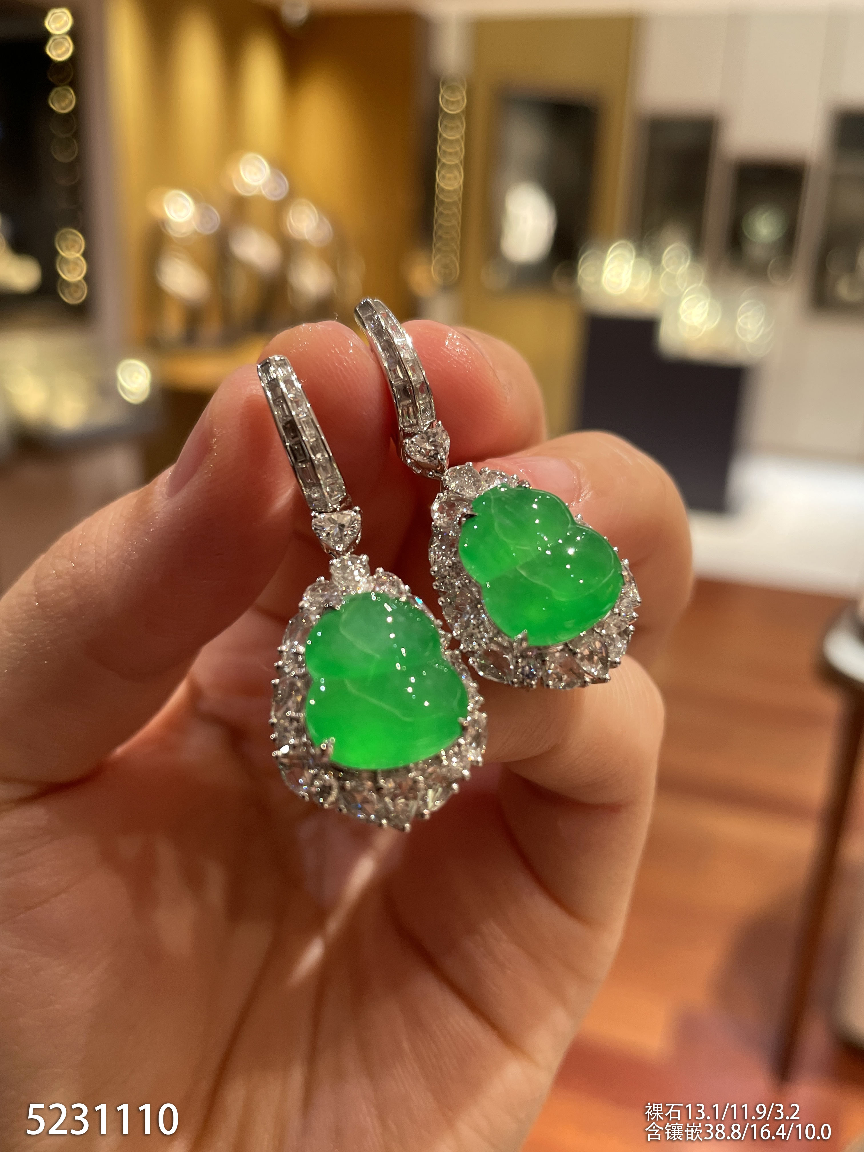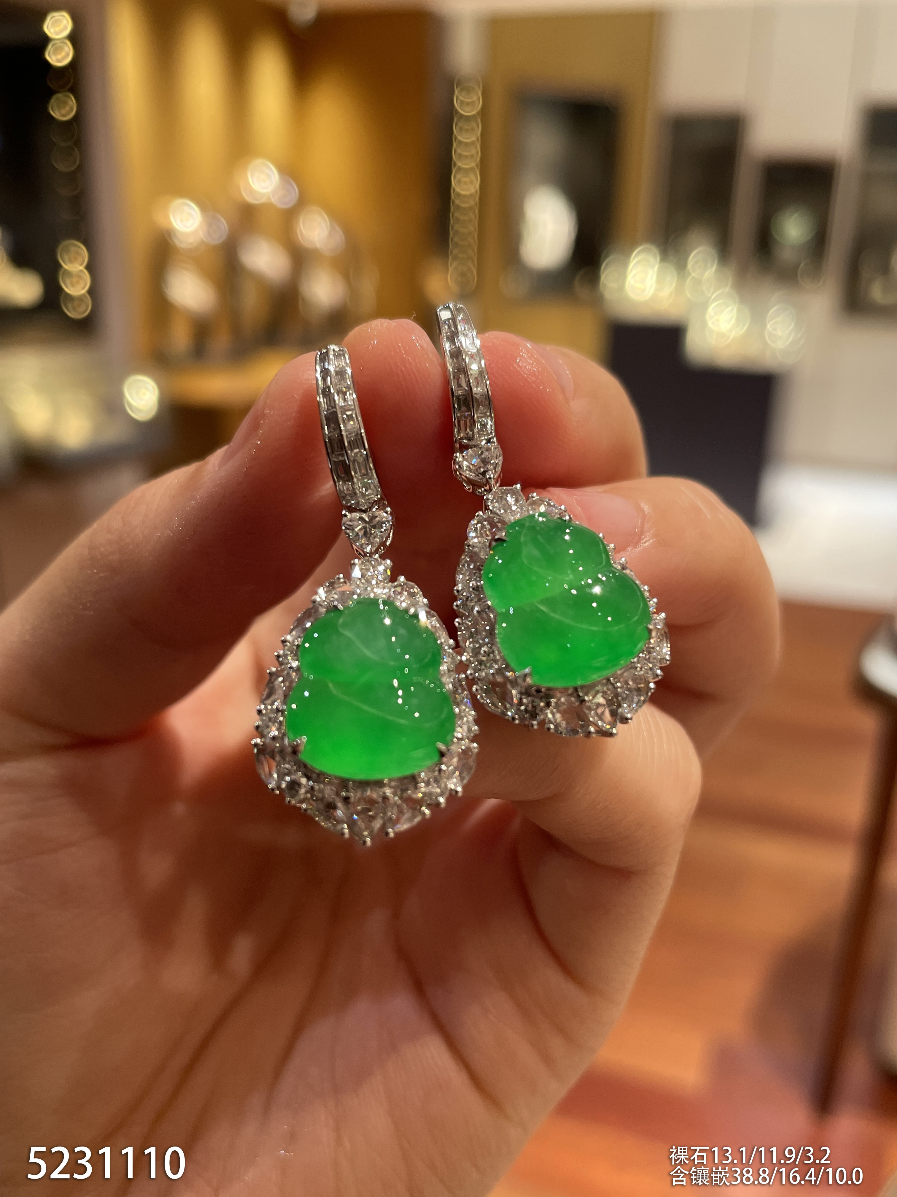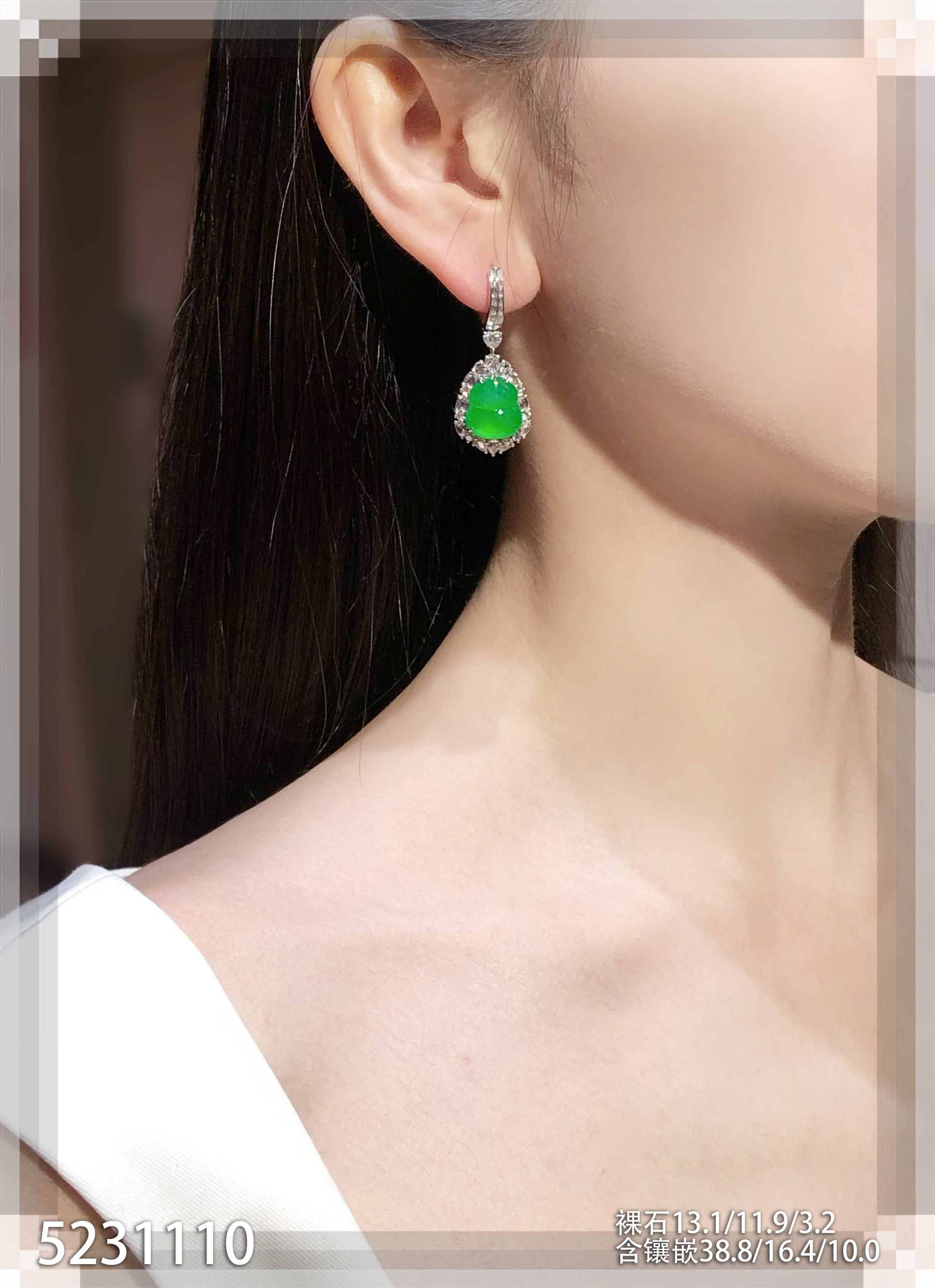 高冰种阳绿葫芦耳坠【5231110】具体价格微信咨询