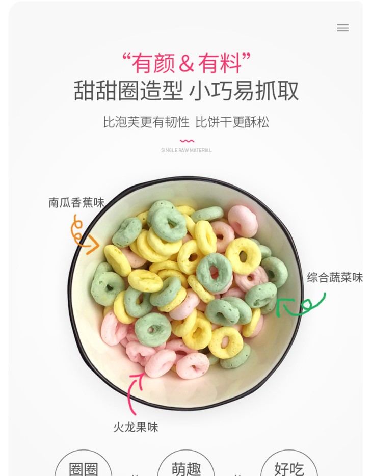 婴享宝宝小零食马卡龙脆脆圈无添加小泡芙圈手指饼干