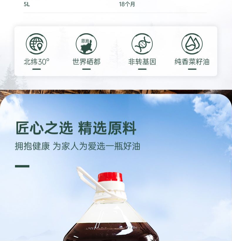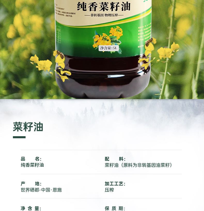【严选】【金新农】湖北恩施耘丰鑫品纯香菜籽油5L/瓶 (厂家直发)