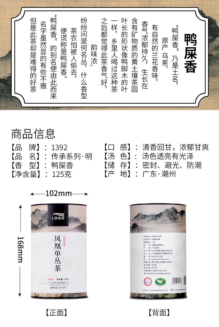 天池传承系列 凤凰单从 鸭屎香 银花香 单枞茶 125g