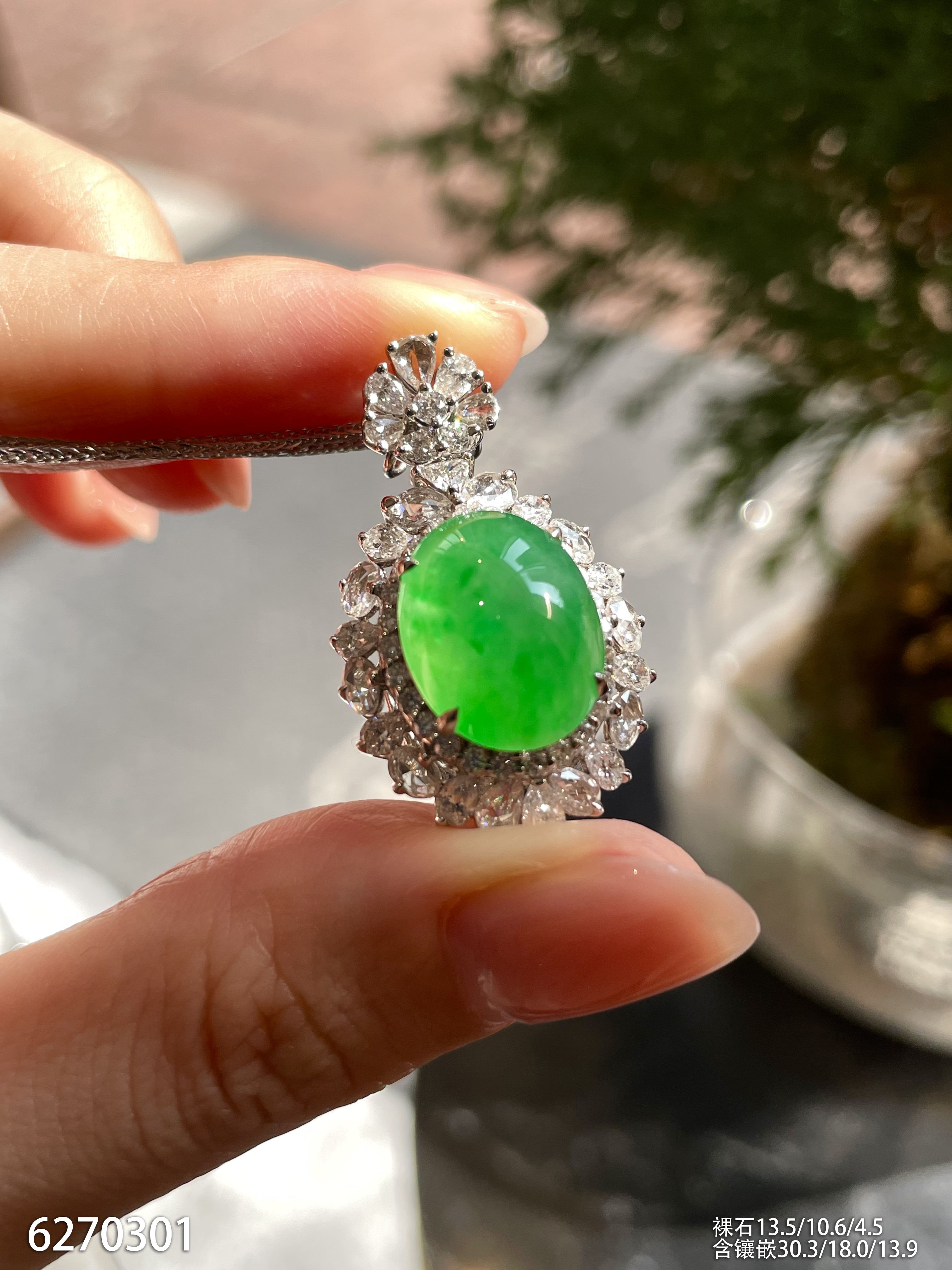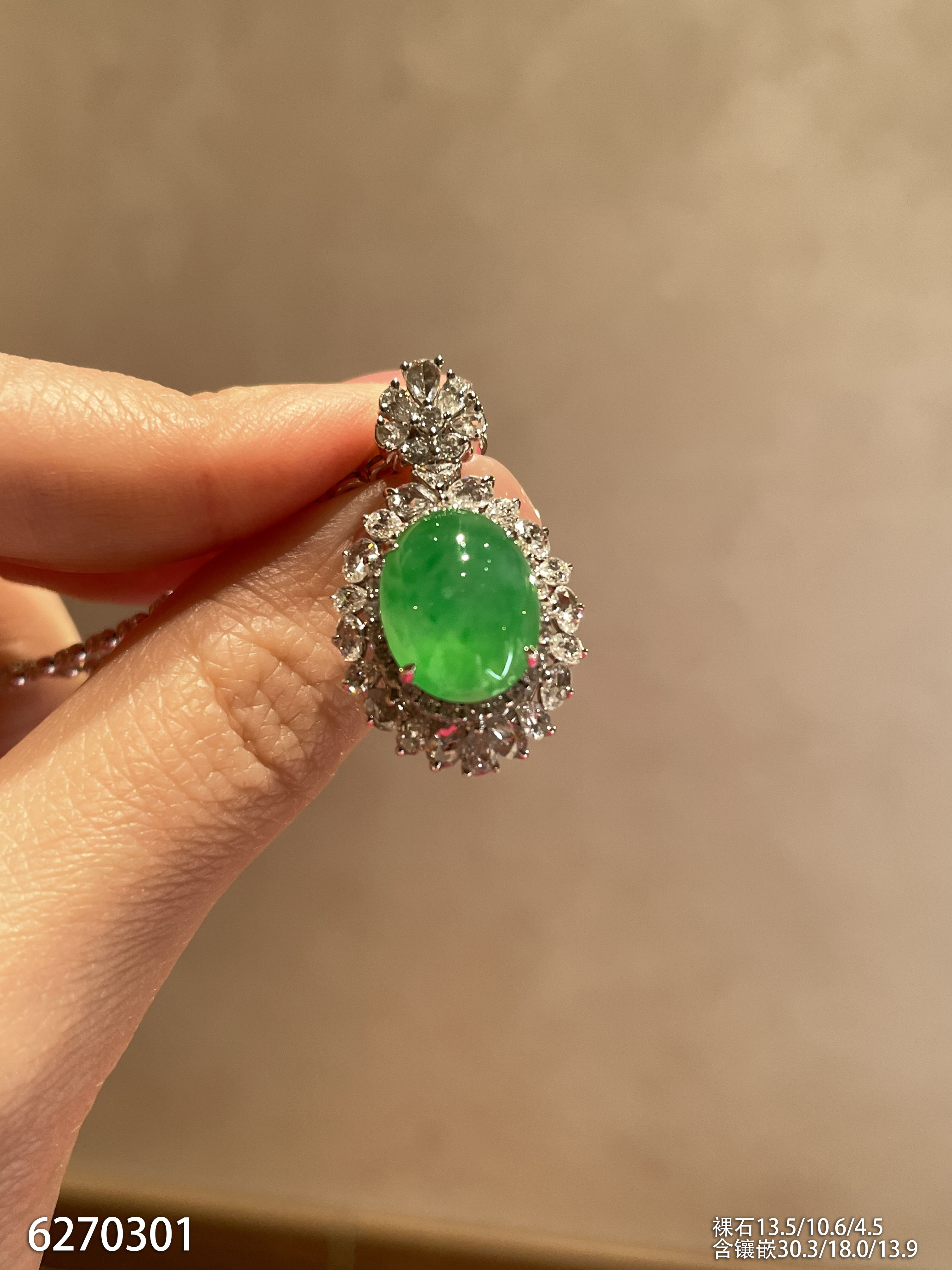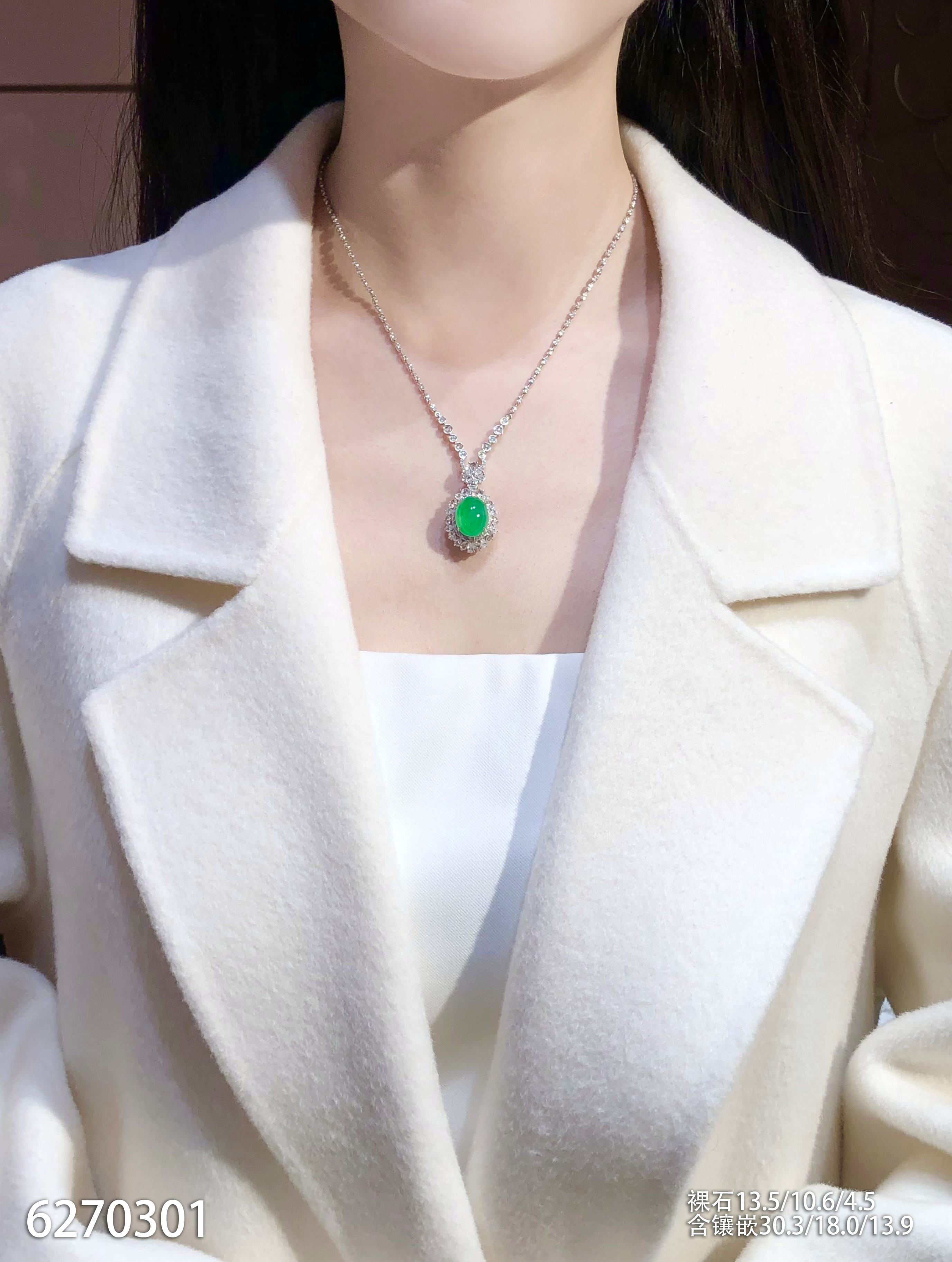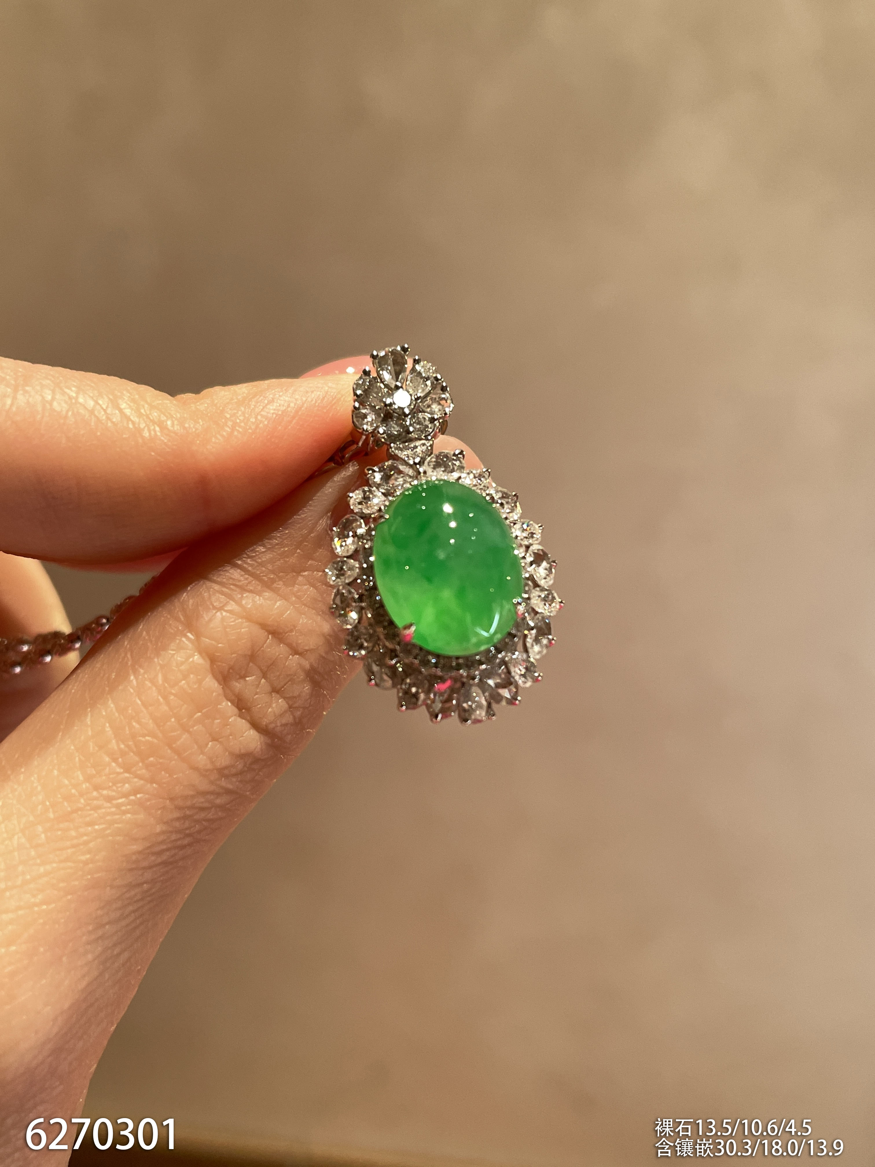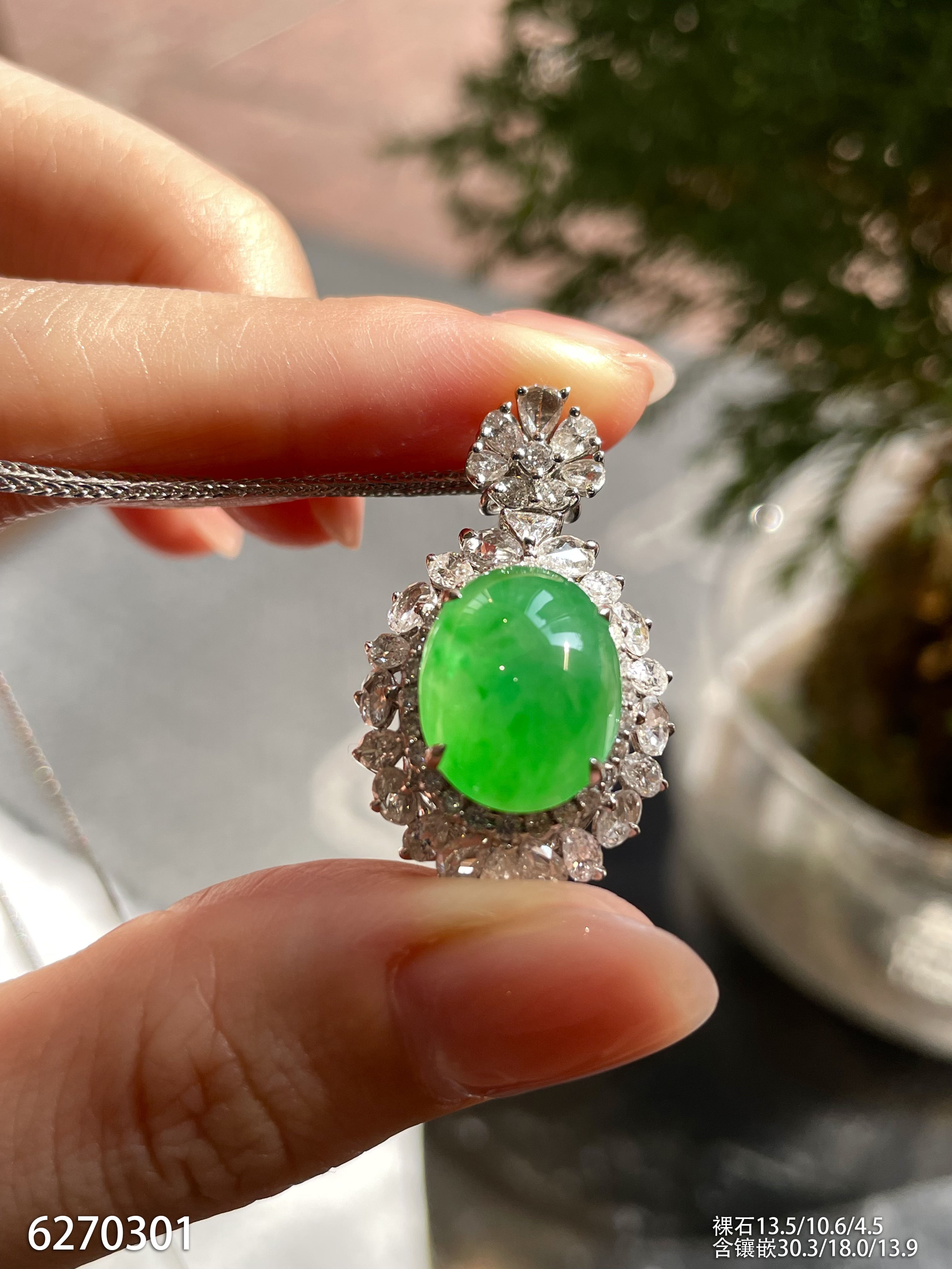 高冰种艳绿蛋面吊坠 62999【6270301】