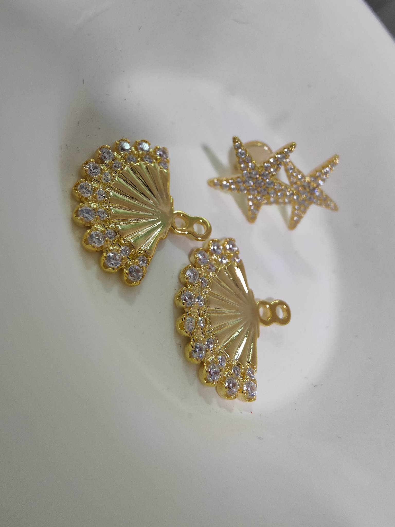 这是一款很有设计感的耳钉,一大一小贝壳和海星组成,每处细节都有很强的肌理感,显贵却又不俗气,上耳灵动,写满了高级!海星可单独佩戴超级实用!