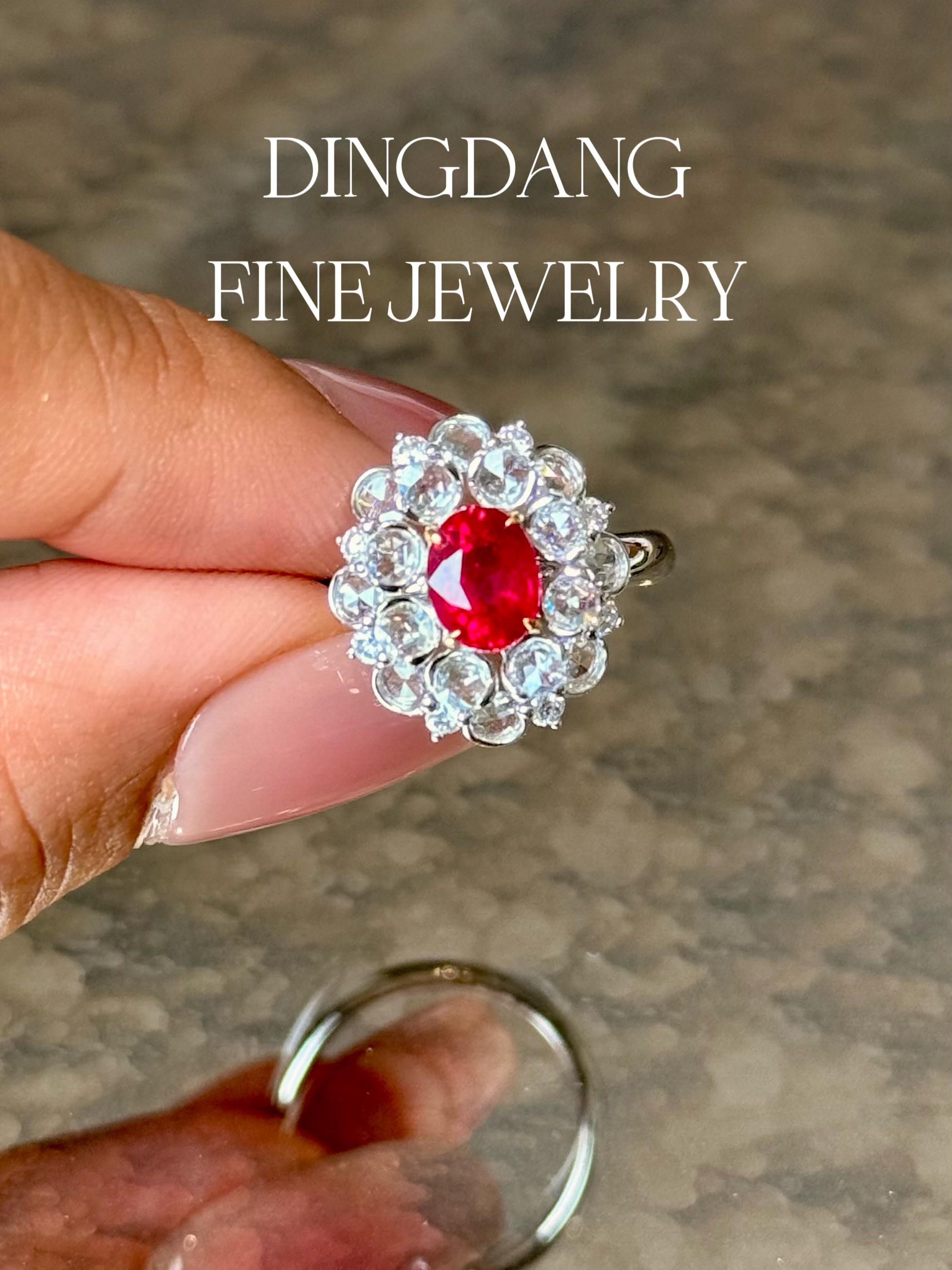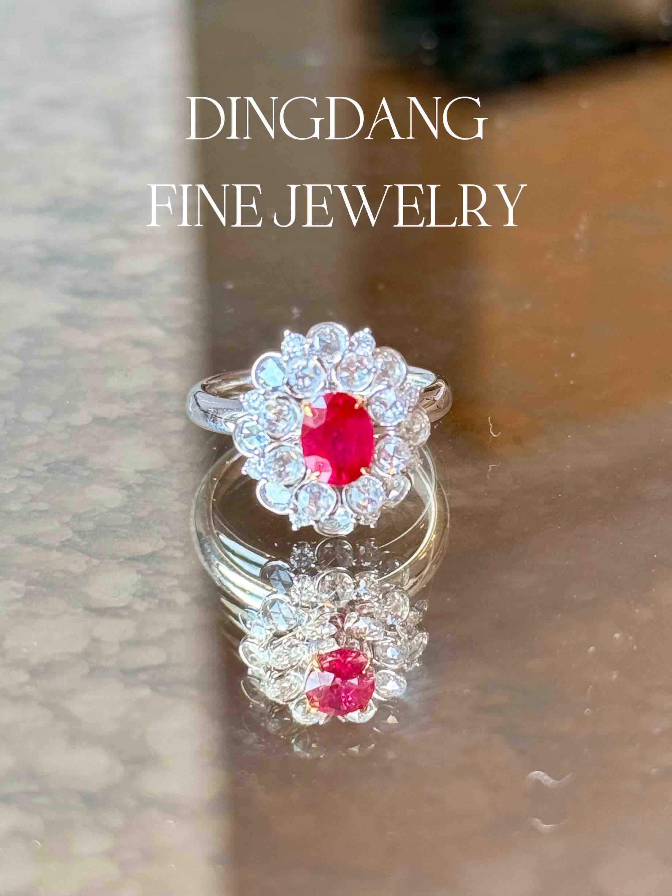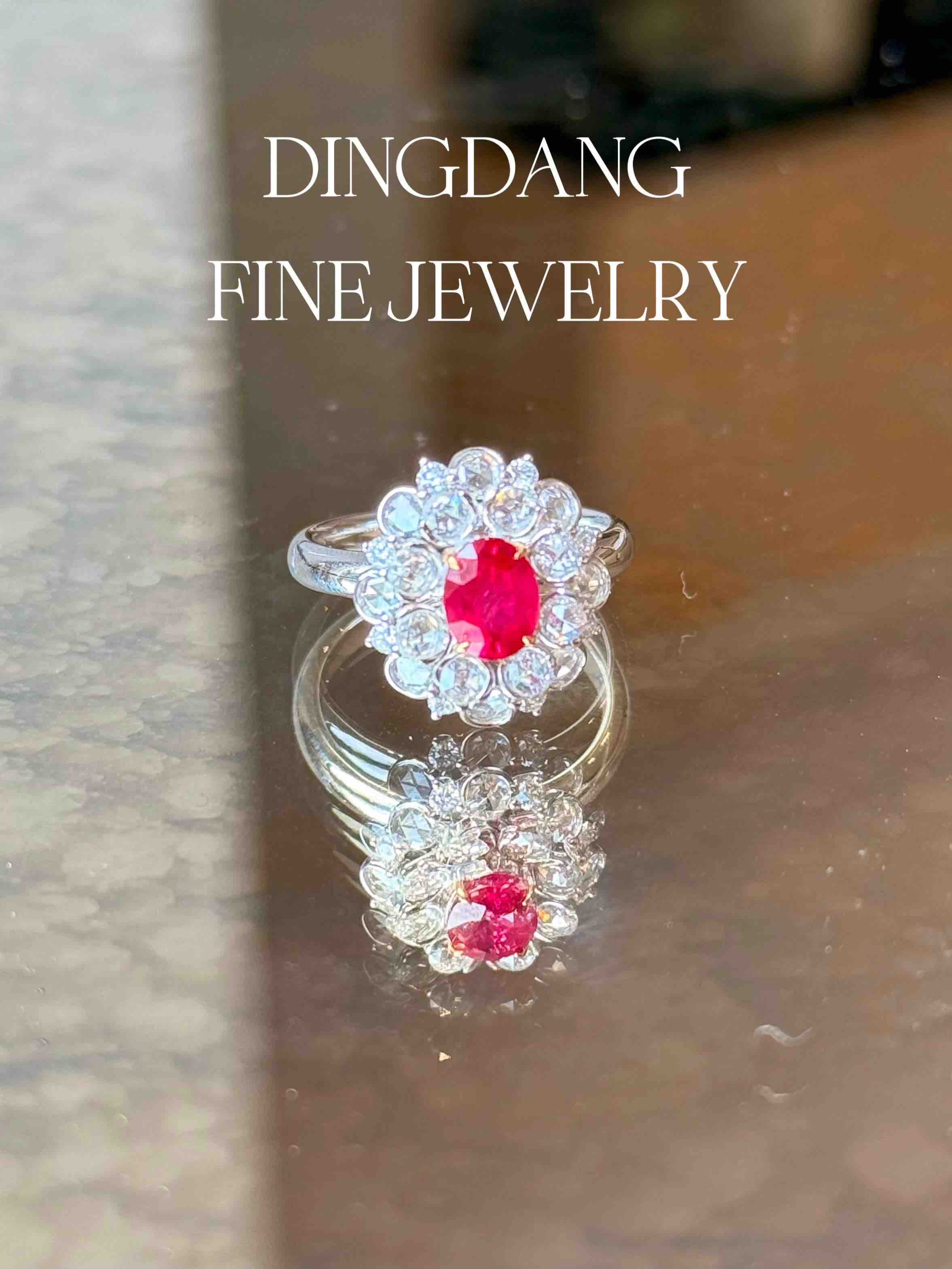缅甸 老烧鸽血红红宝石 1.14ct VVR 钻戒 强荧光