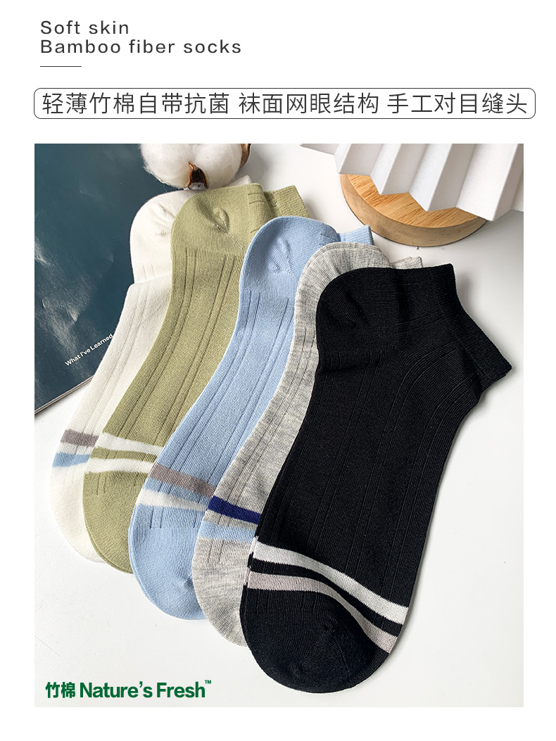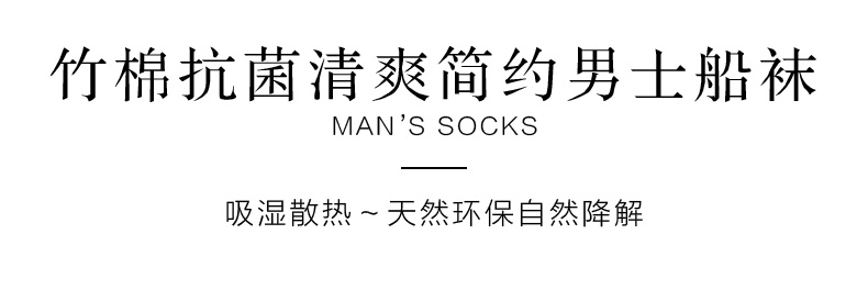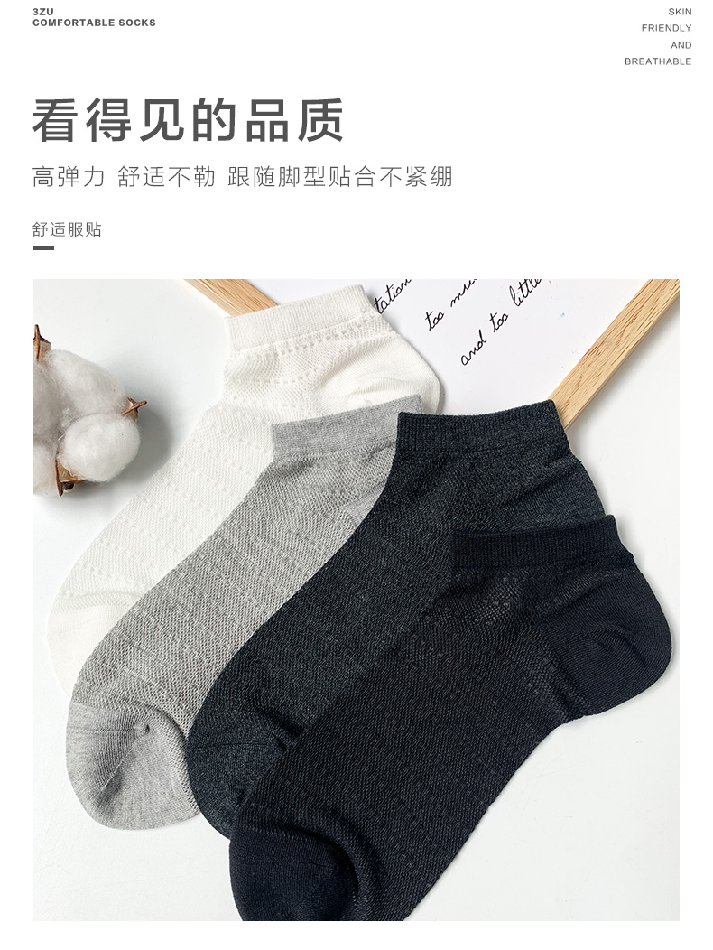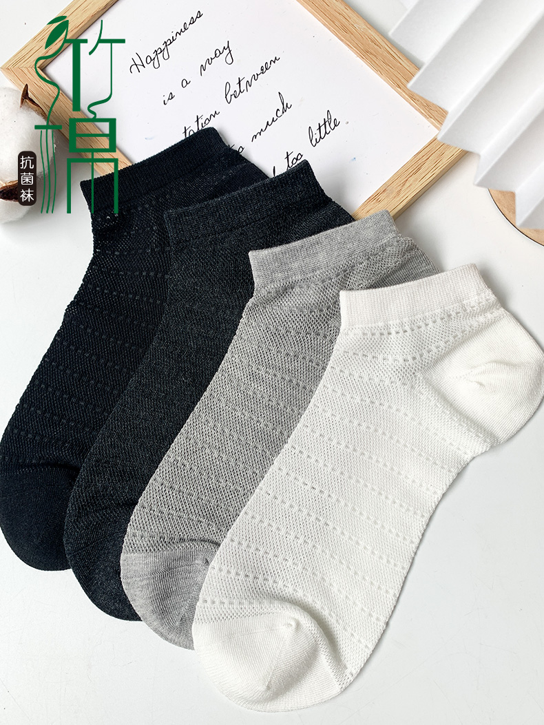 足装秀 24夏天男船袜新品竹棉轻薄透气网眼抗菌男短款纯色男袜子