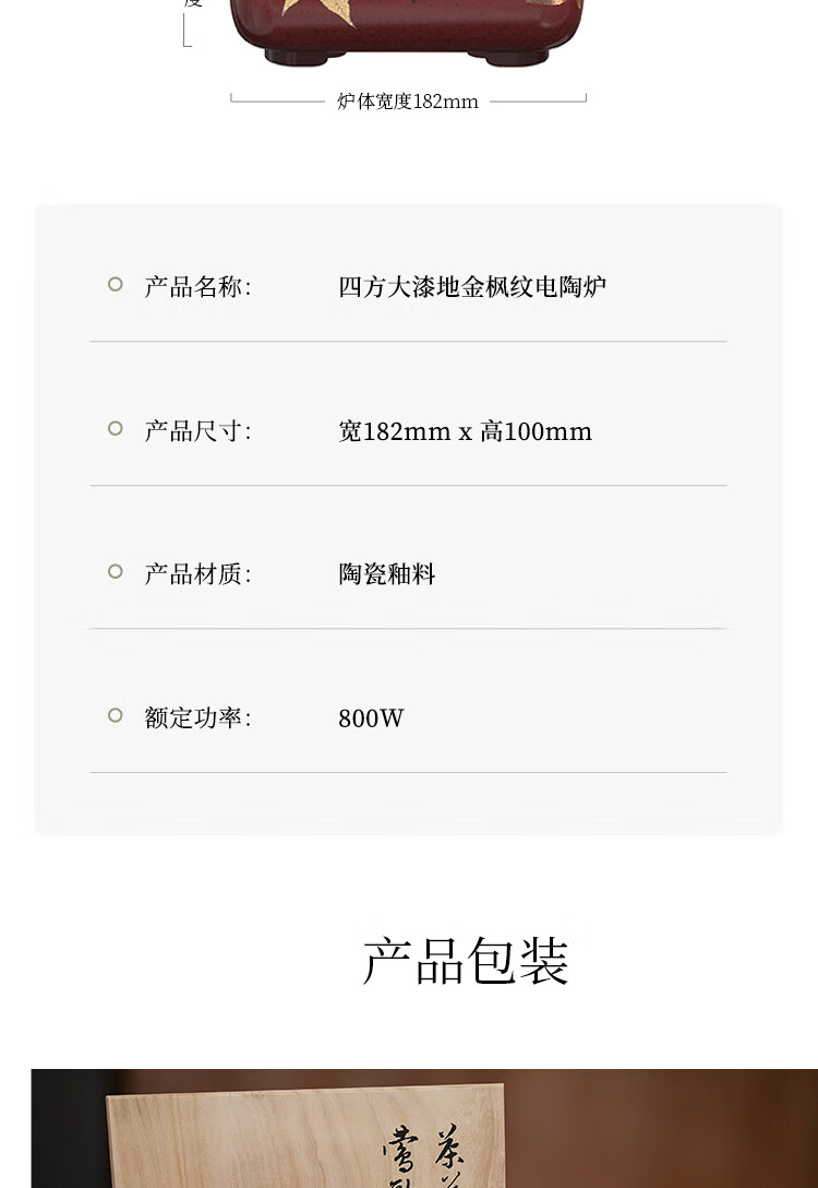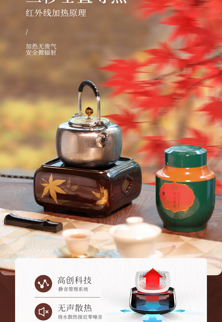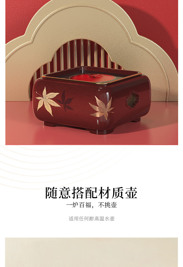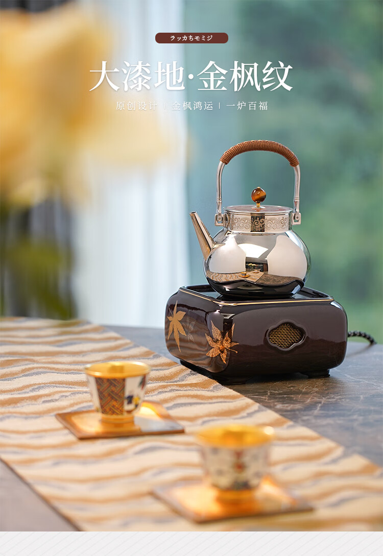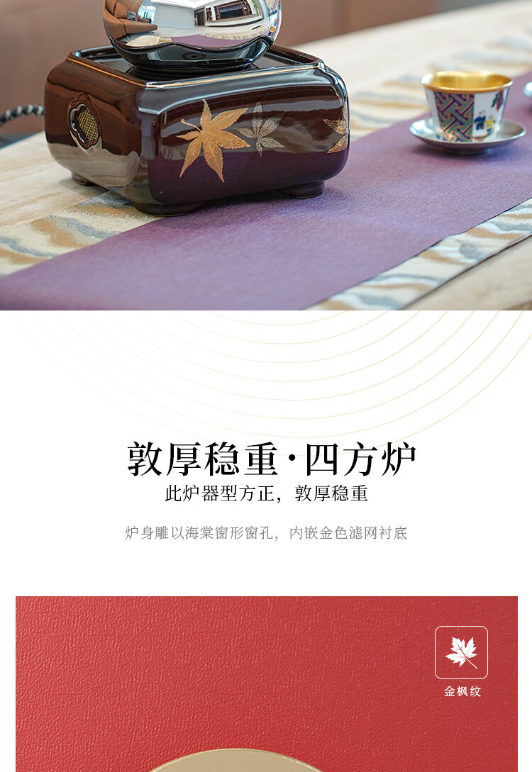 莺歌烧四方大漆地金枫纹电陶炉轻音家用煮茶茶炉红外线泡茶具茶器台式泡茶煮茶器金枫叶【厂家直发】
