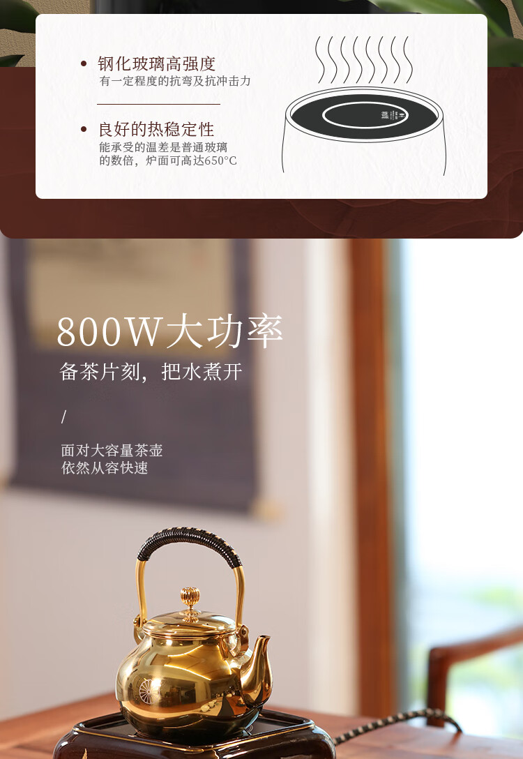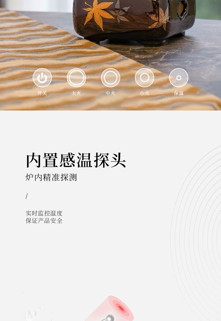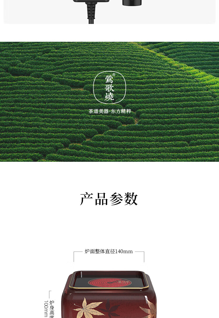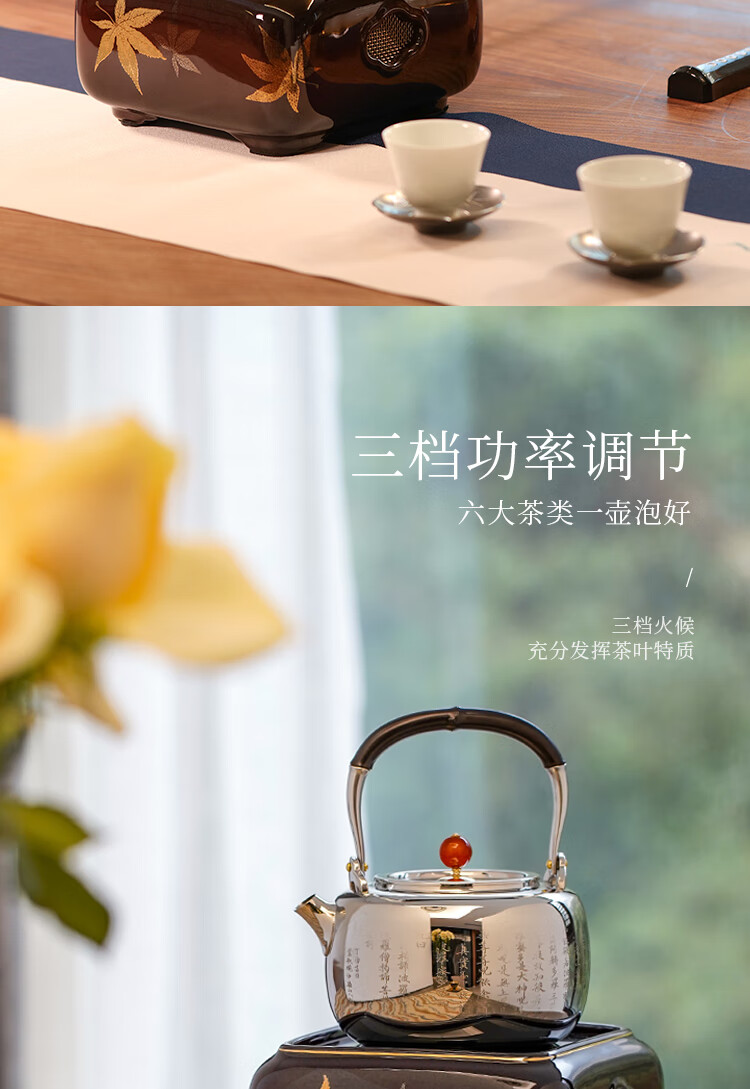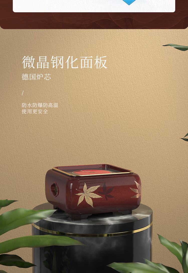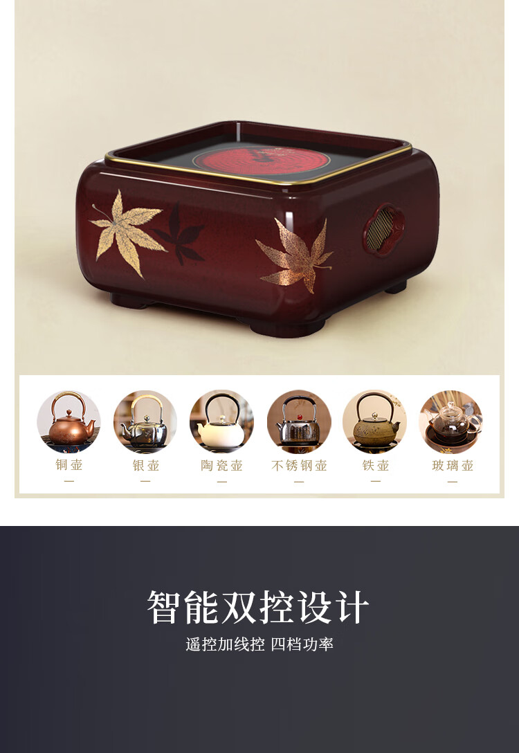 莺歌烧四方大漆地金枫纹电陶炉轻音家用煮茶茶炉红外线泡茶具茶器台式泡茶煮茶器金枫叶【厂家直发】