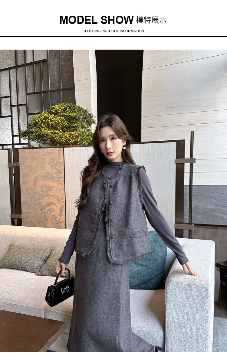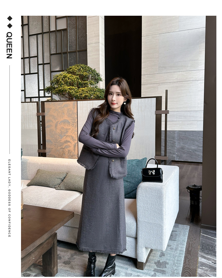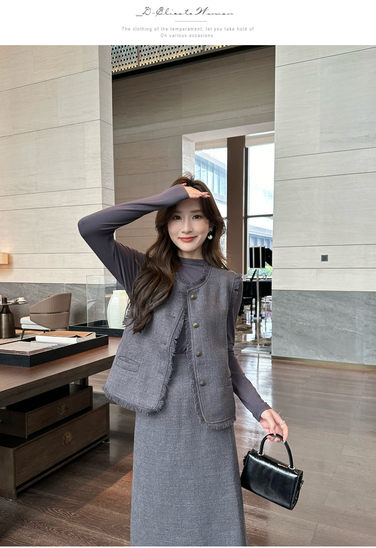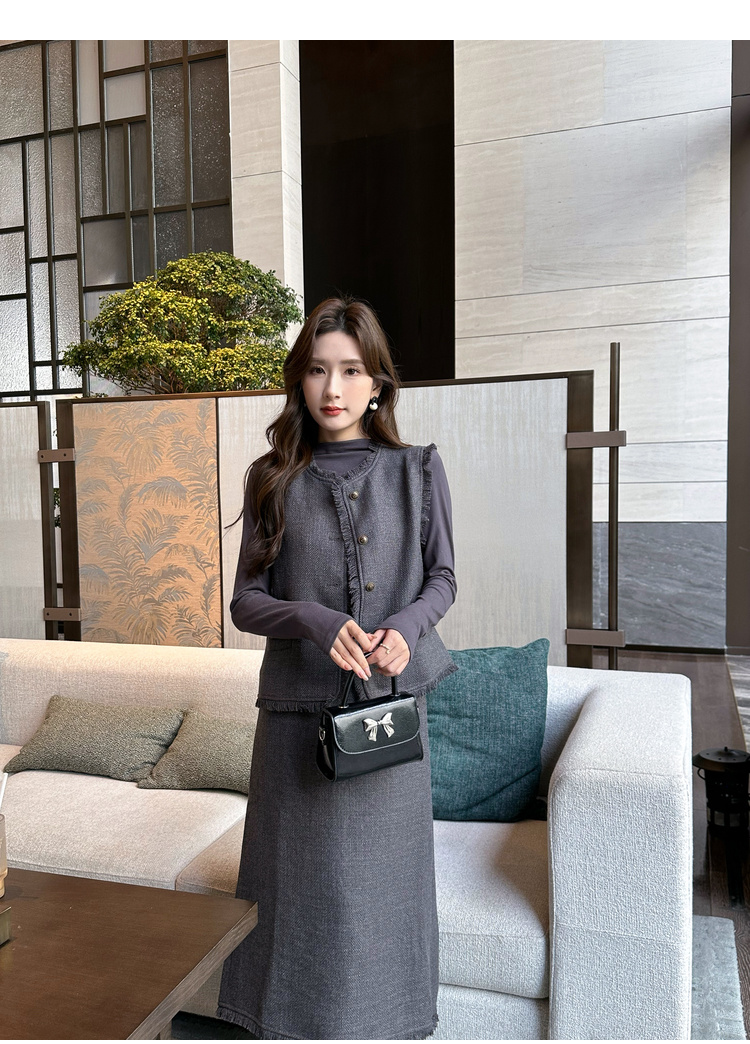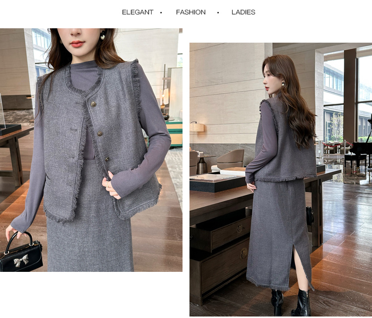 奢姿2025秋冬新款大码女装法式通勤套装胖妹妹上衣马甲半裙三件套9944926862