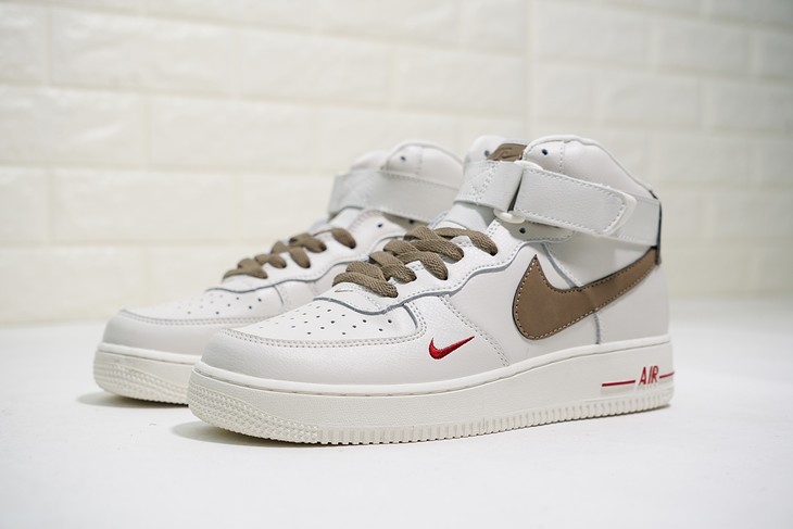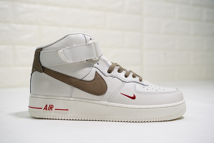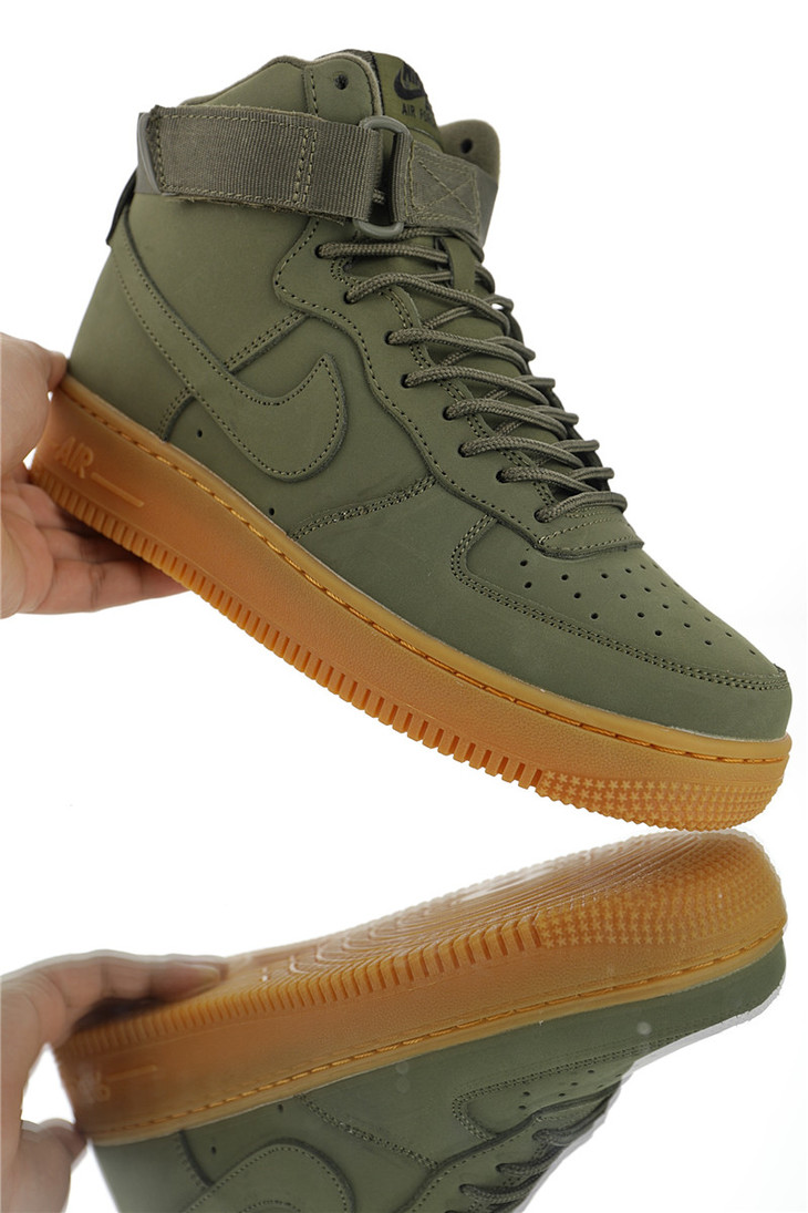 耐克Nike Wmns Air Force 1 High “Medium Olive” '07 LV8 空军一号经典高帮百搭休闲运动板鞋 全白橄榄绿 奶白褐勾