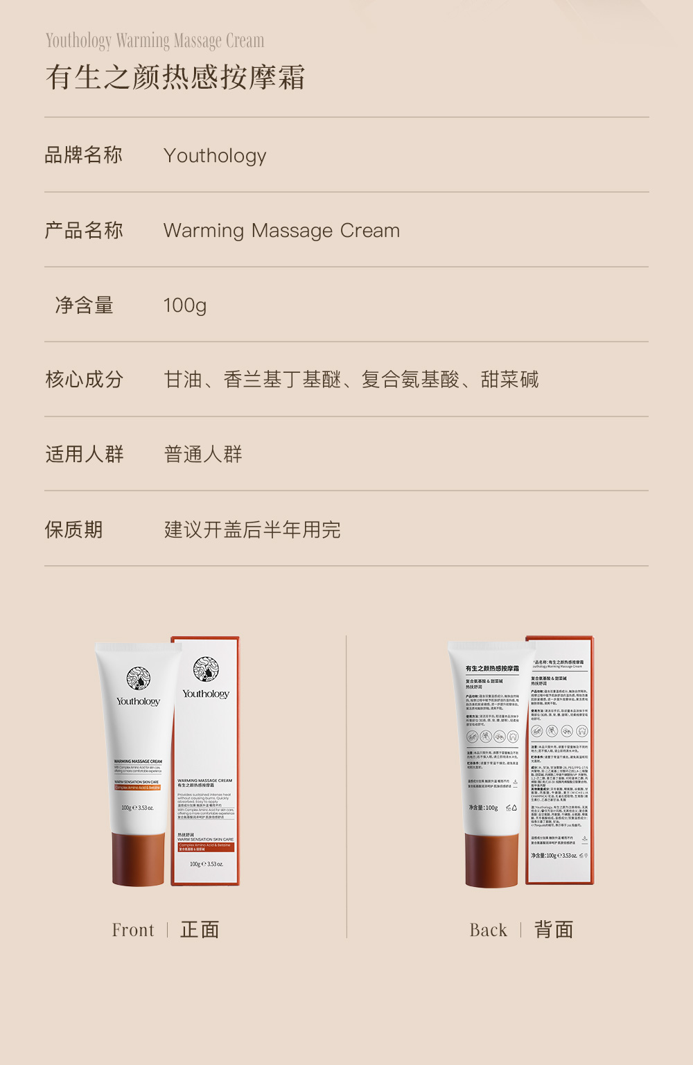【双12】有生之颜 热感按摩霜-100g