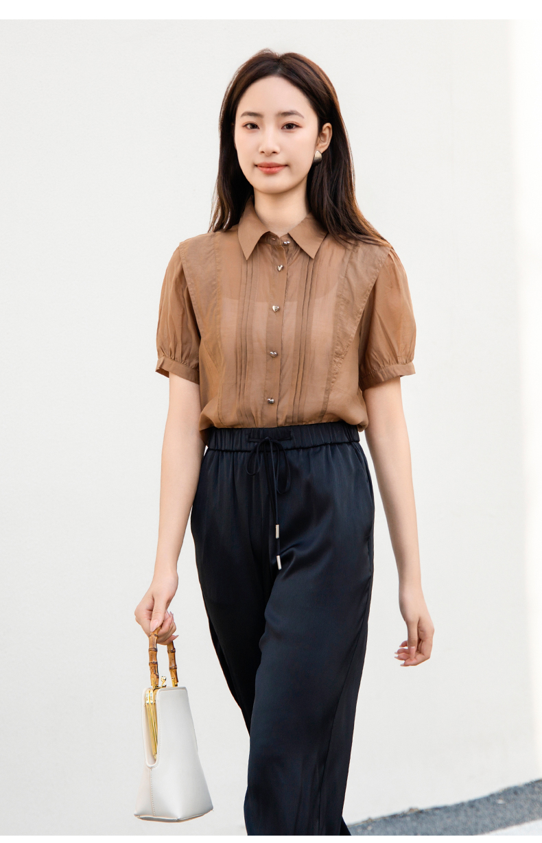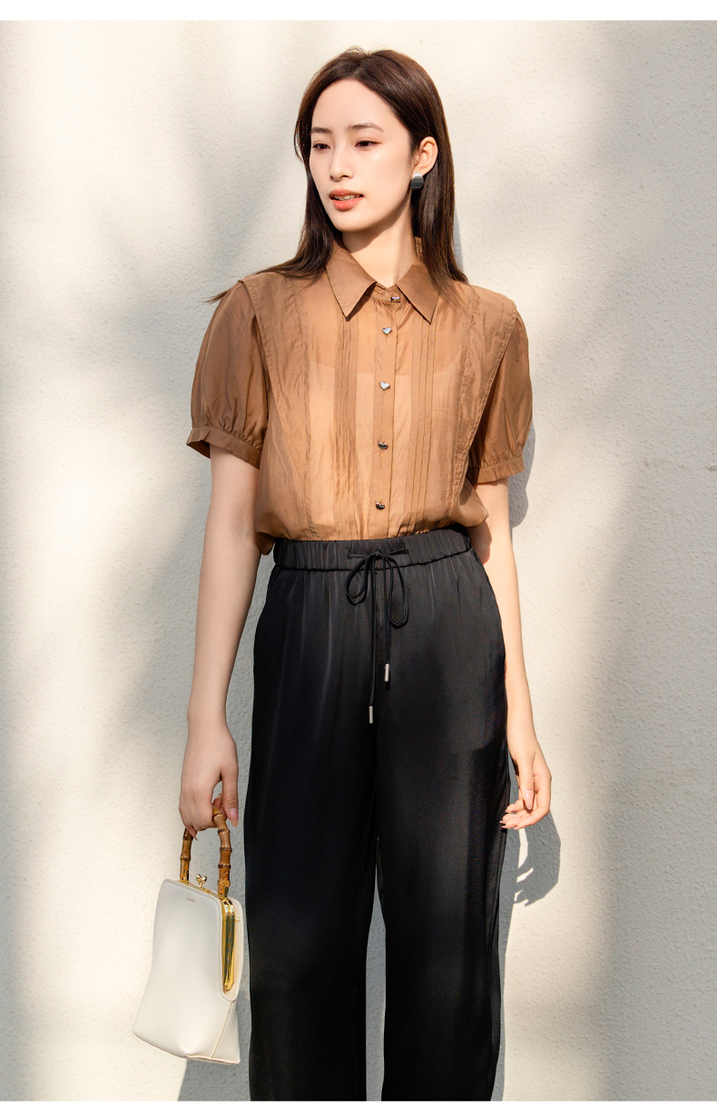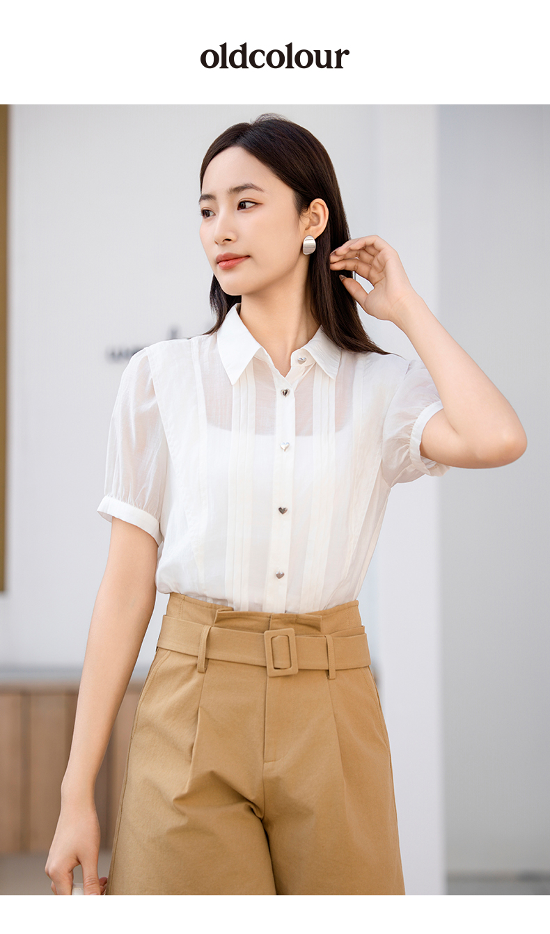 oldcolour欧珂夏季莱赛尔天丝雪纺上衣女小众设计感衬衫P24011191