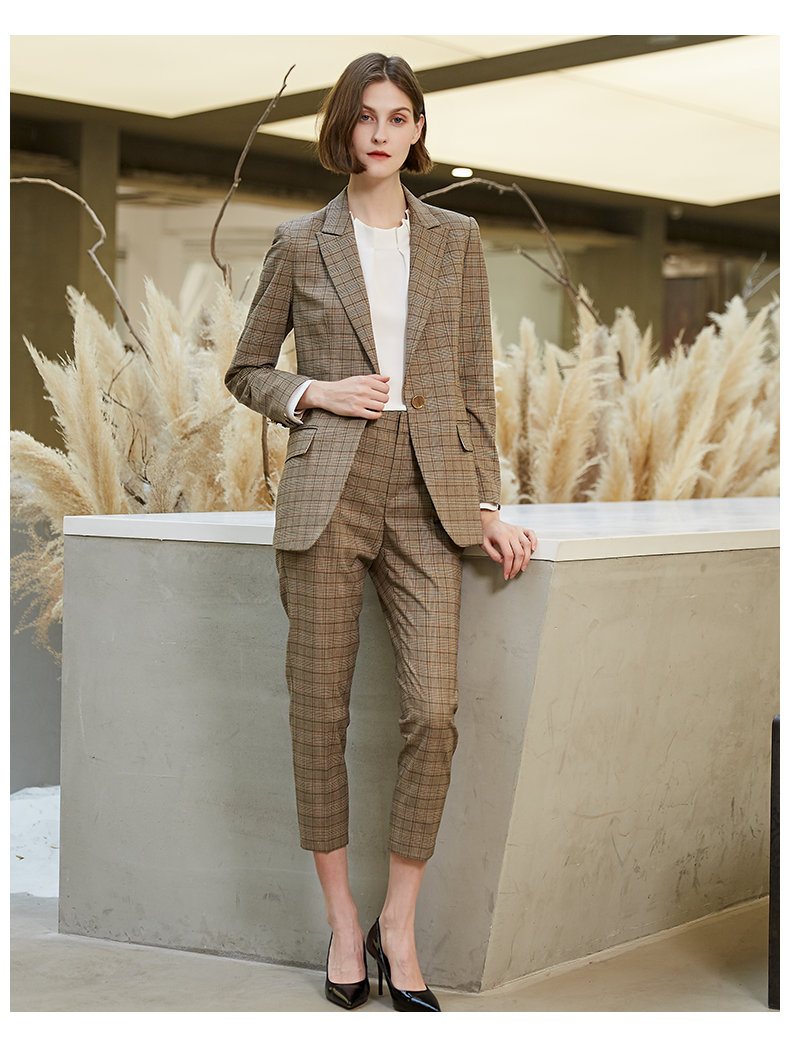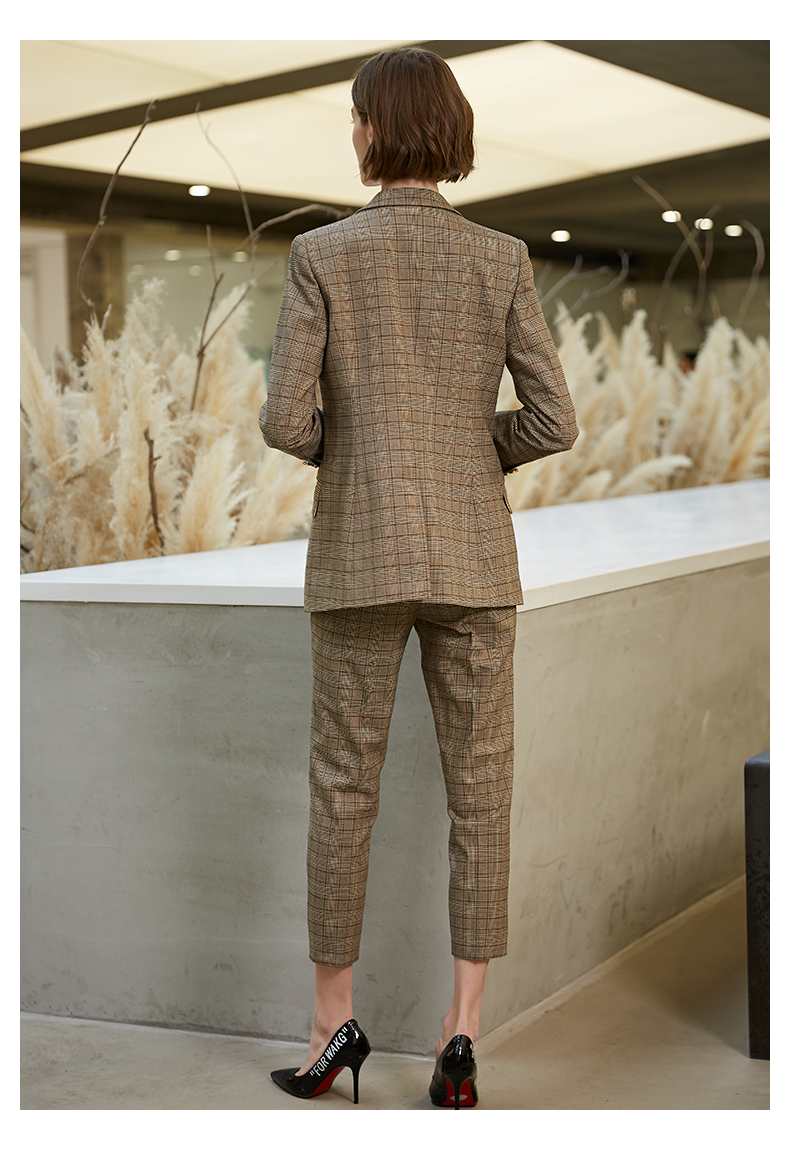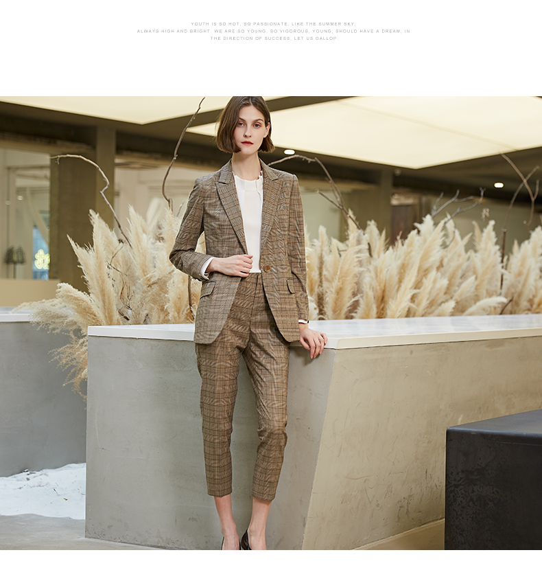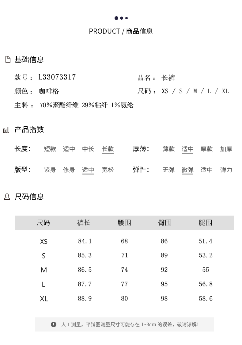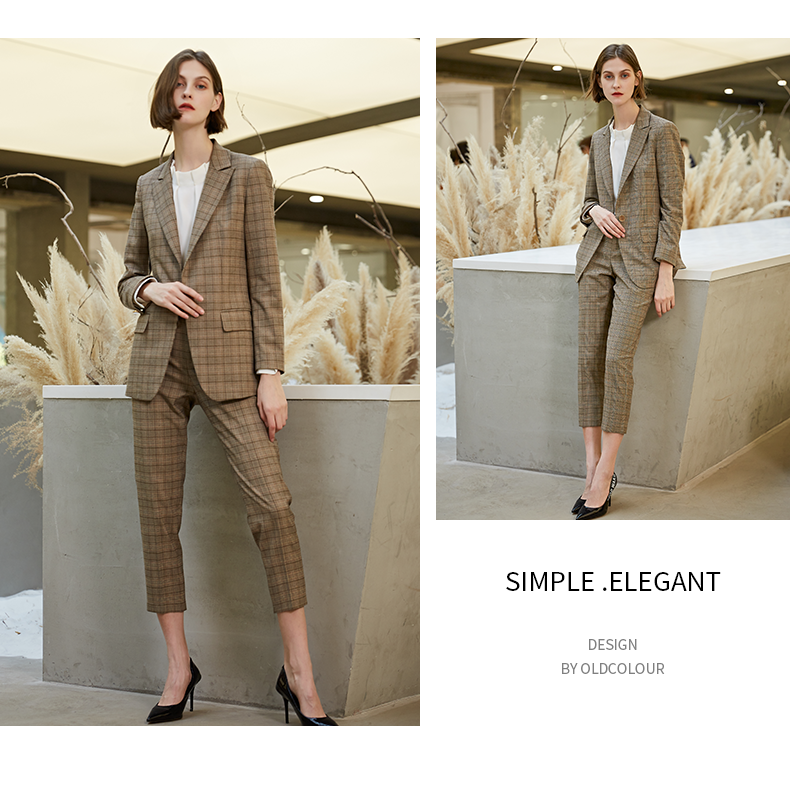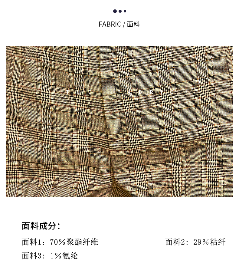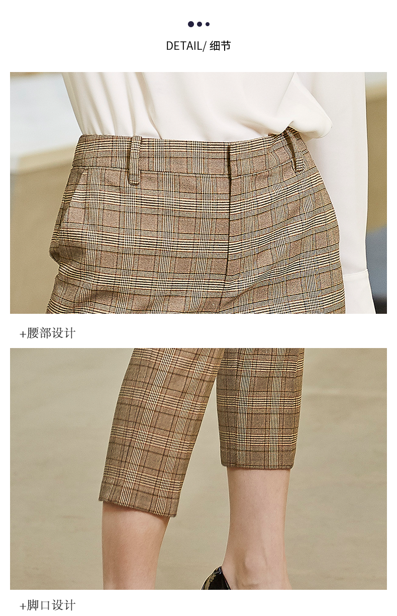 oldcolour秋季新款格子休闲长裤修身西服裤女L33073317