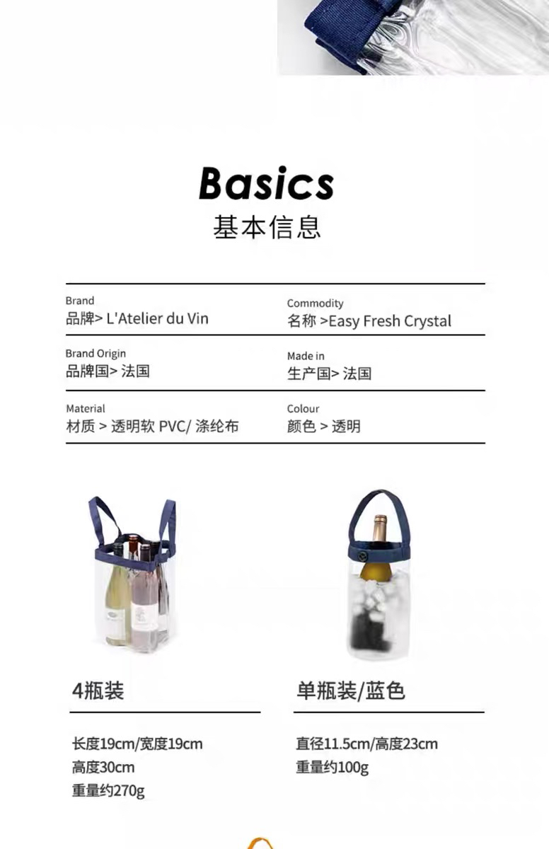 法国L'Atelier du Vin透明PVC便携葡萄酒冰酒袋 户外快速降温冰桶
