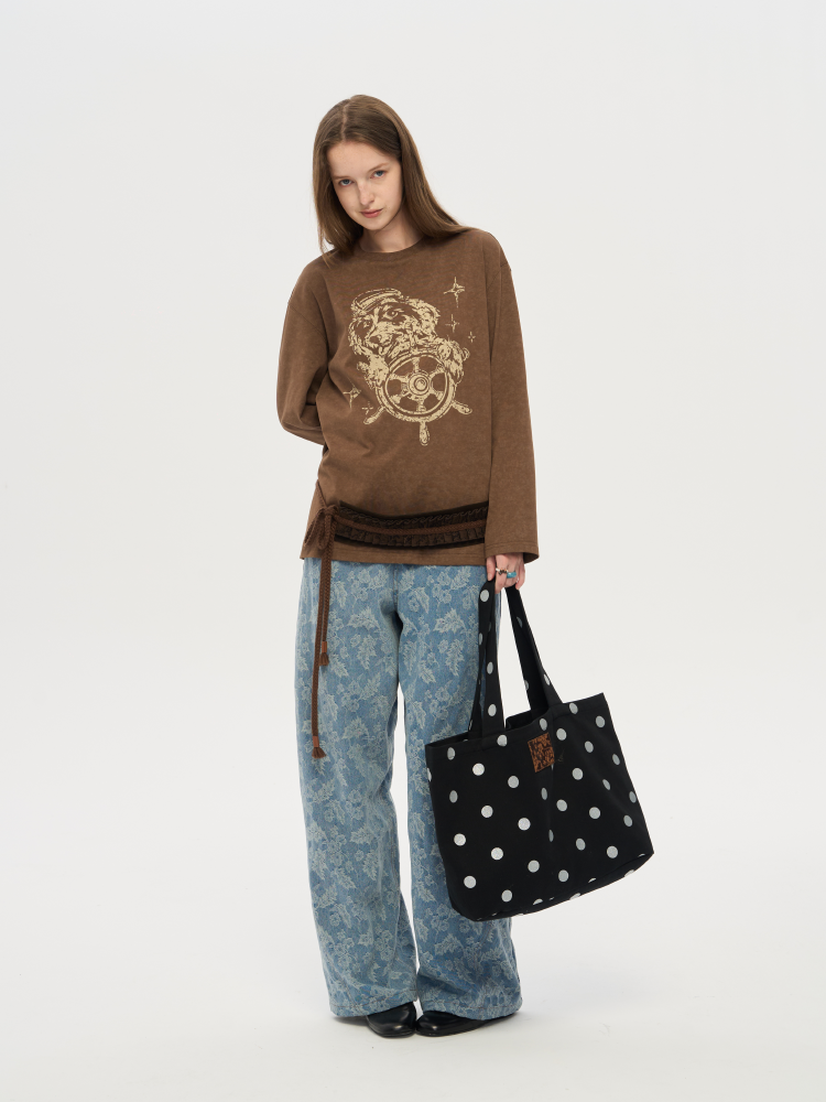 local tag/lt25awk37/cocoa 大容量印花托特包 内置拉链