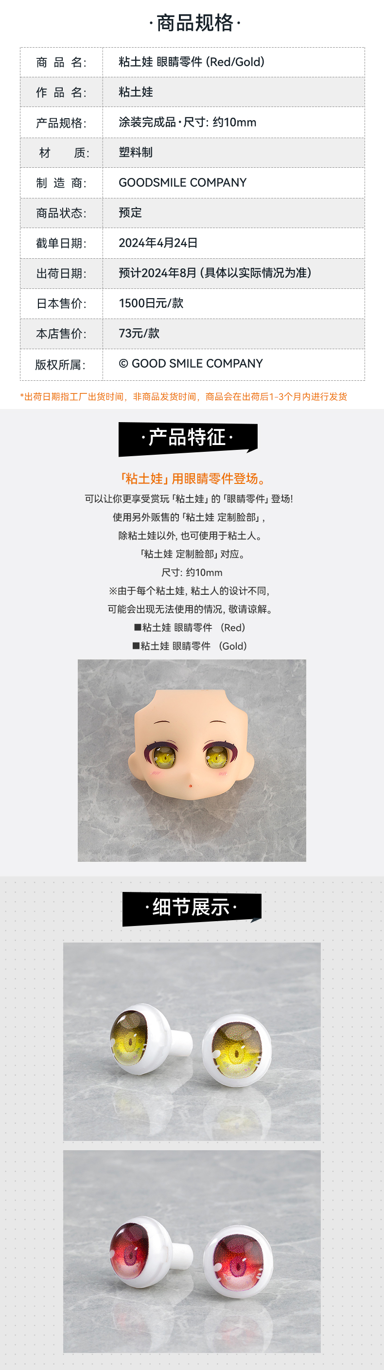 【GSC现货】粘土娃 眼睛零件(Red/Gold)