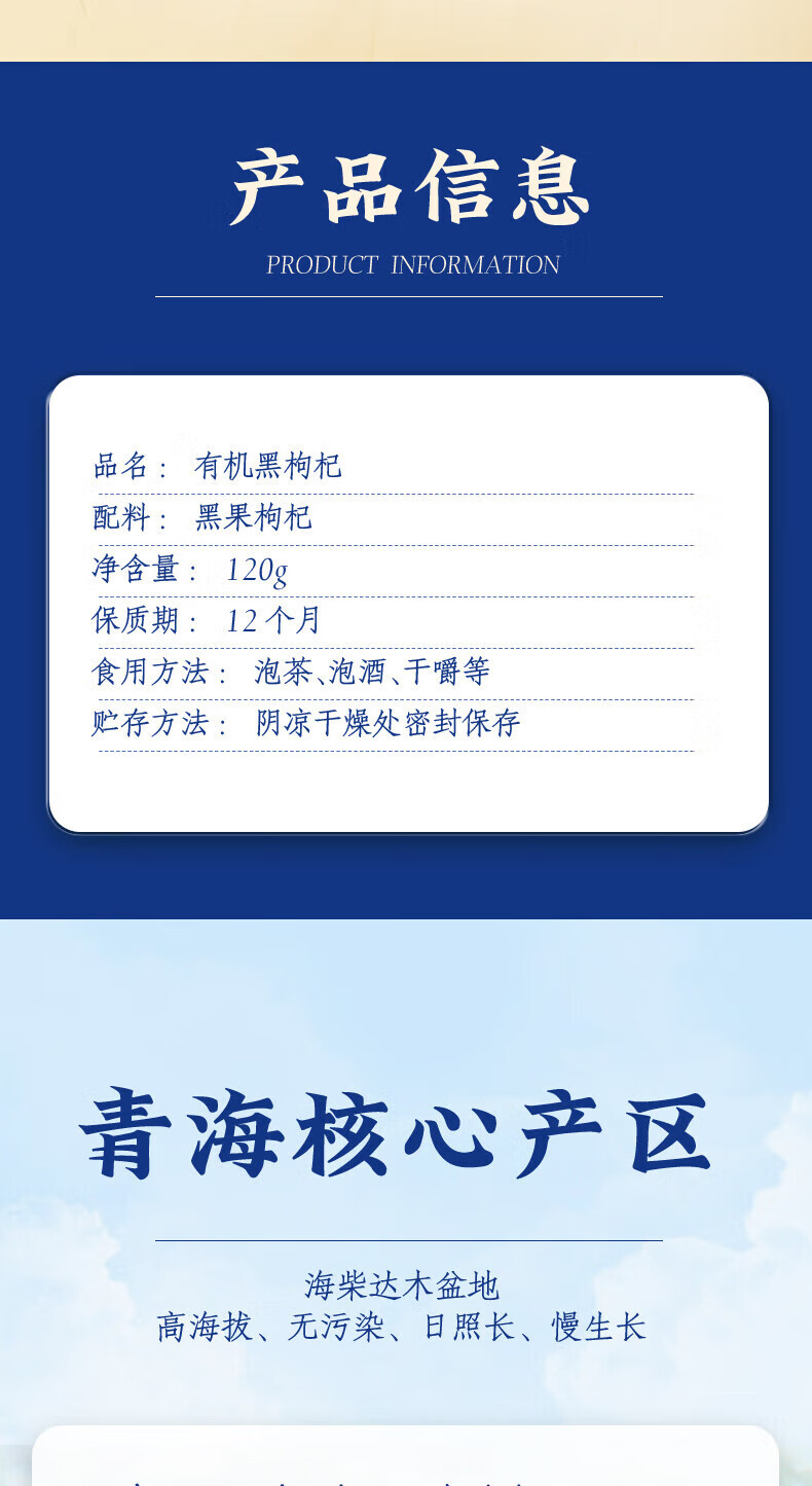 燕之坊 有机黑枸杞礼盒120g 青海黑苟杞大果免洗泡水泡茶养生滋补品