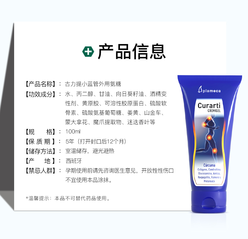 Curarti古力提小蓝管姜黄素运动凝胶 关节按摩乳100ml/支