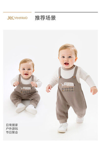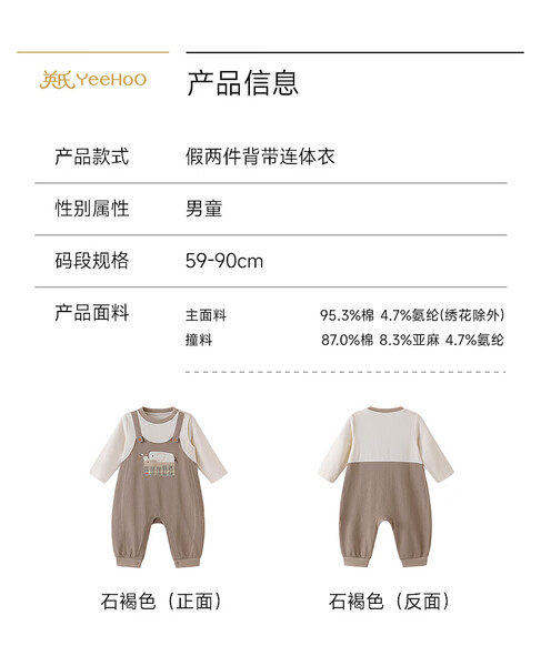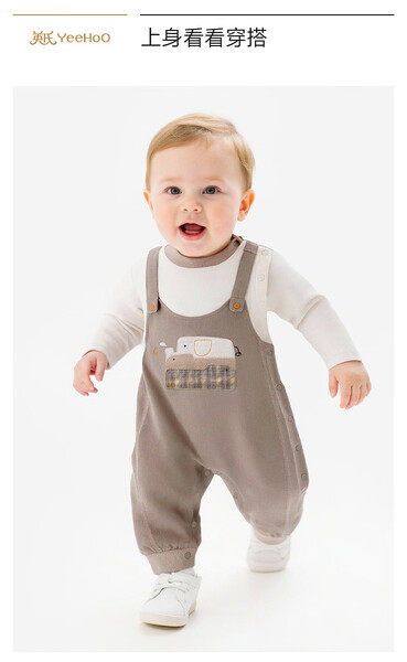 英氏婴儿长袖男宝宝衣服外出爬爬服可爱卡通连身衣YRHAJ1S010A