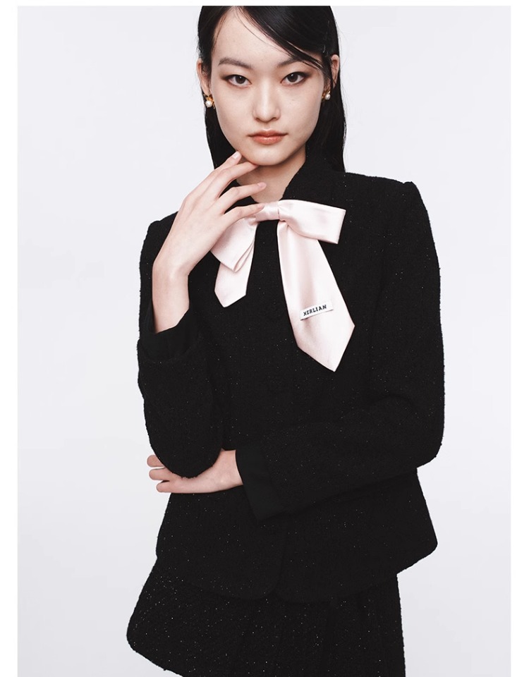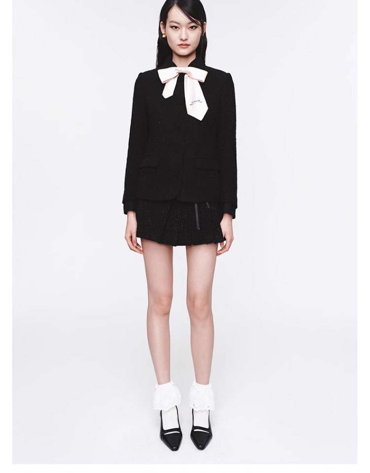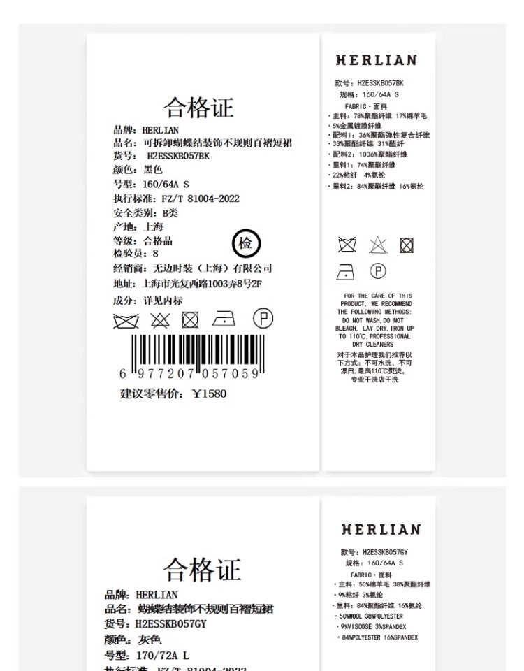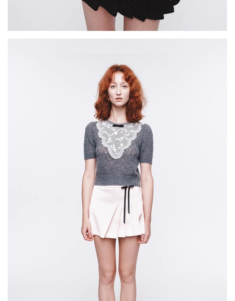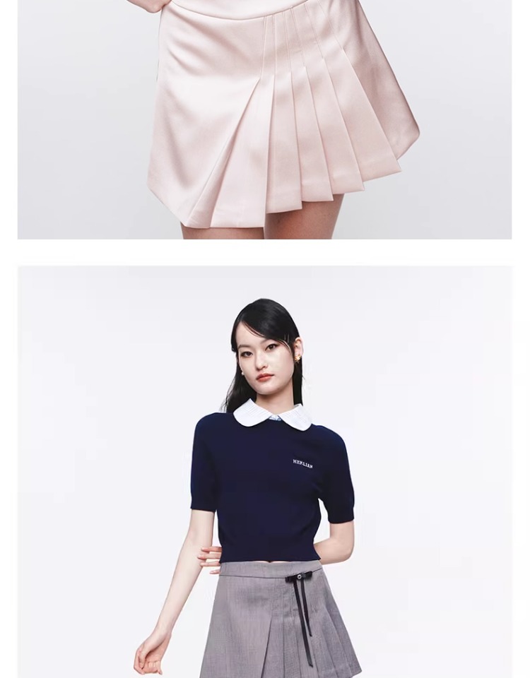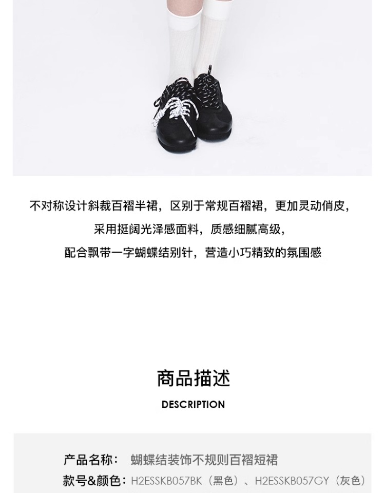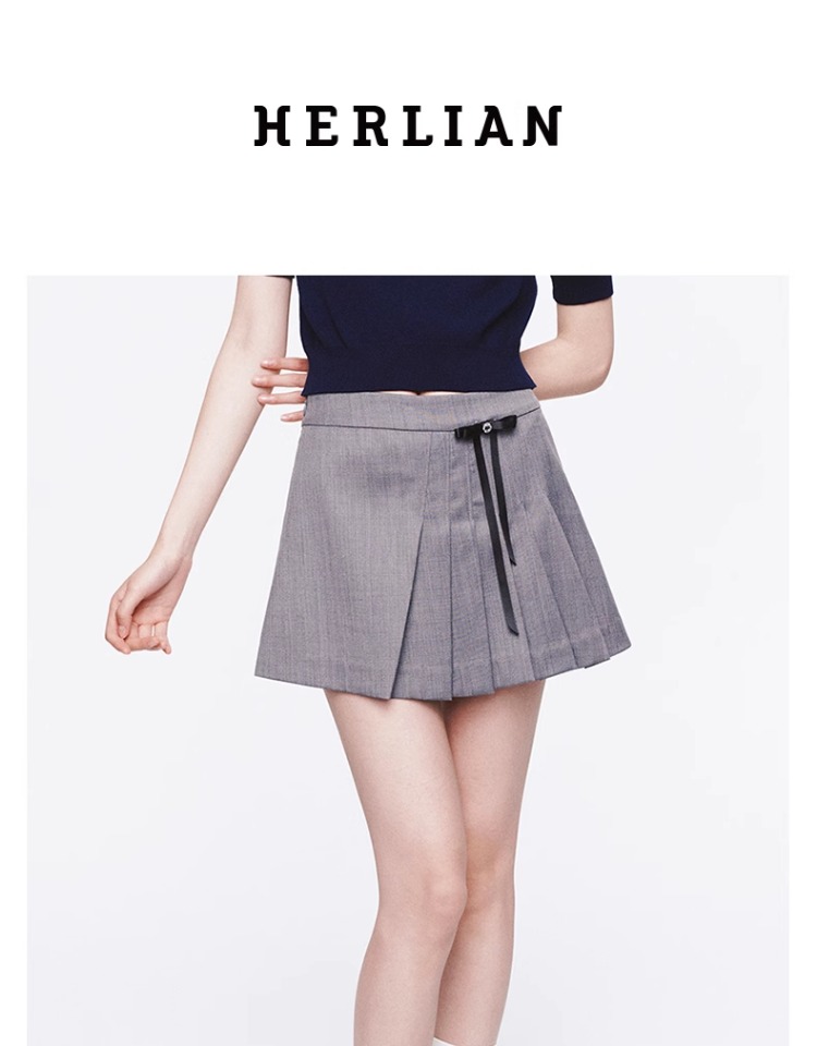 HERLIAN 2025年春季新品可拆卸蝴蝶结装饰不规则百褶短裙