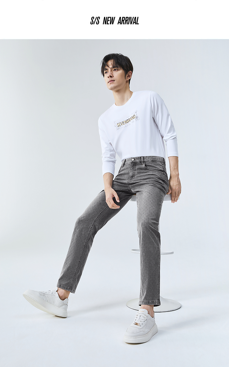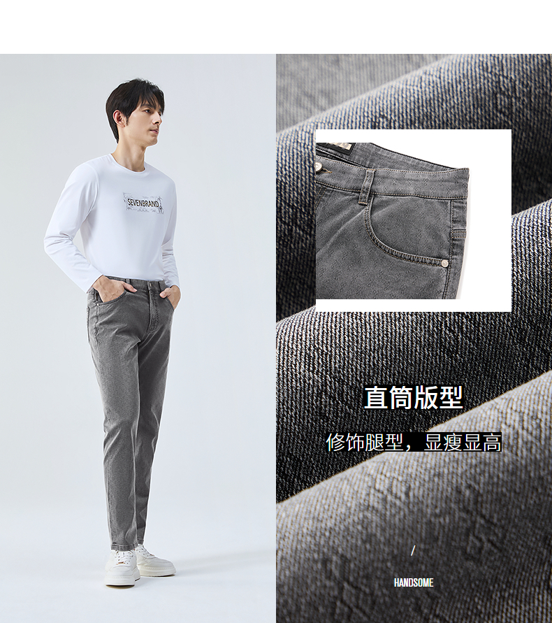 【莱卡】柒牌直筒牛仔裤男2025春季新款时尚潮流百搭男士牛仔长裤128H70850