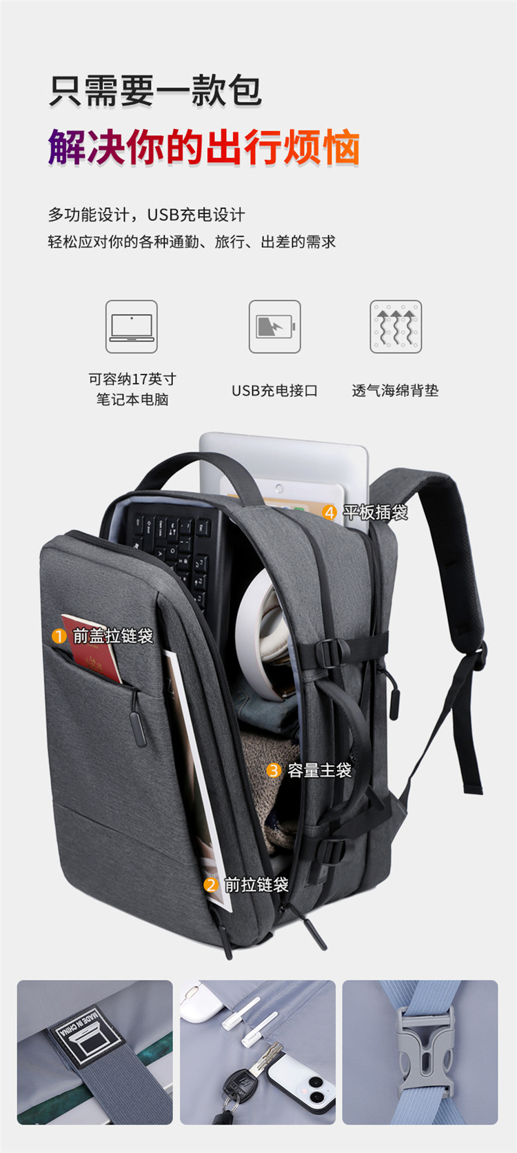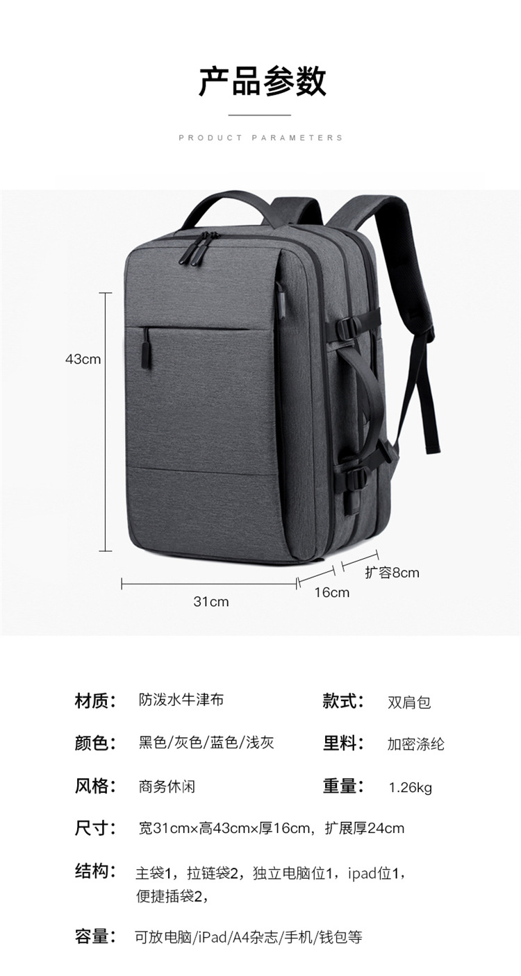 【可扩容双肩包】笔记本电脑包 拓展大容量出差旅行背包 国庆假期出游背包