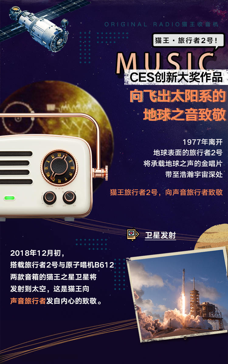 猫王收音机猫王音响旅行者2号手提智能网络音箱便携式小型音响无线蓝牙复古户外