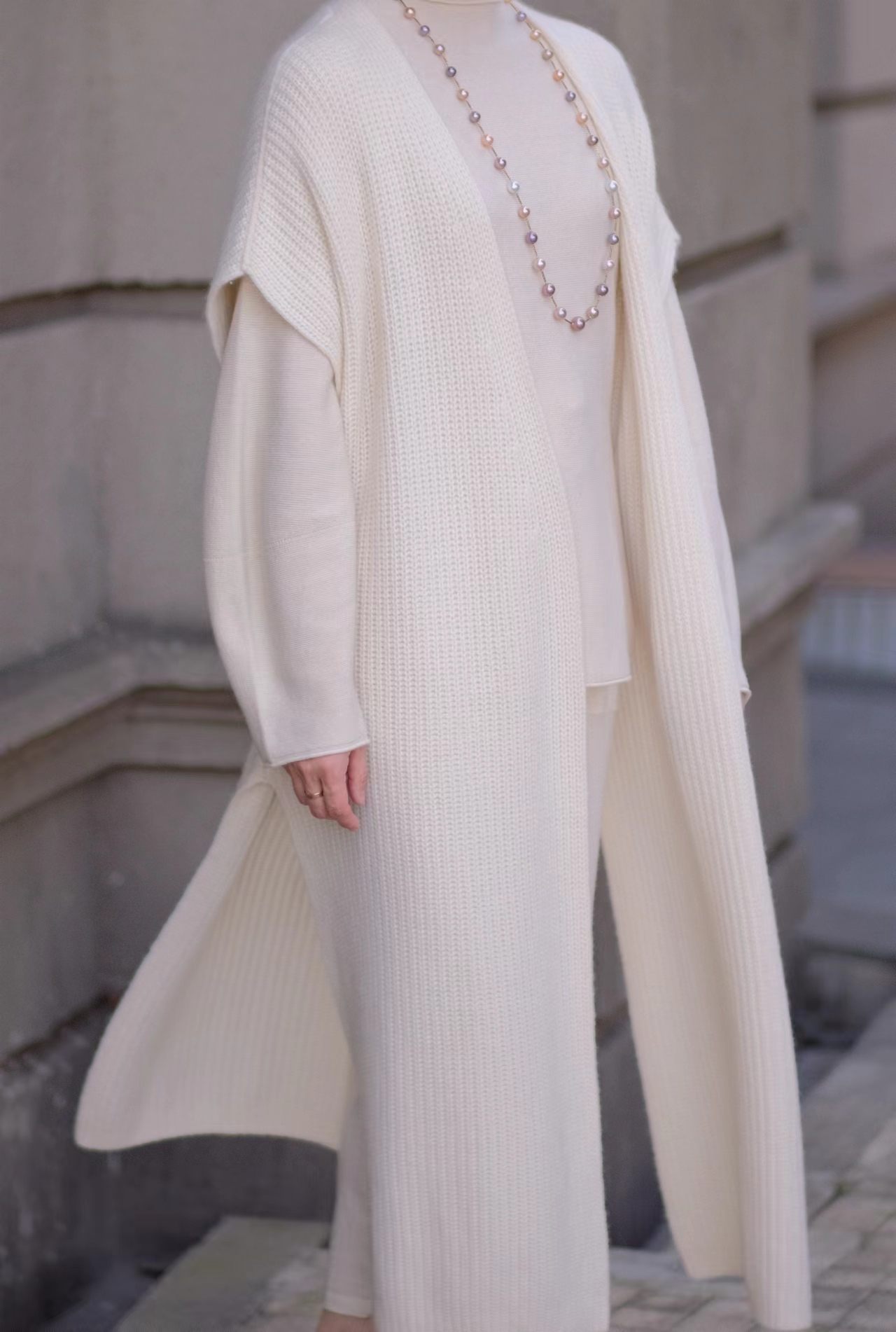 选取阿尔巴斯高寒地区未经染色的纯羊绒,版型简洁大气。