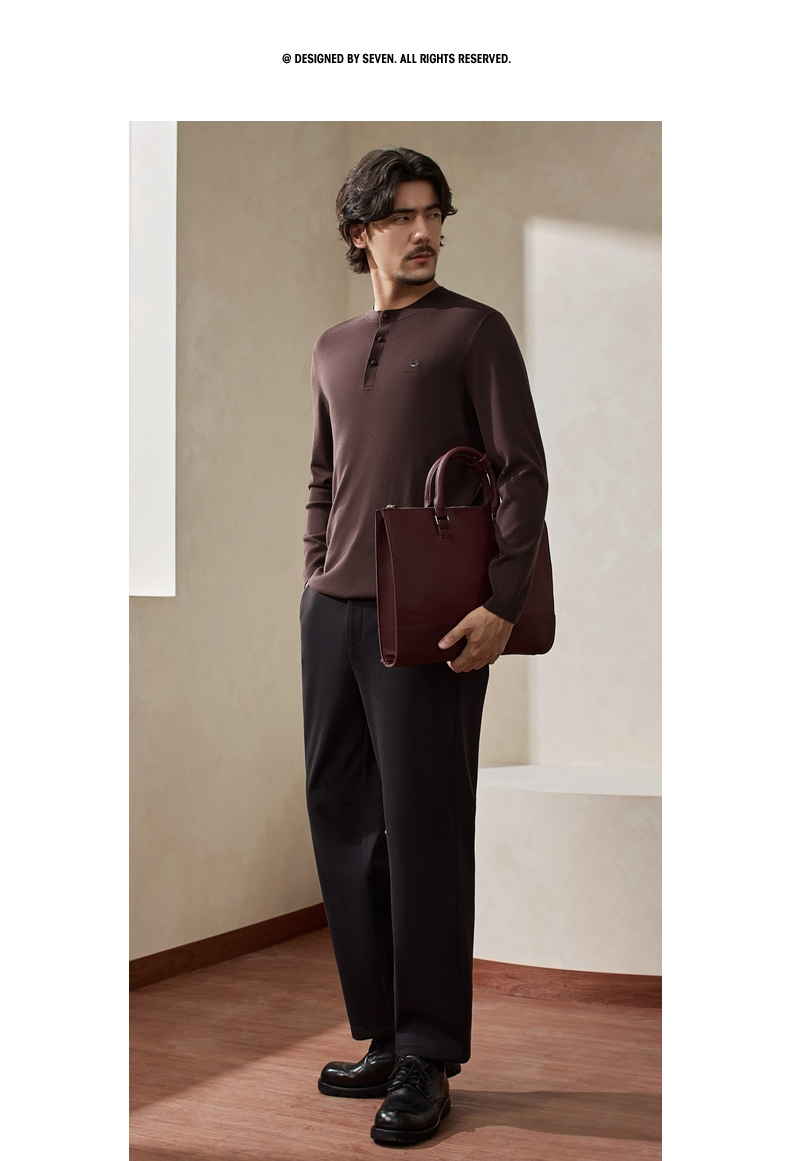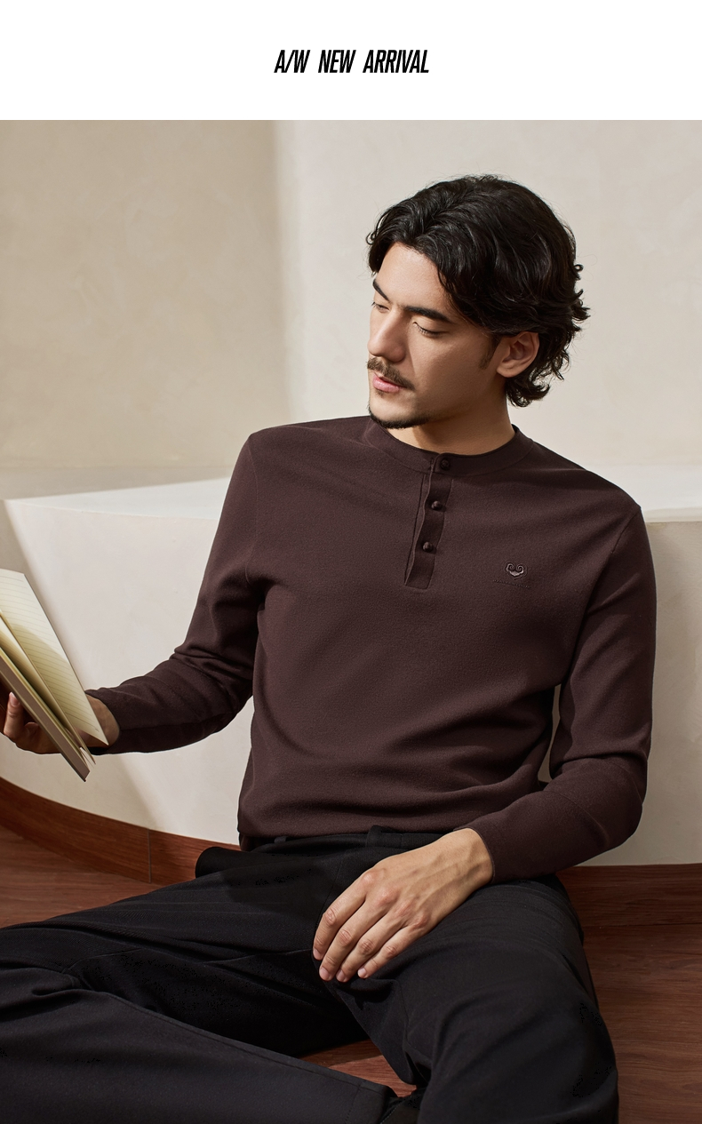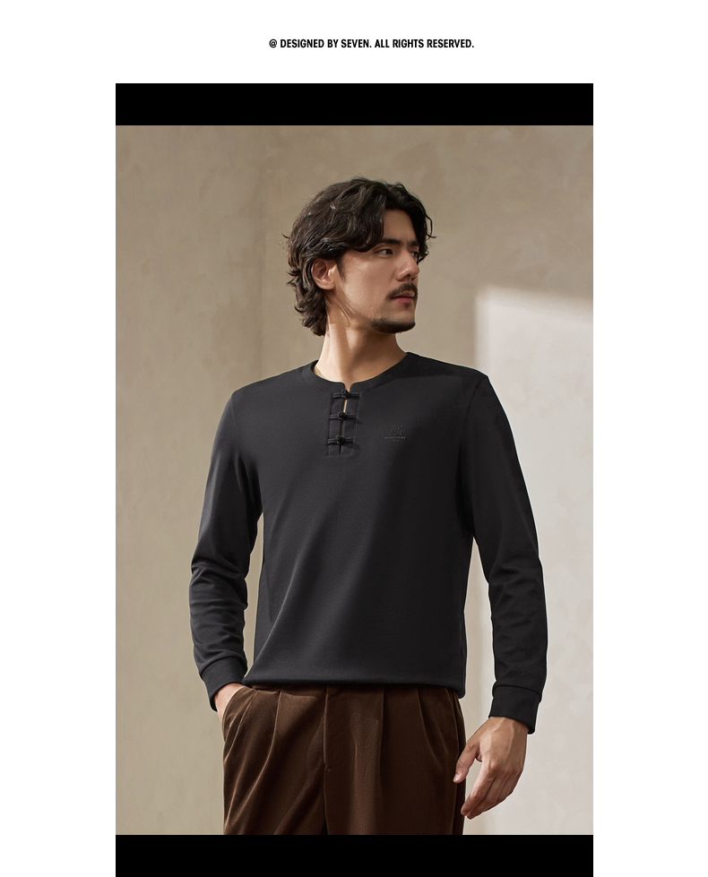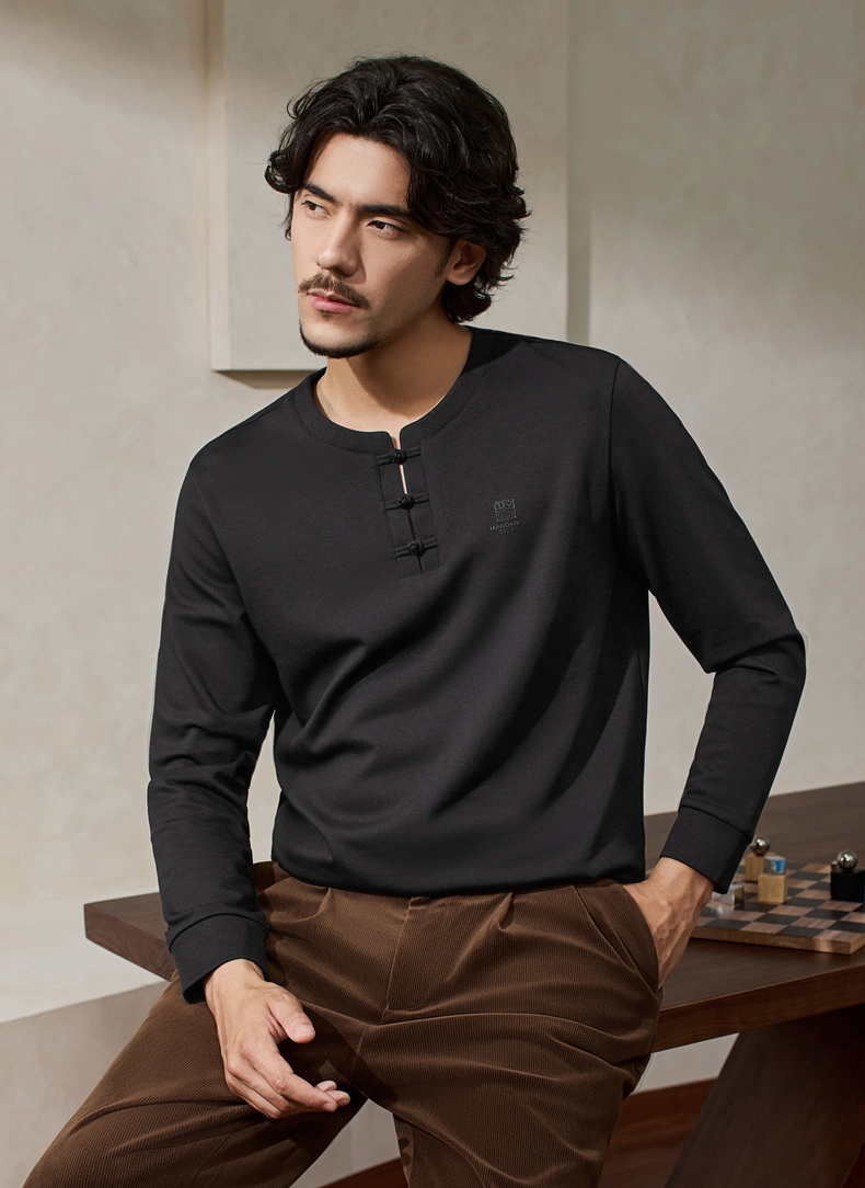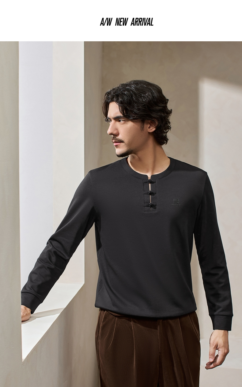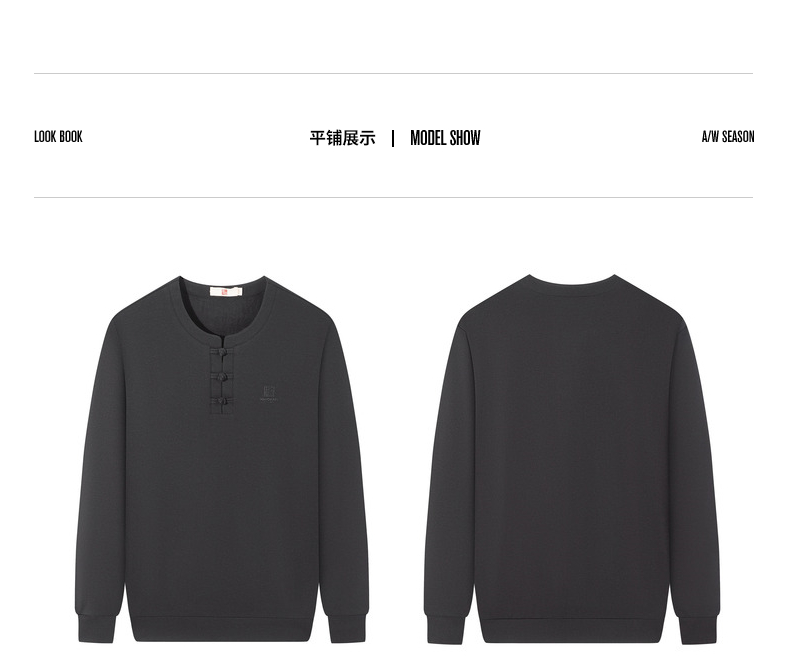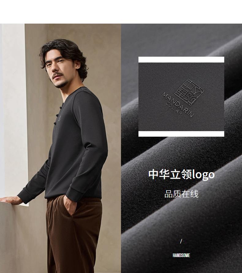 【国风新中式/含羊毛】柒牌卫衣男士秋季休闲圆领百搭长袖上衣129W70610