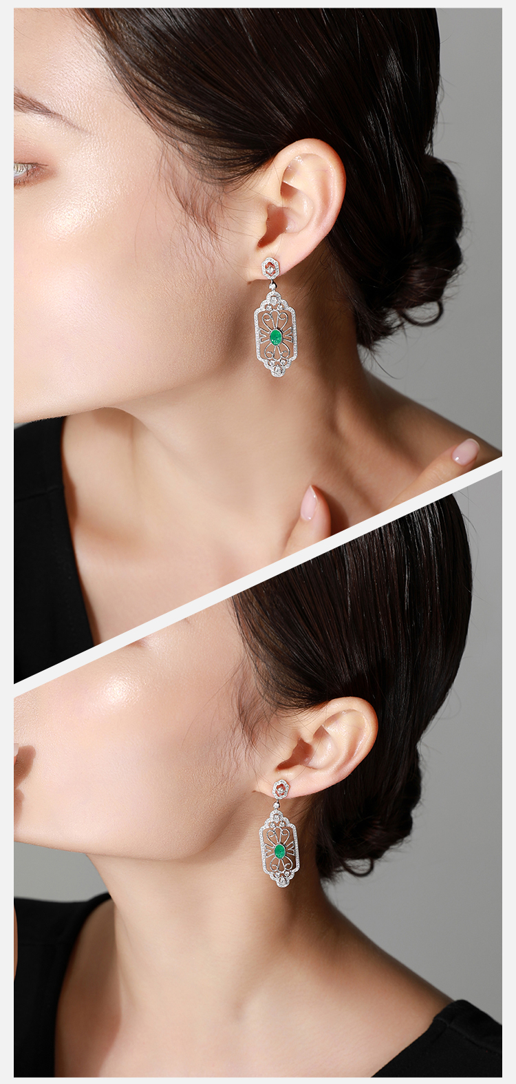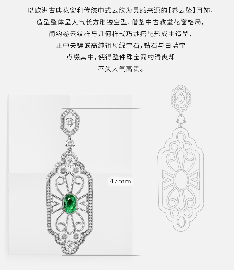 【卷云坠】JULEE JULEE茱俪珠宝 18K白金祖母绿白蓝宝钻石耳饰