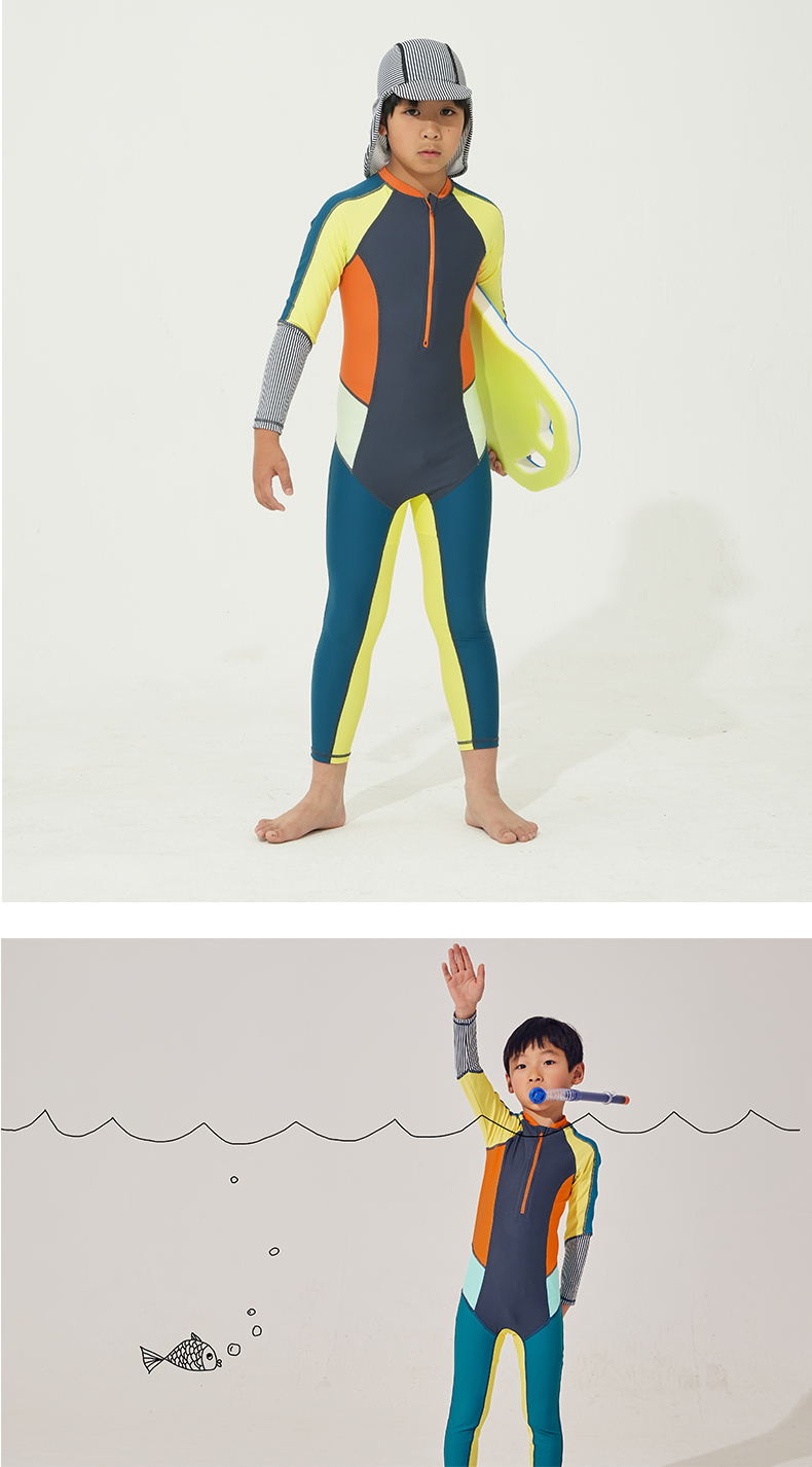 【代发】Uzmz有这么只【连体长袖长裤】男童女童泳衣儿童连体冲浪服爱心橘/海明威11