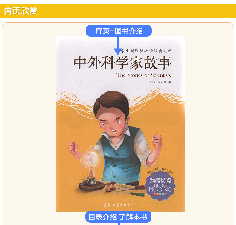 1-3年级适用 注音美绘版-中外科学家故事 钟书正版少儿读物我优阅系列拼音彩图版中外科学家故事 儿童文学课外读物小学生作文阅读