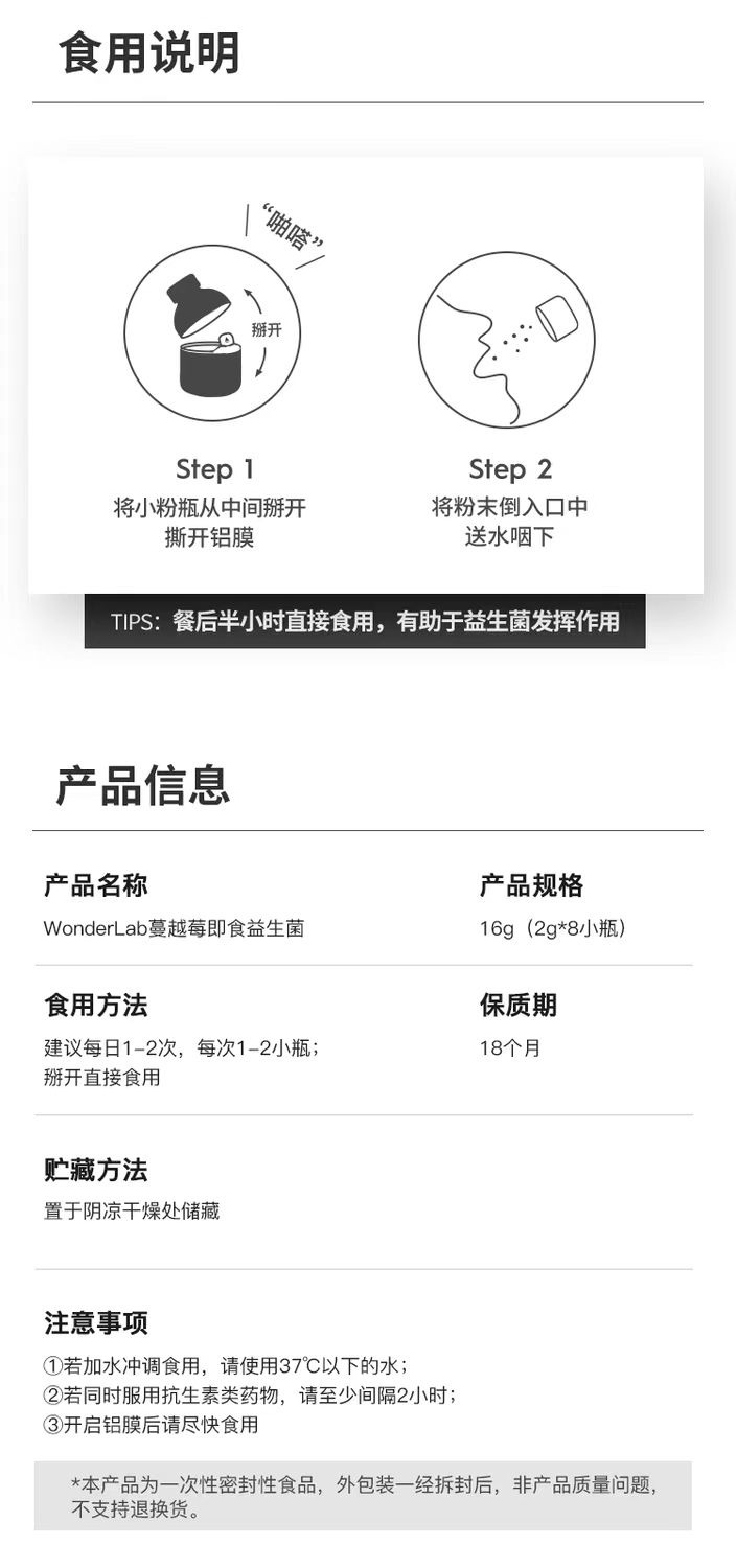 WonderLab万益蓝蔓越莓益生菌2g*30瓶
