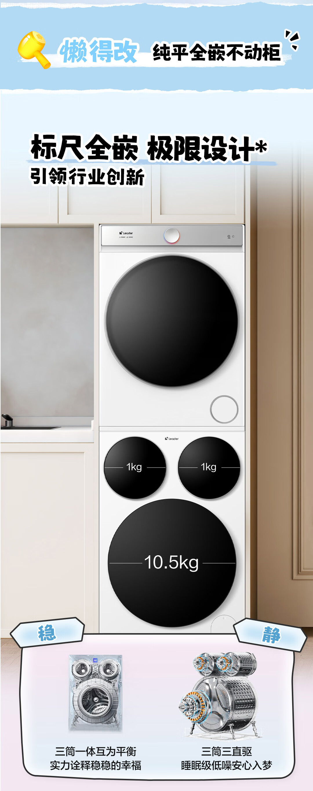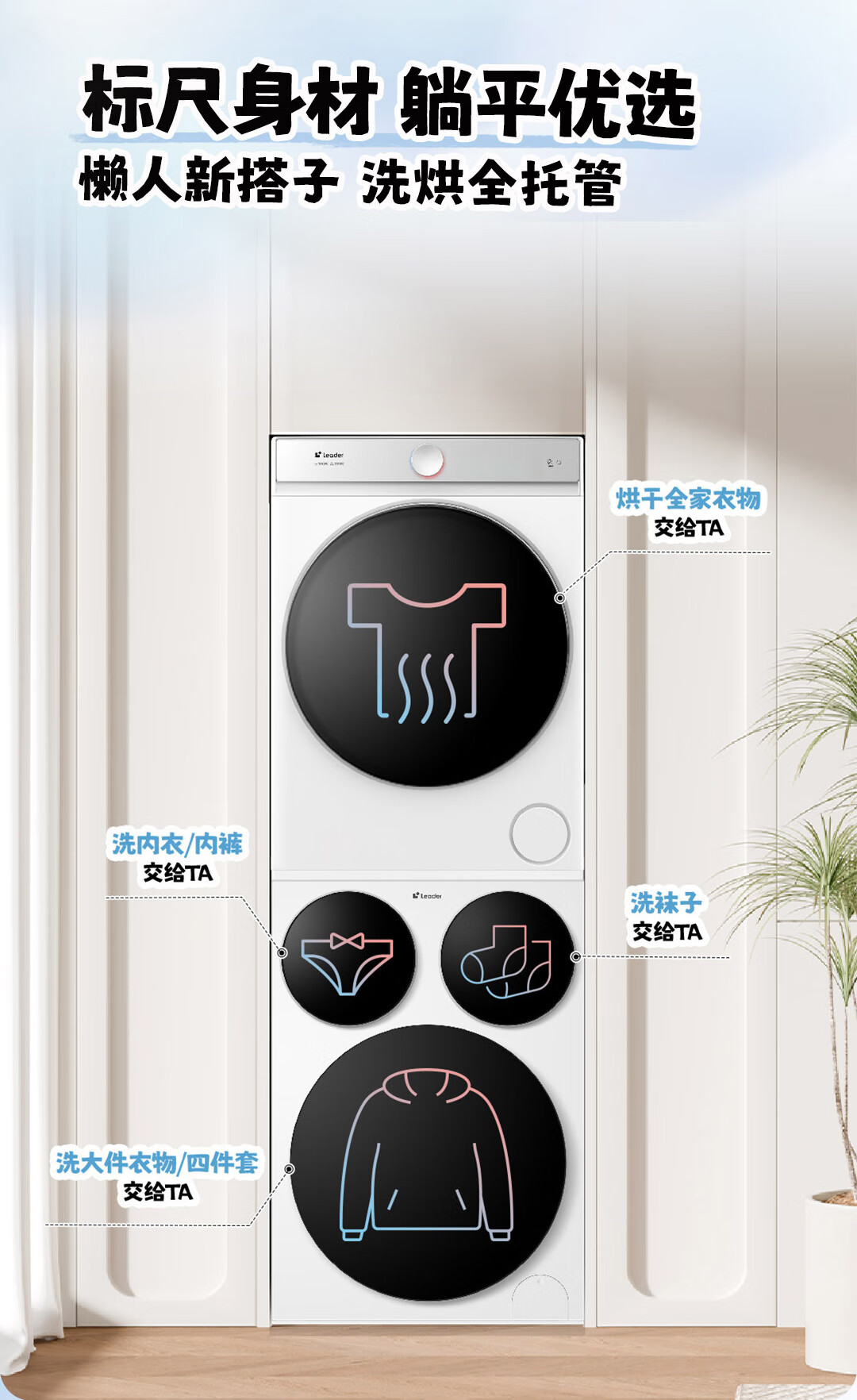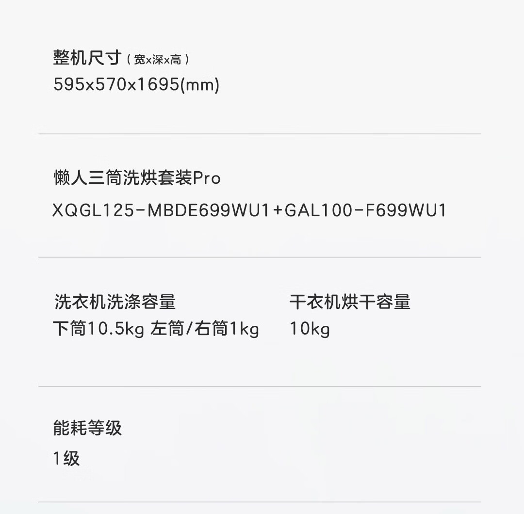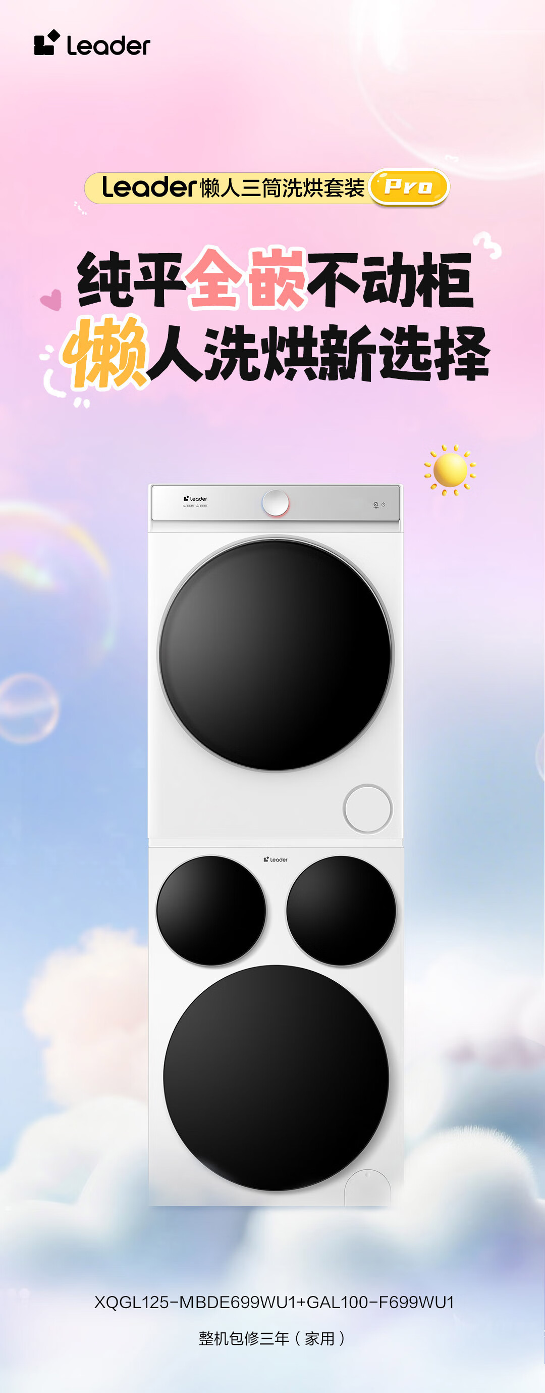 海尔智家懒人三筒洗烘套装Pro 变频 精华溶渍洗 热泵柔烘 除菌螨 XQGL125-MBDE699WU1+GAL100-F699WU1