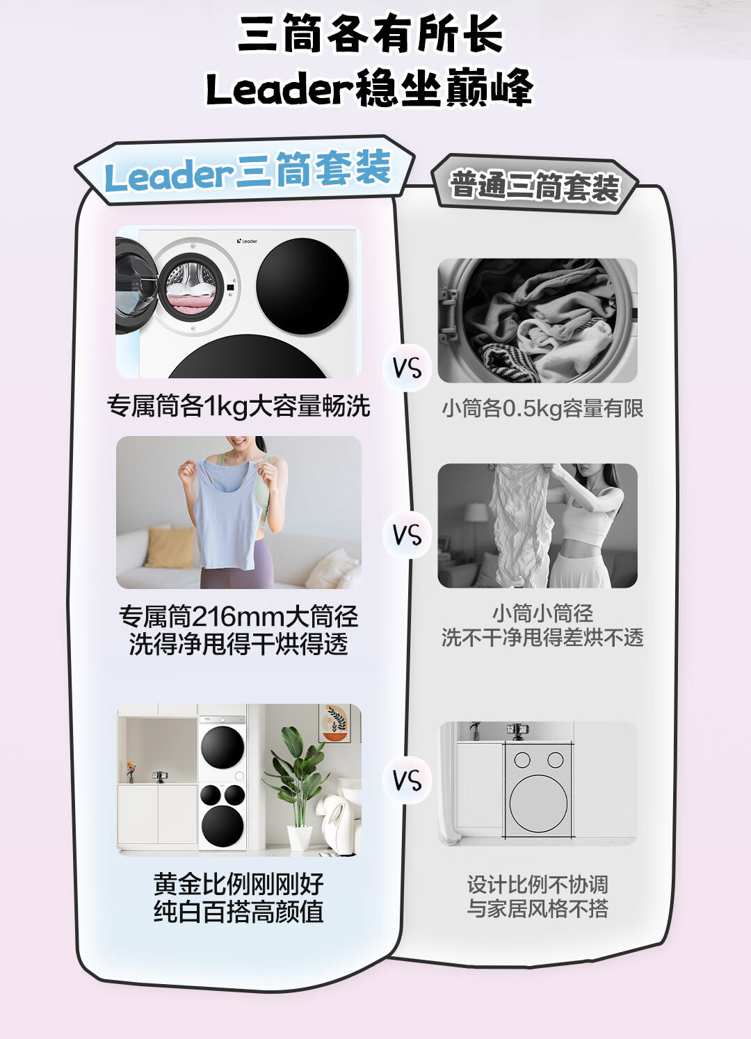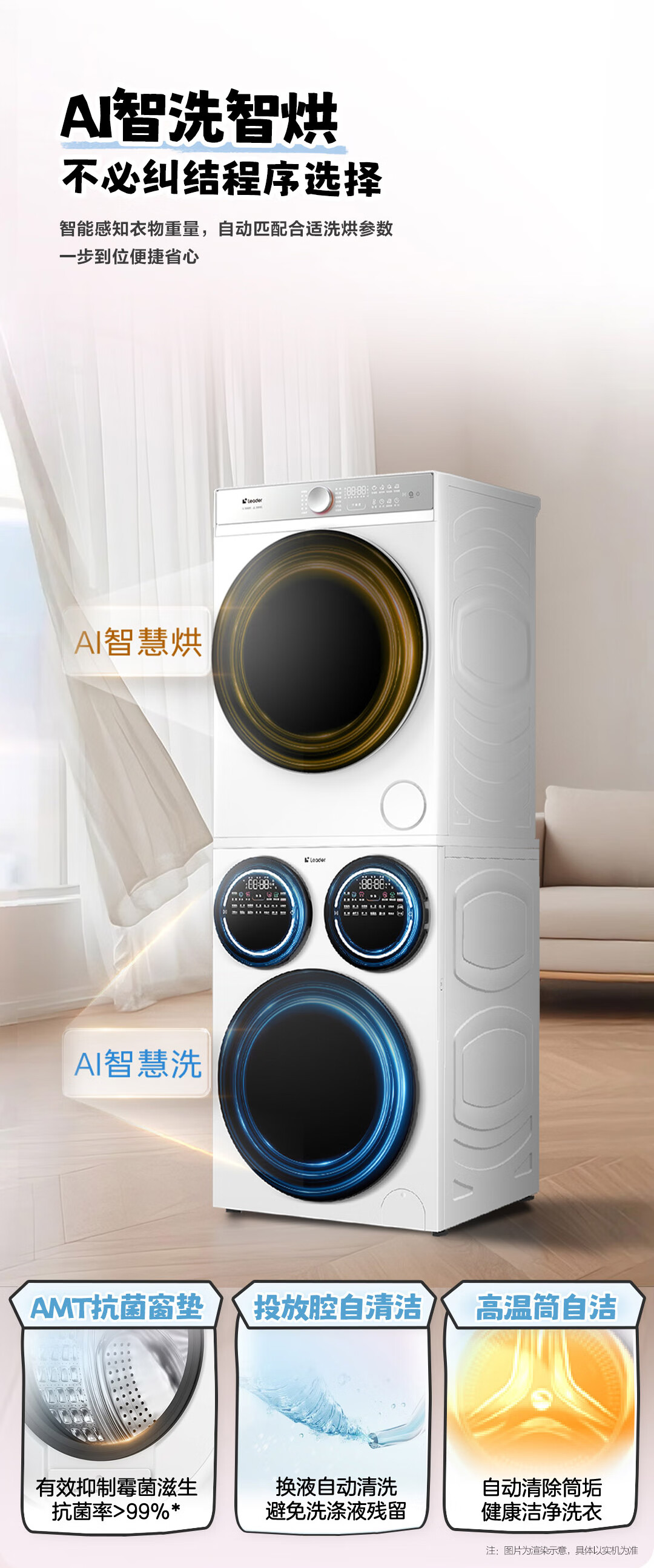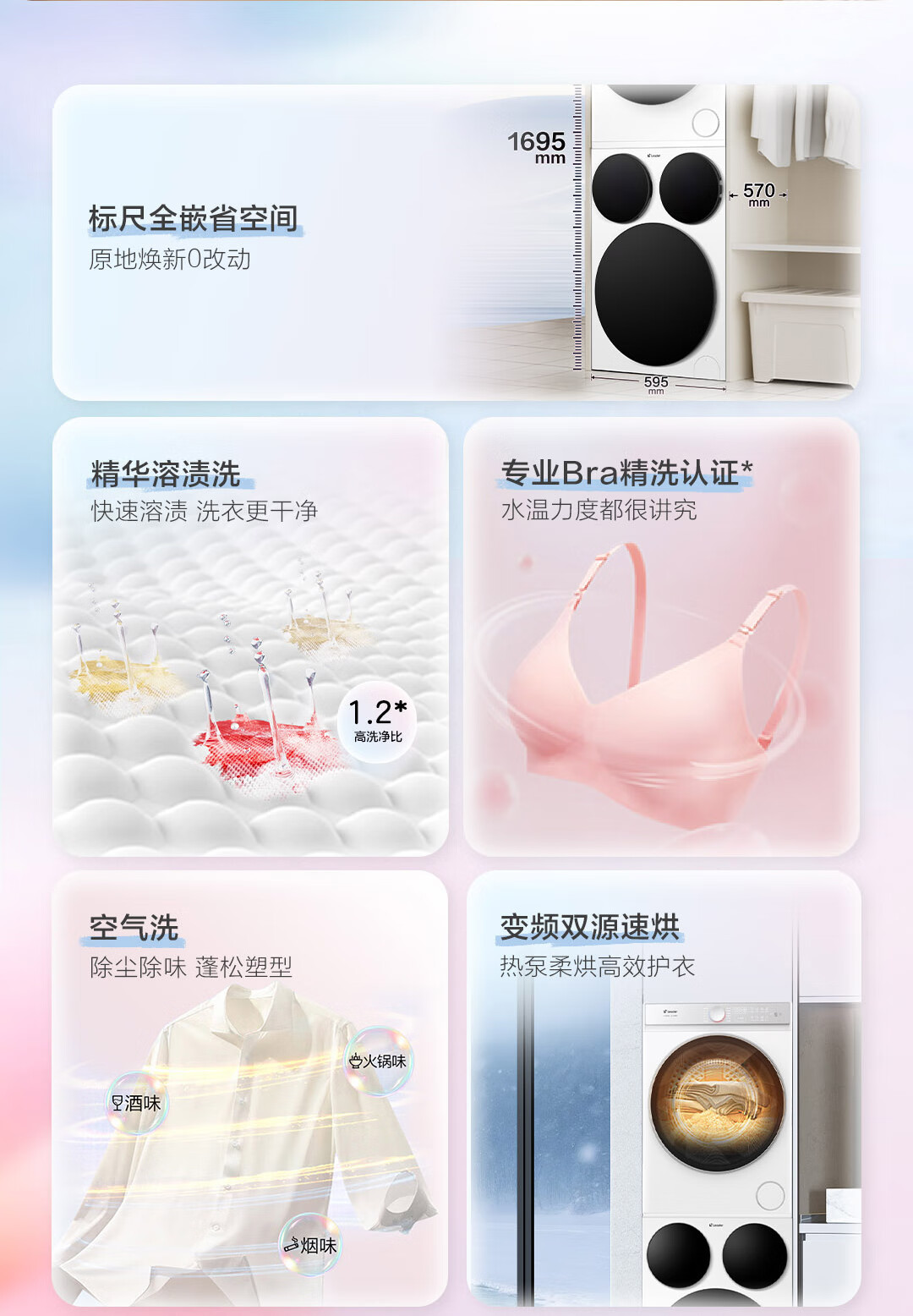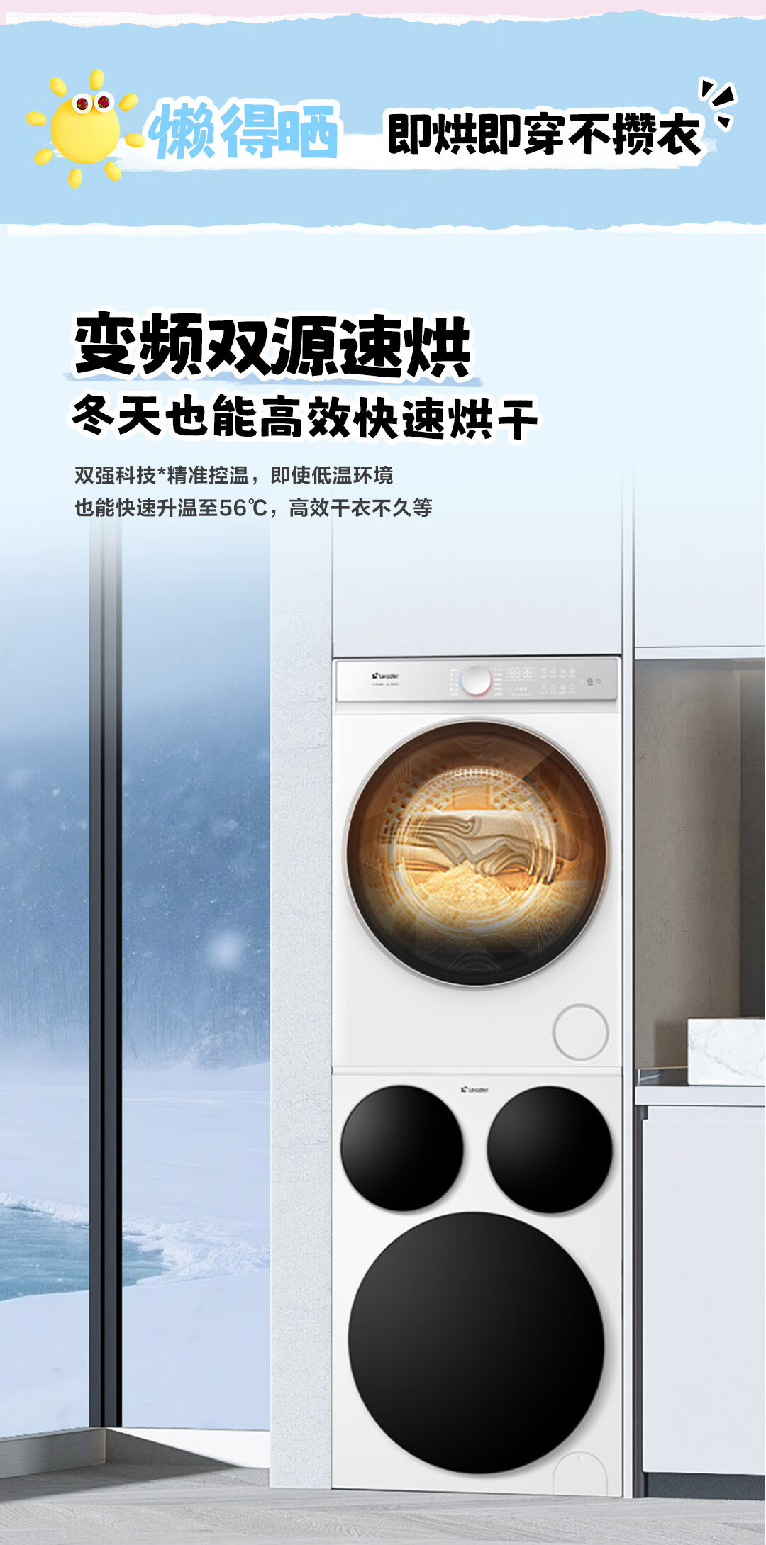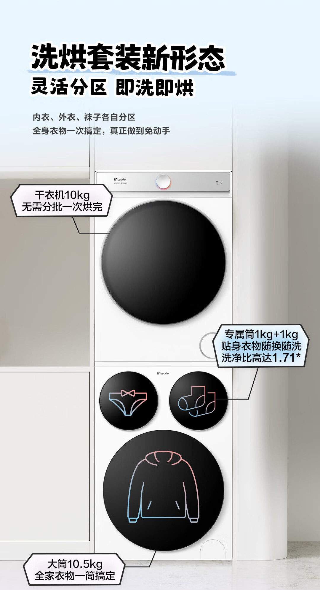 海尔智家懒人三筒洗烘套装Pro 变频 精华溶渍洗 热泵柔烘 除菌螨 XQGL125-MBDE699WU1+GAL100-F699WU1
