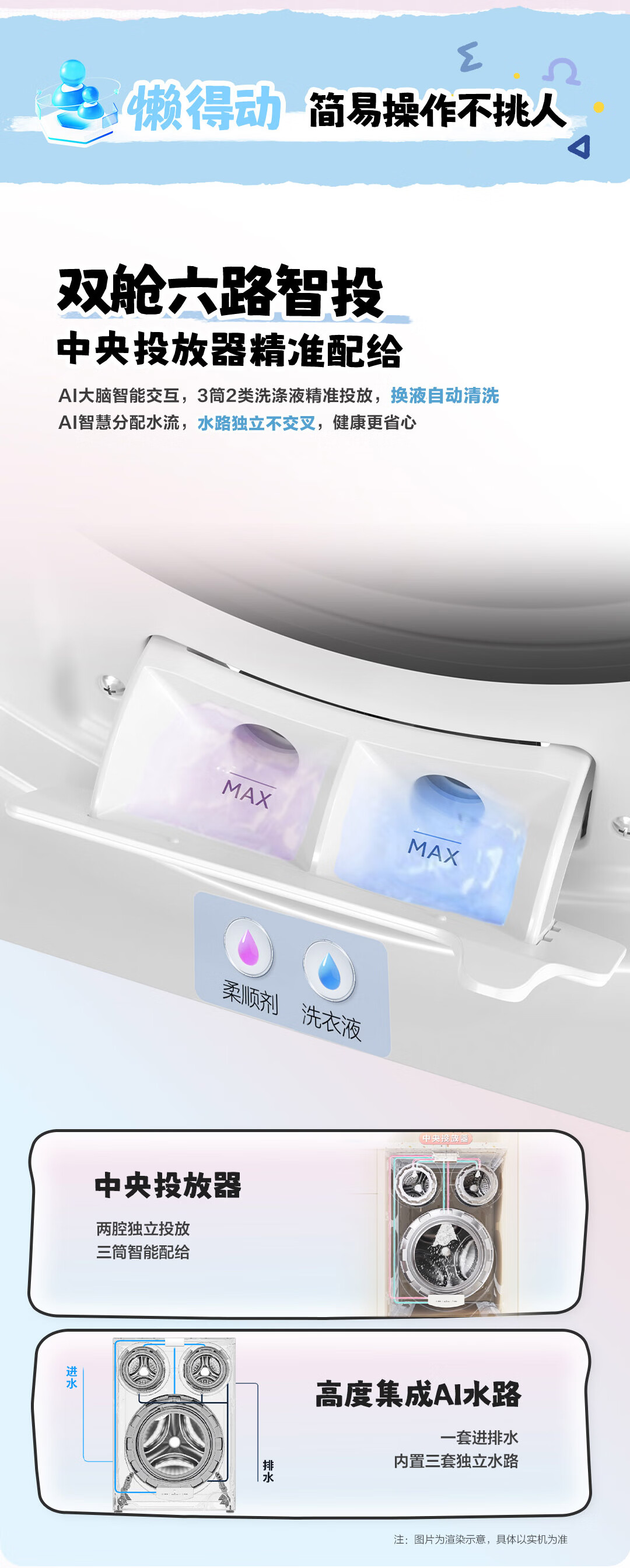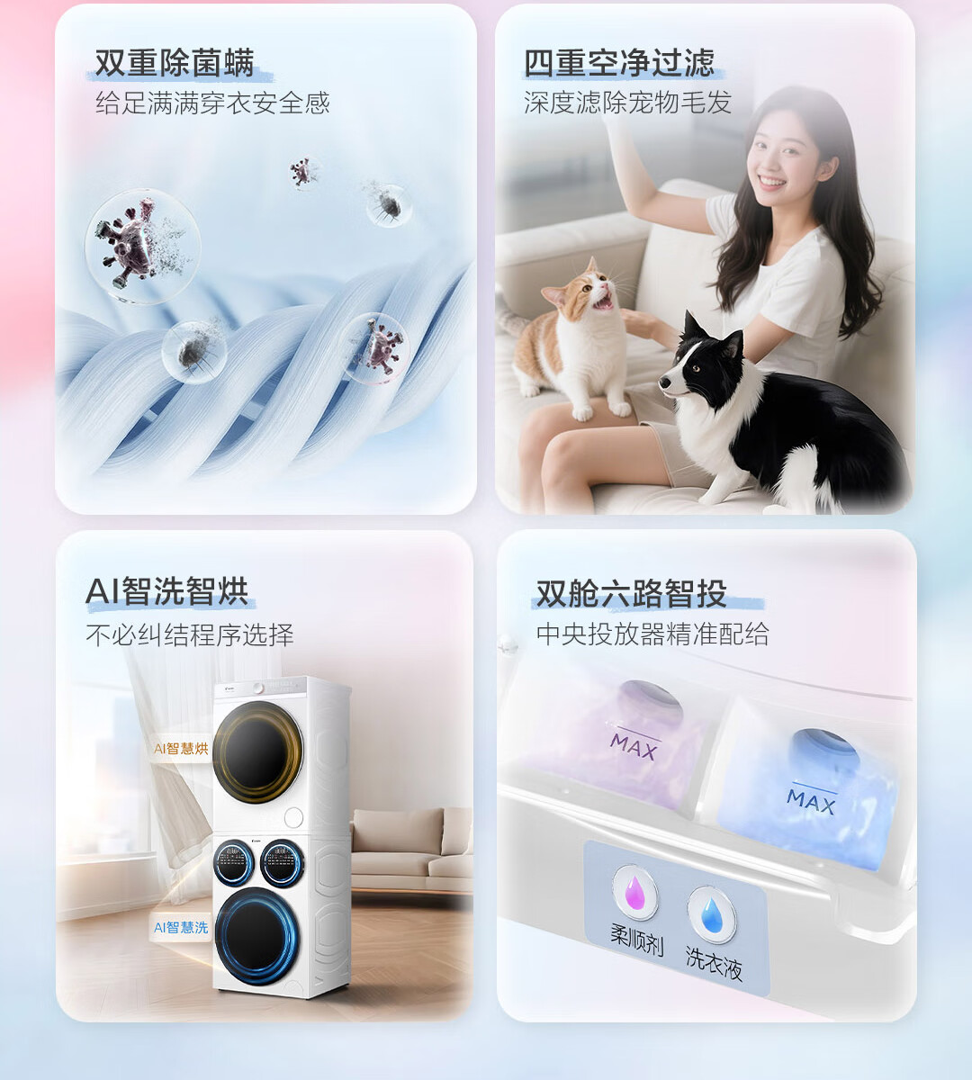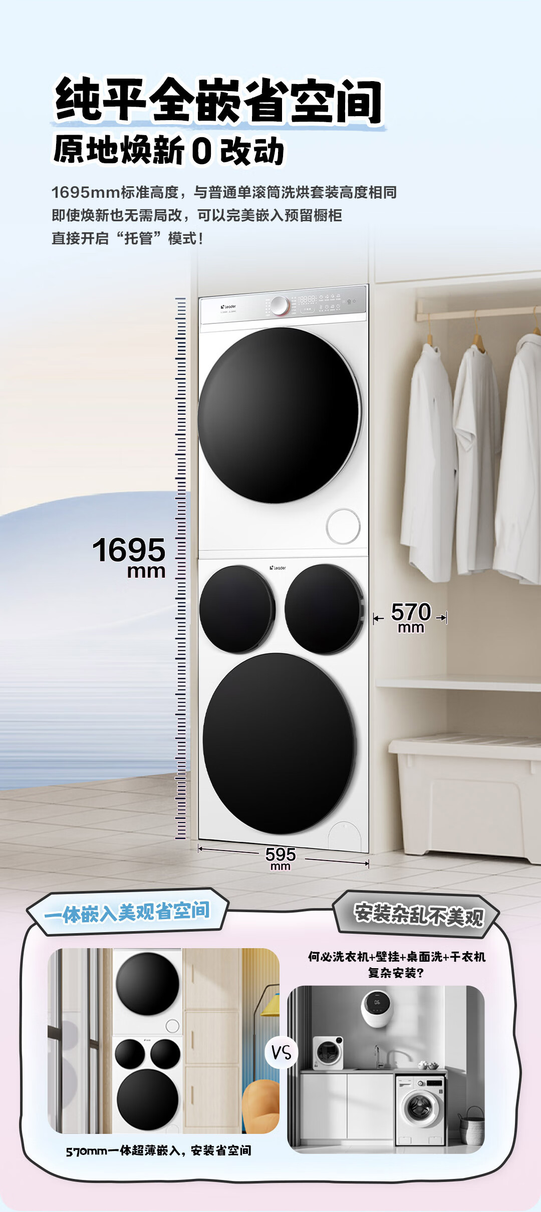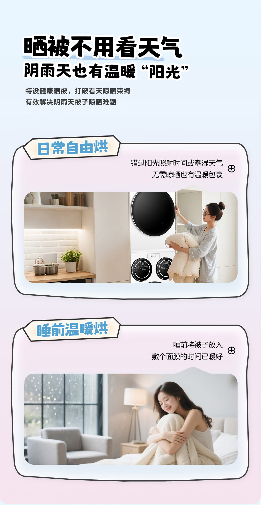 海尔智家懒人三筒洗烘套装Pro 变频 精华溶渍洗 热泵柔烘 除菌螨 XQGL125-MBDE699WU1+GAL100-F699WU1