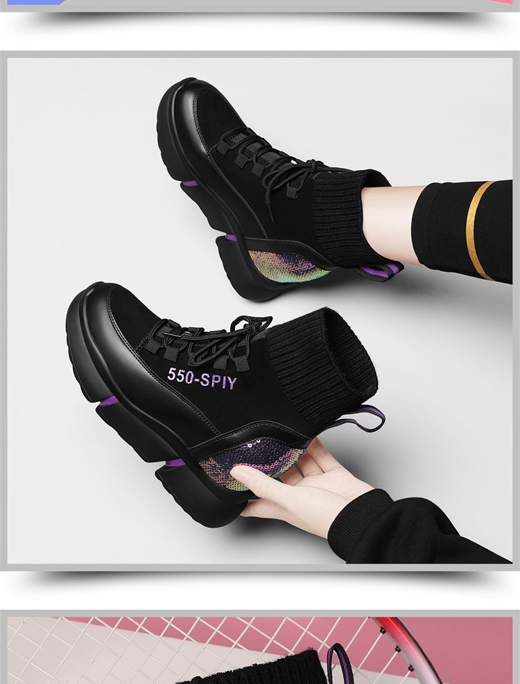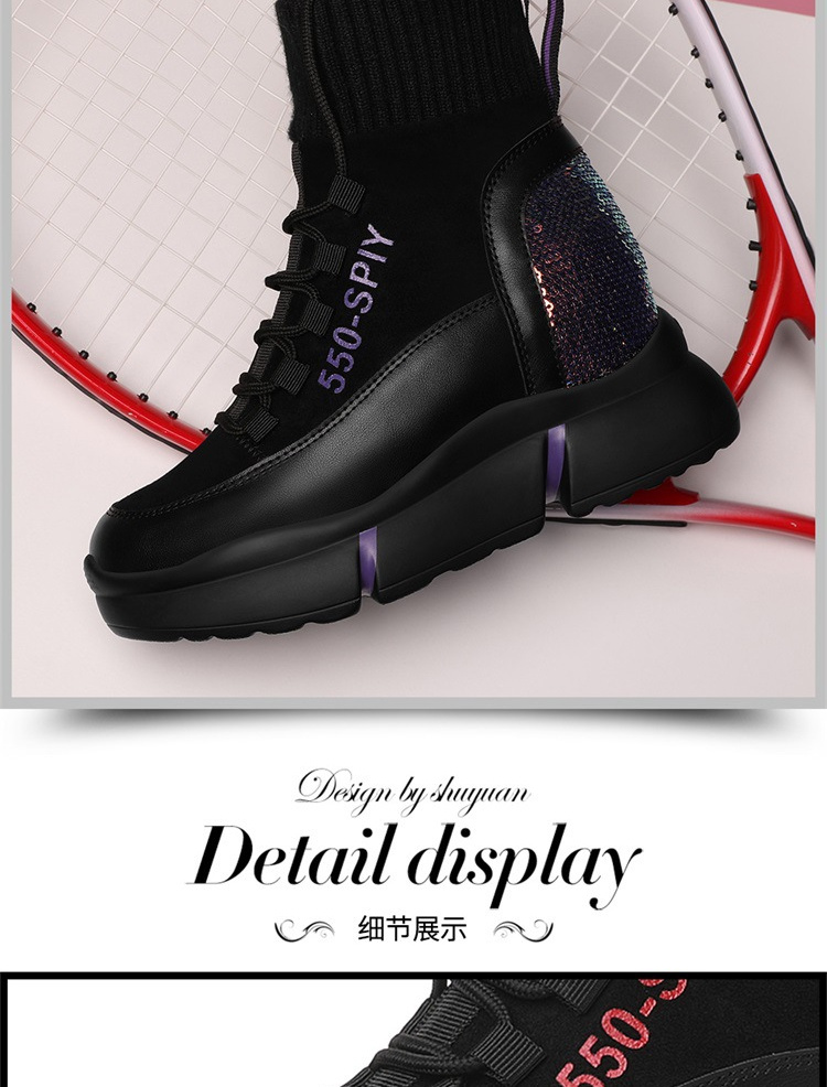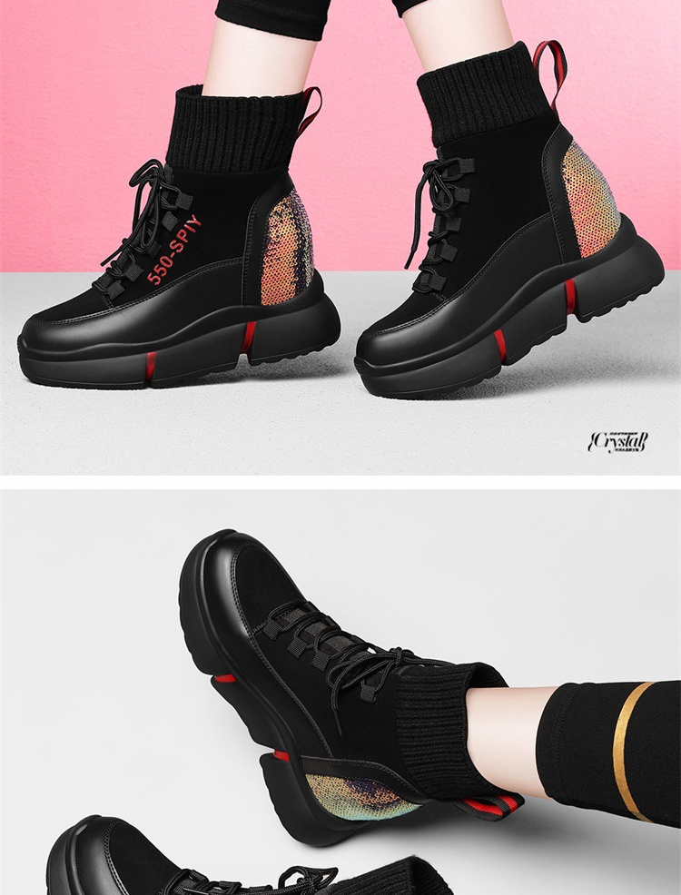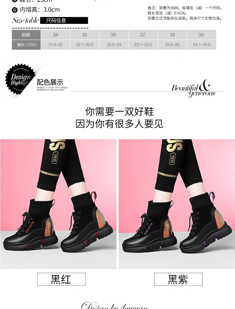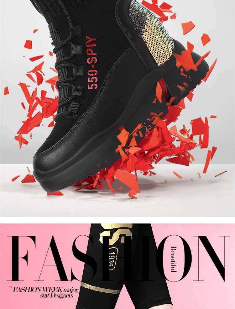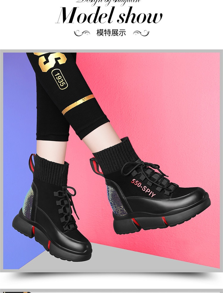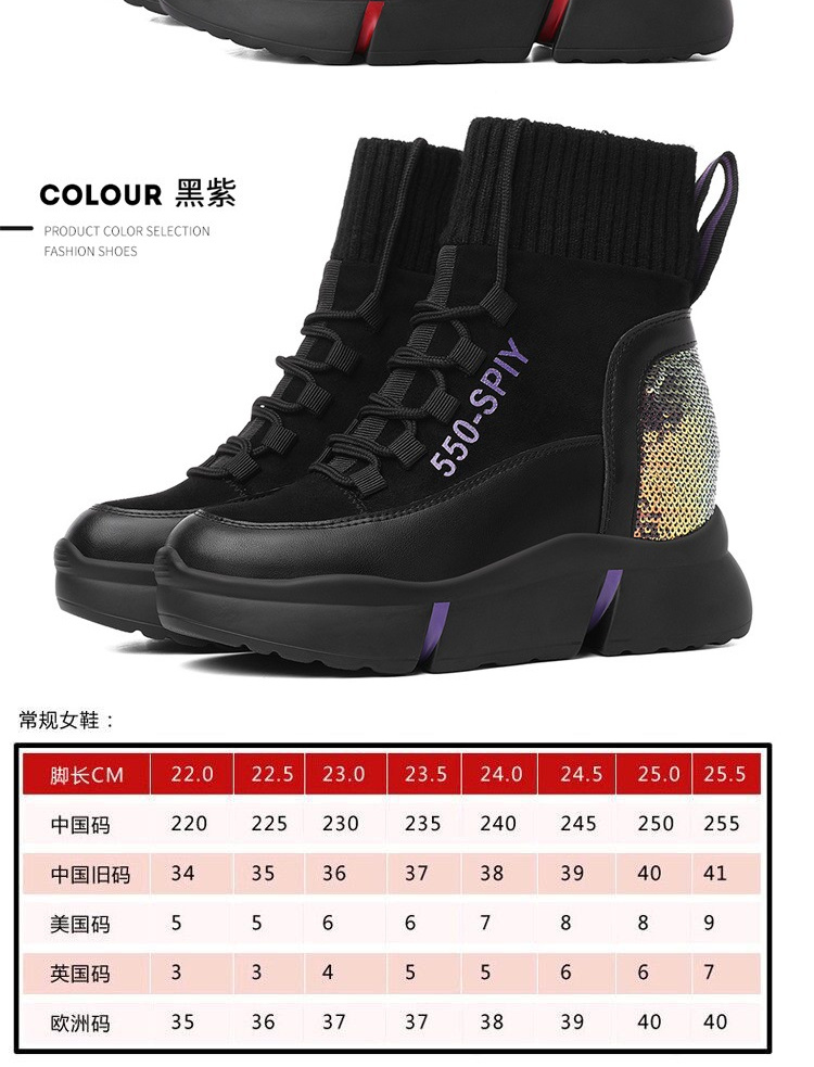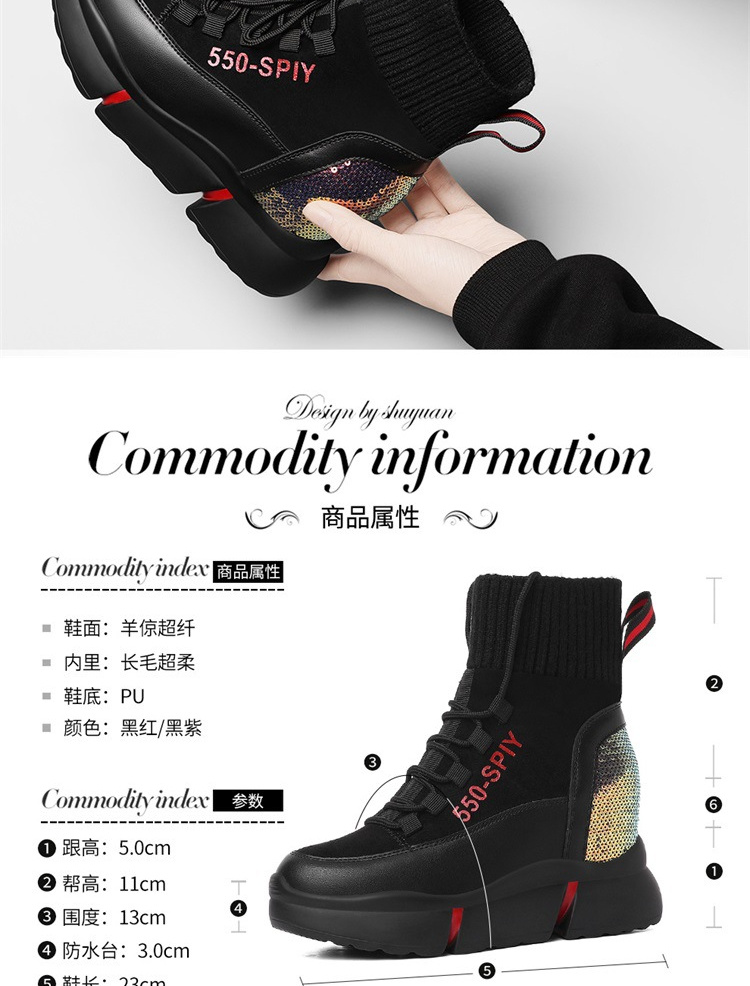 【服饰鞋包】-秋冬季新款内增高亮片短靴加绒靴子女鞋马丁靴