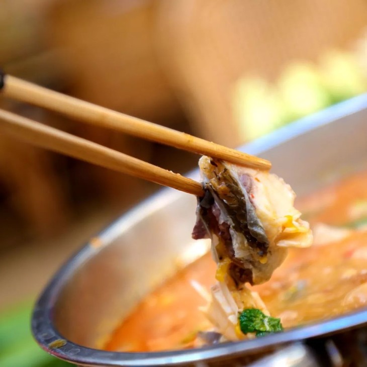鱼肉白嫩细腻,不易煮烂,在锅中用傣家特质香料一起煮,非常入味,喜欢吃酸的小伙伴不用蘸水也很完美~